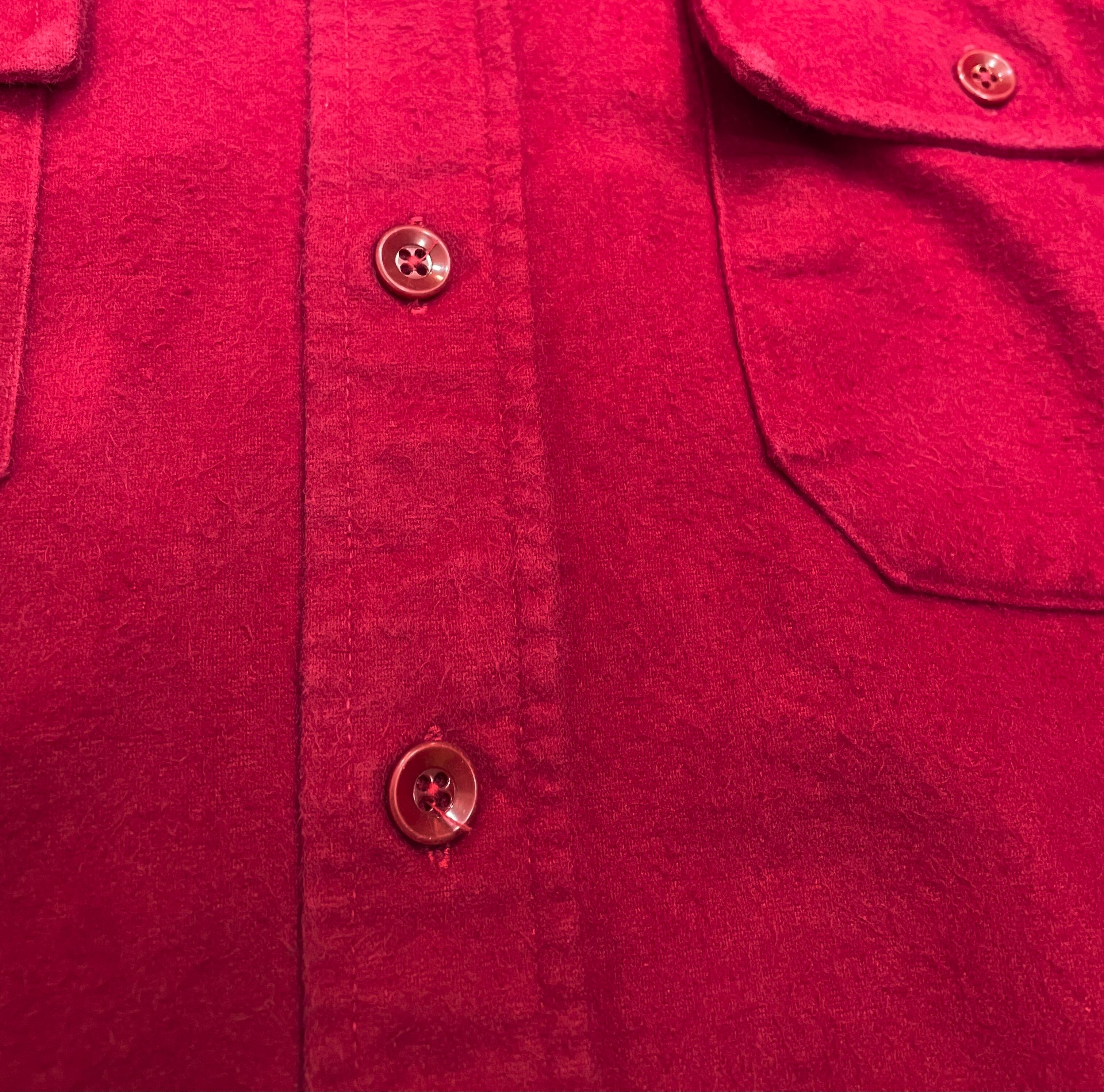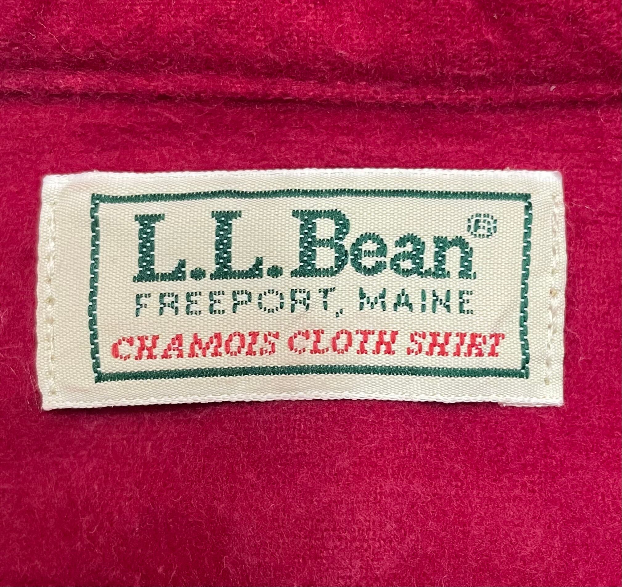 80年代のLLBEANシャツ。シャモアクロスという起毛感のあるネル素材を使用してます。山羊の一種であるシャモアの革のように滑らかで起毛感のある素材に似せたことから呼ばれている生地です。普通の生地とは違い、肌触りの良さを感じれます。カラーは発色良いエンジ。赤過ぎず、品のある色味。15 1/2ですが、少し大きめな印象です。一枚でも、アウターのようにバサっと羽織れます。ヴィンテージ好きの方、レイヤードに使えるシャツをお探しの方におすすめの春シャツです。