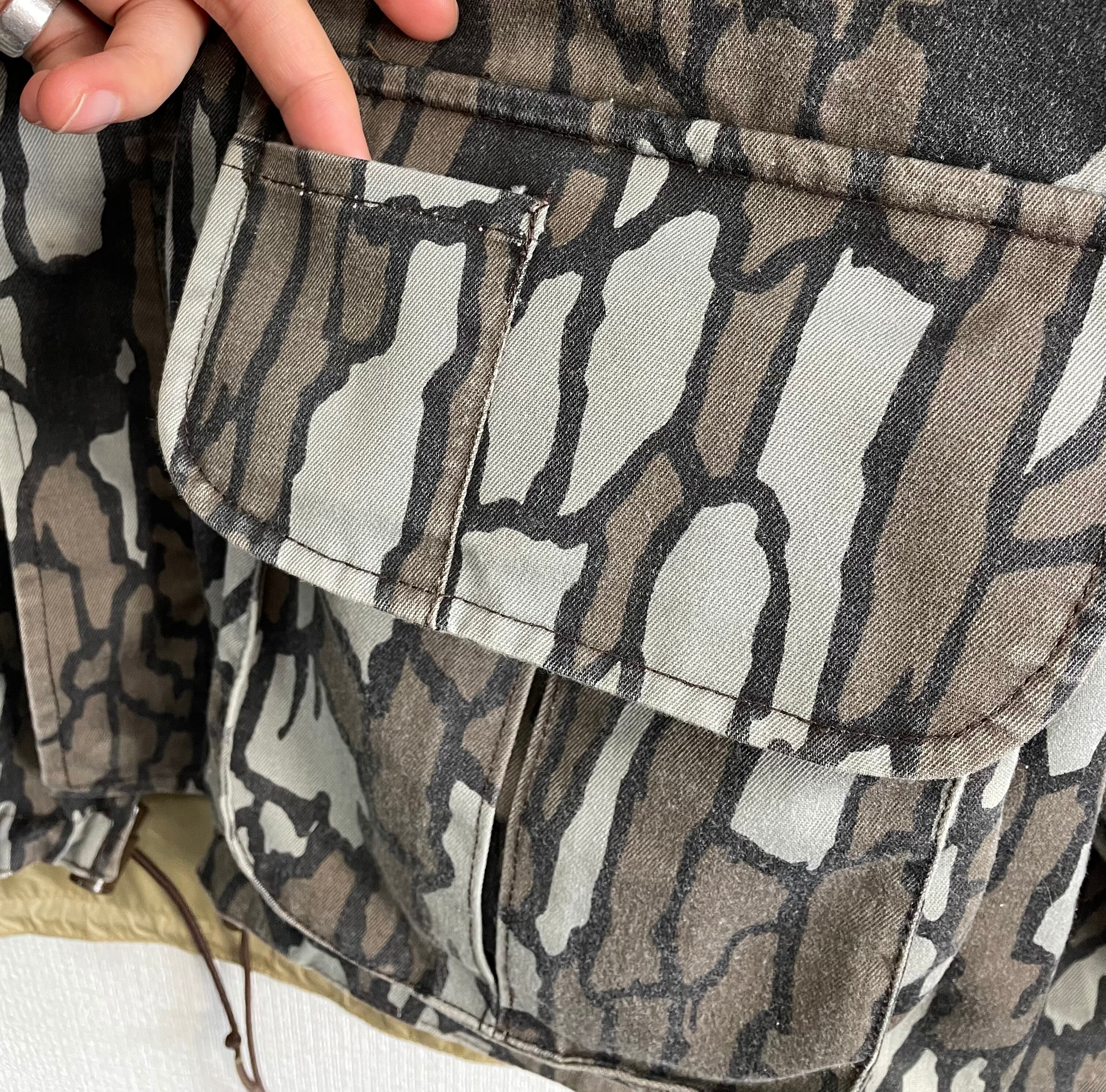 アウトドアブランドとして迷彩等を得意とするRemingtonのツリーカモ柄のブルゾン。コットン生地にプリントされた柄とハイネックのラグランスリーブの相性抜群の秀逸な1着。しかもmade in USA。アウトドアブランドという事もあり、隠しポケットなどディテール盛り沢山なブルゾンです。春にばさっと羽織れる重宝できるアイテムです。