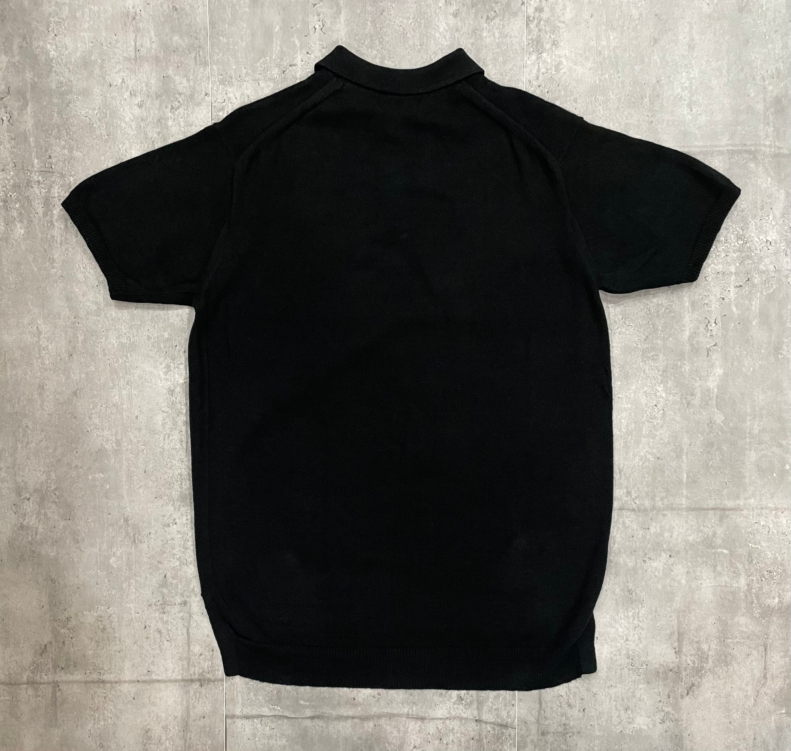 今回はニット編みのポロシャツ。柔らかくもシャリ感のあるコットンを使用し、さらっと着れる一着。裾にはスリットが入っており、ストレスのない仕様になってます。古着とミックスして大人に着れるポロシャツになってます。