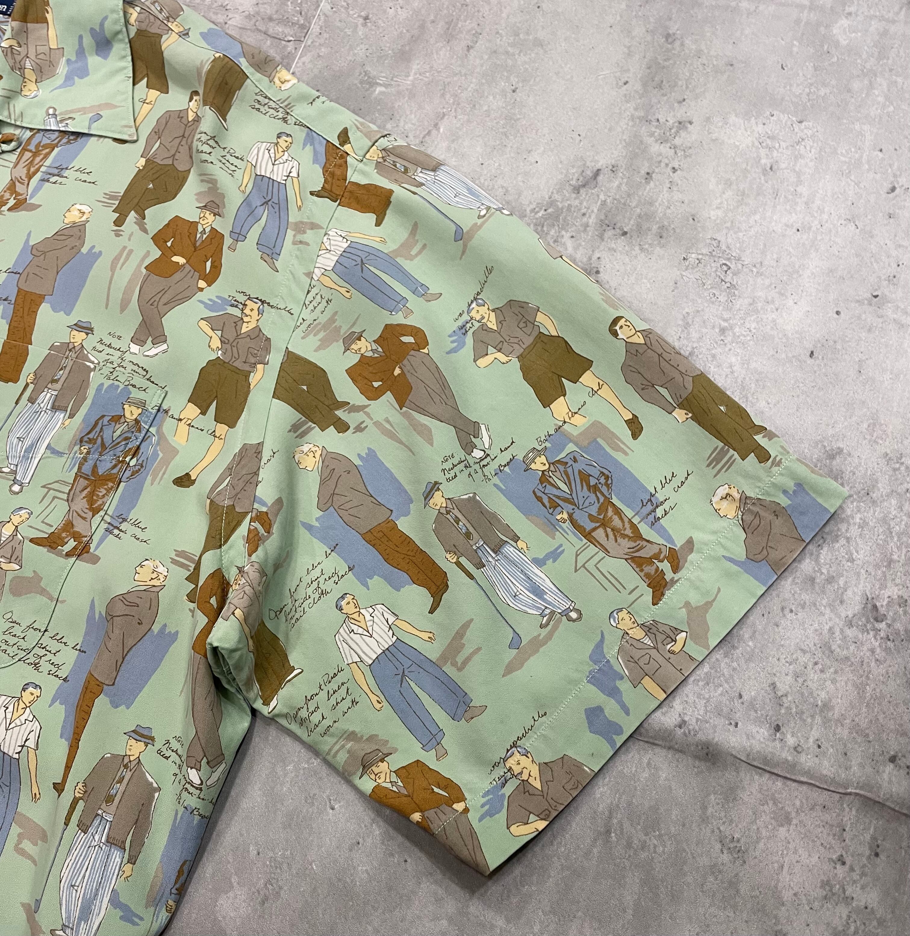 90年代ポロラルフローレンのレーヨンシャツ。人柄のプリントがされた珍しい1着です。