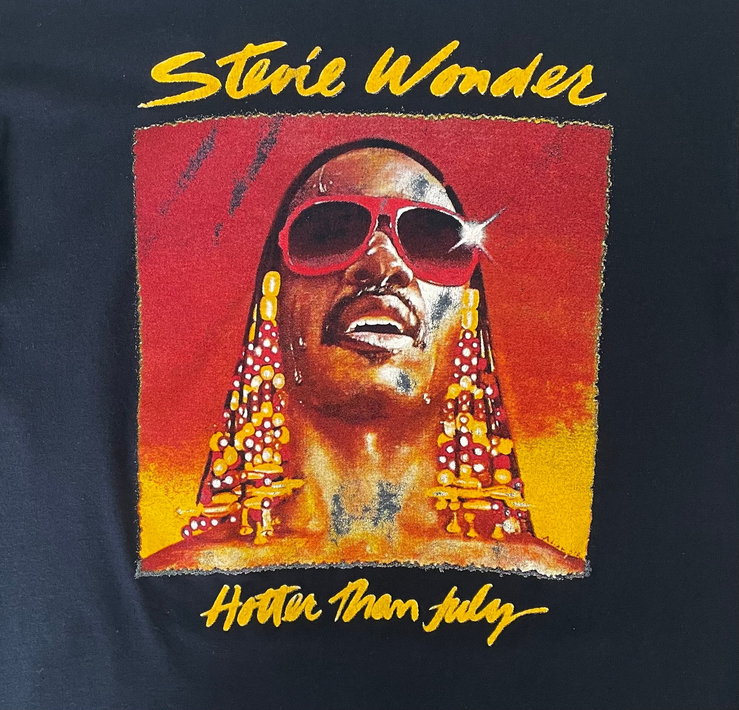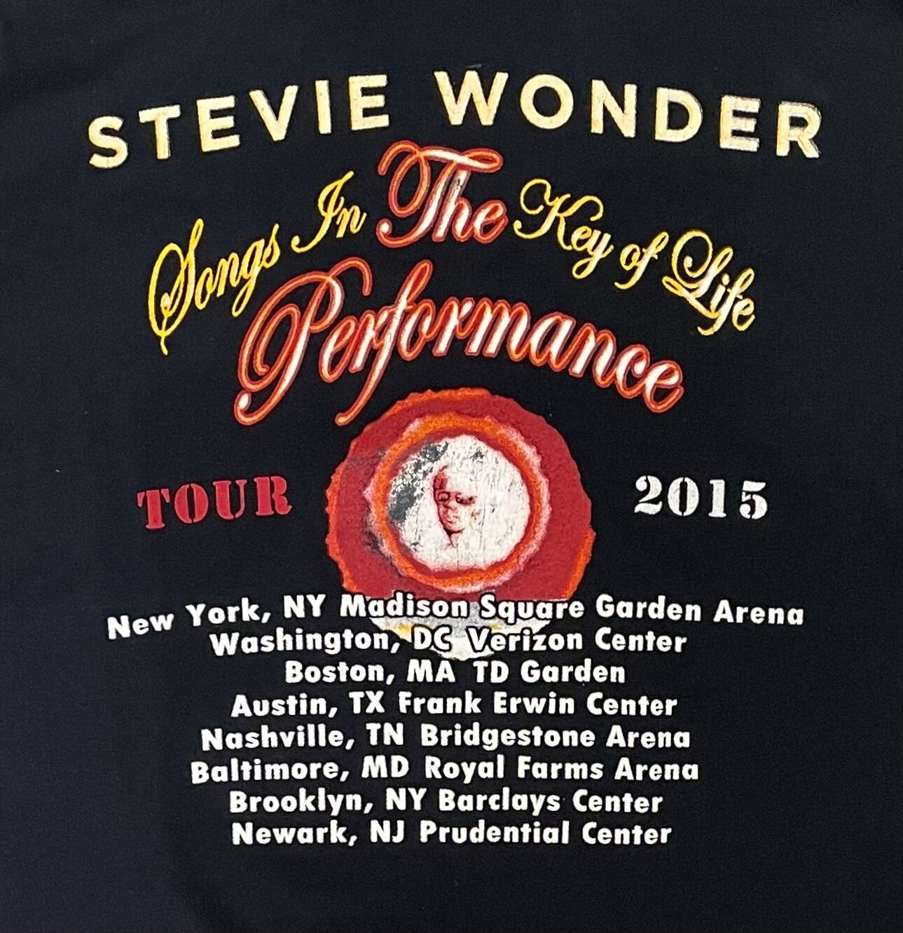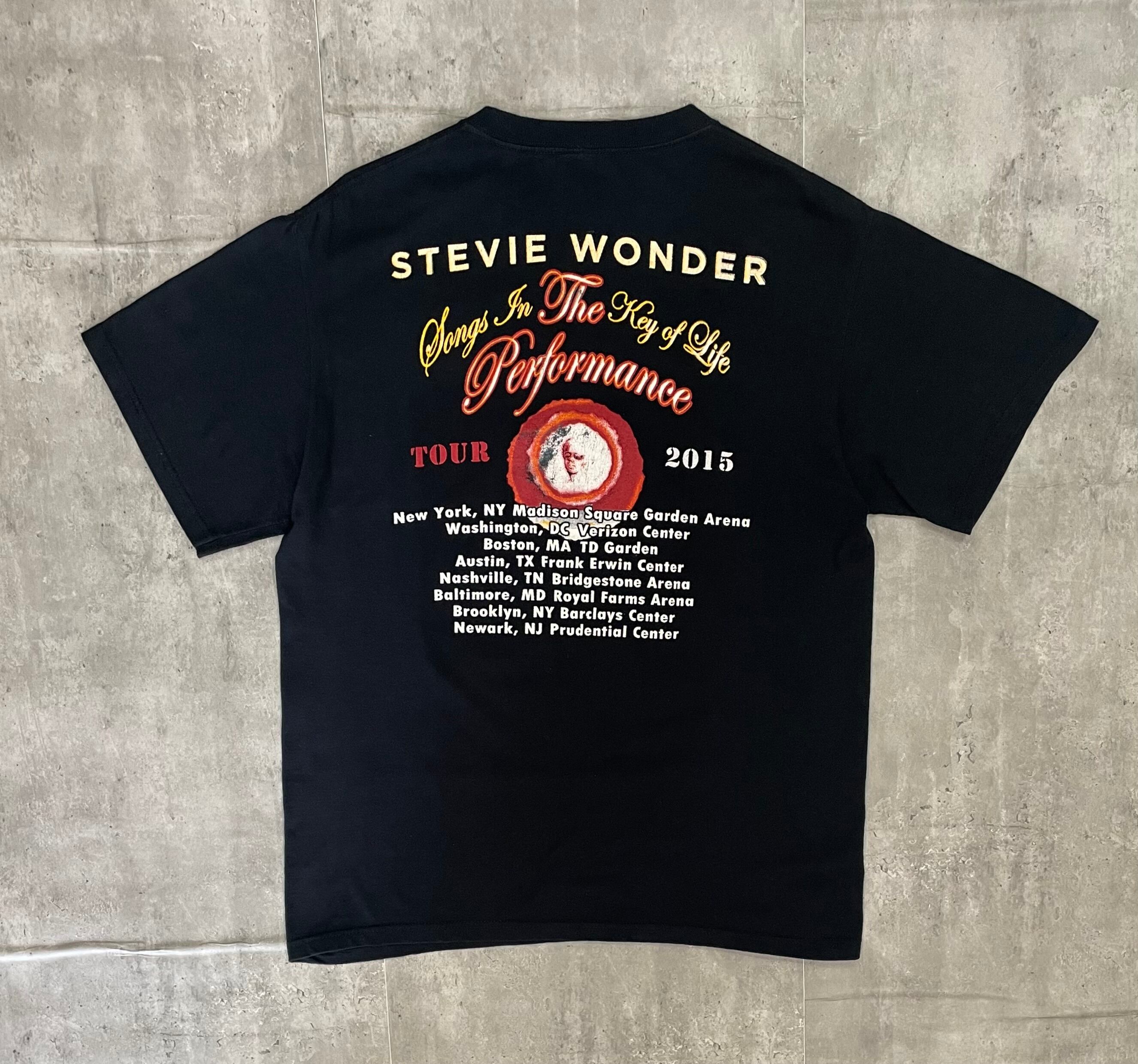 まさに天才アーティスト、スティービーワンダー。こんなに楽しそうに音楽を奏でてみたかったものです。こちらのtシャツは2015年物で古くないですが、雰囲気、グラフィック抜群です。