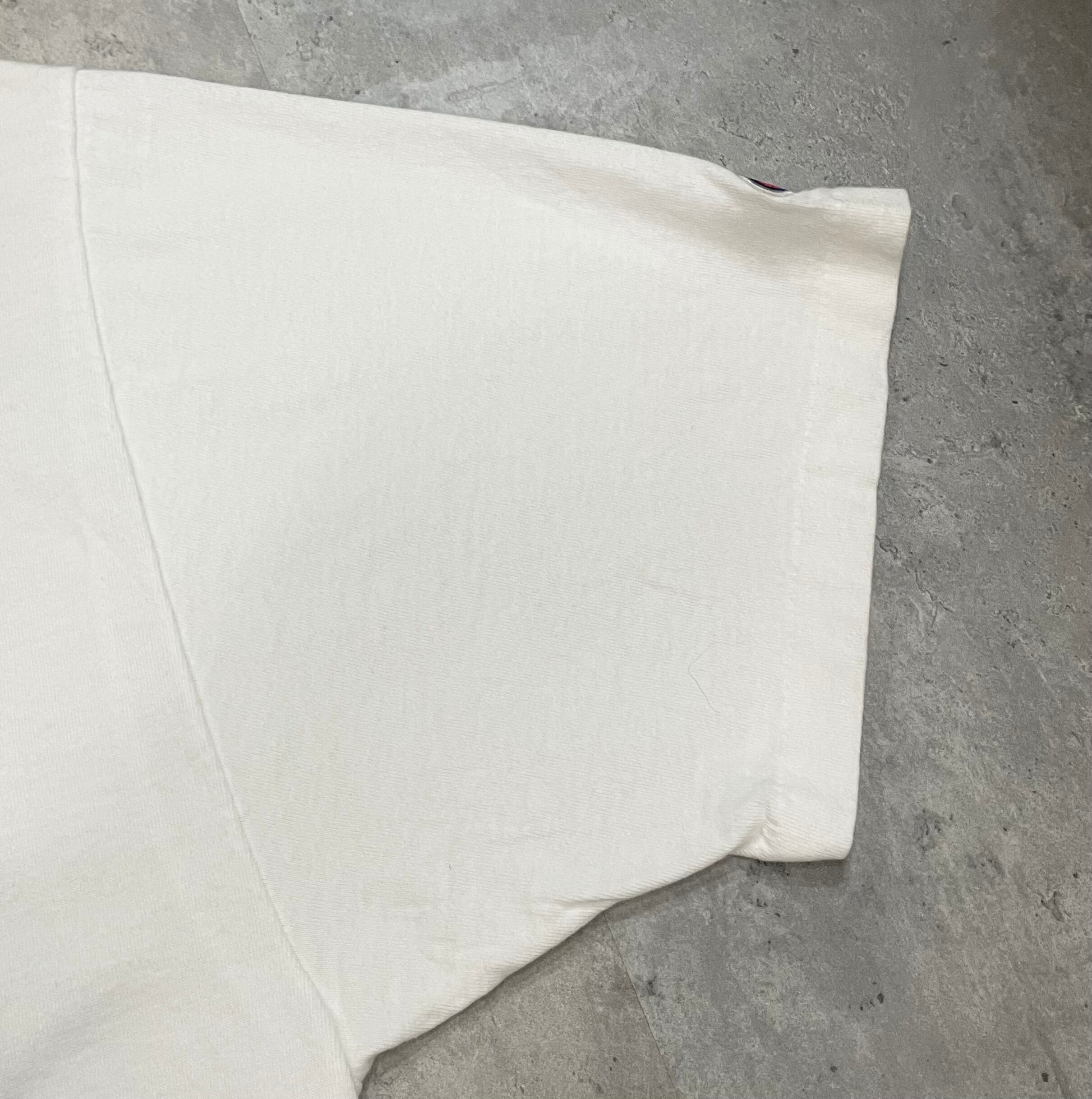 フロントにはロゴに加えて、歴代のパンフレットのグラフィックが共にプリントされてます。ボディはチャンピオンで肉厚な素材感。左右の袖にはプリントとロゴワッペンが貼られています。袖、裾はシングルステッチ。秀逸なグラフィックかつヴィンテージを感じれる1枚です。