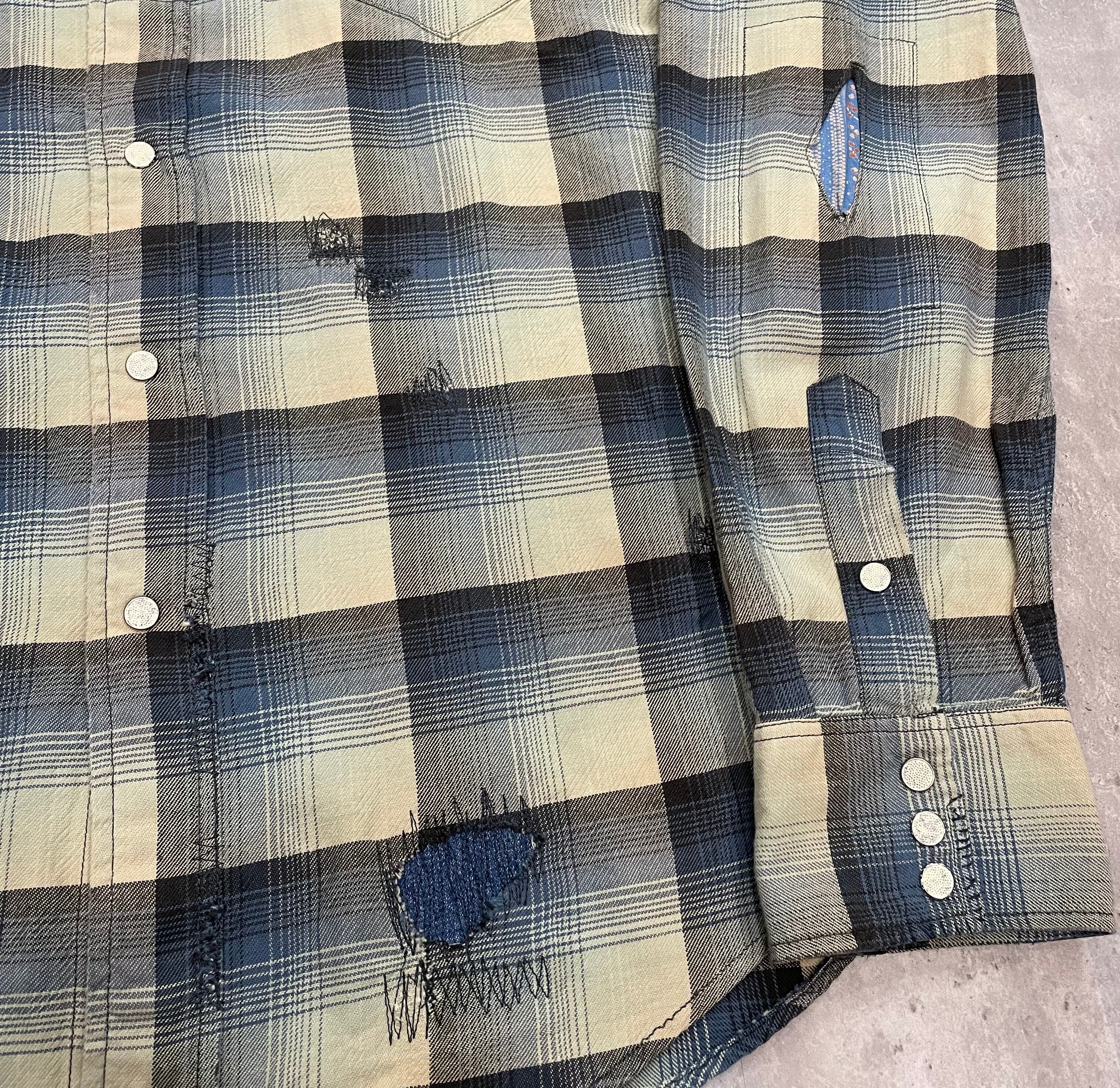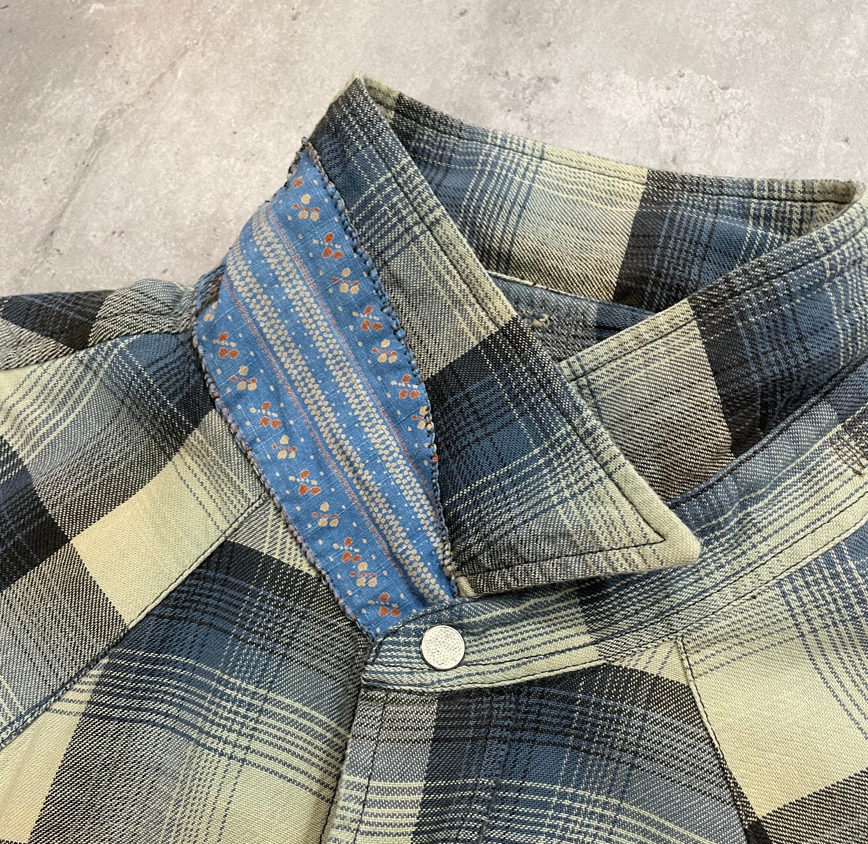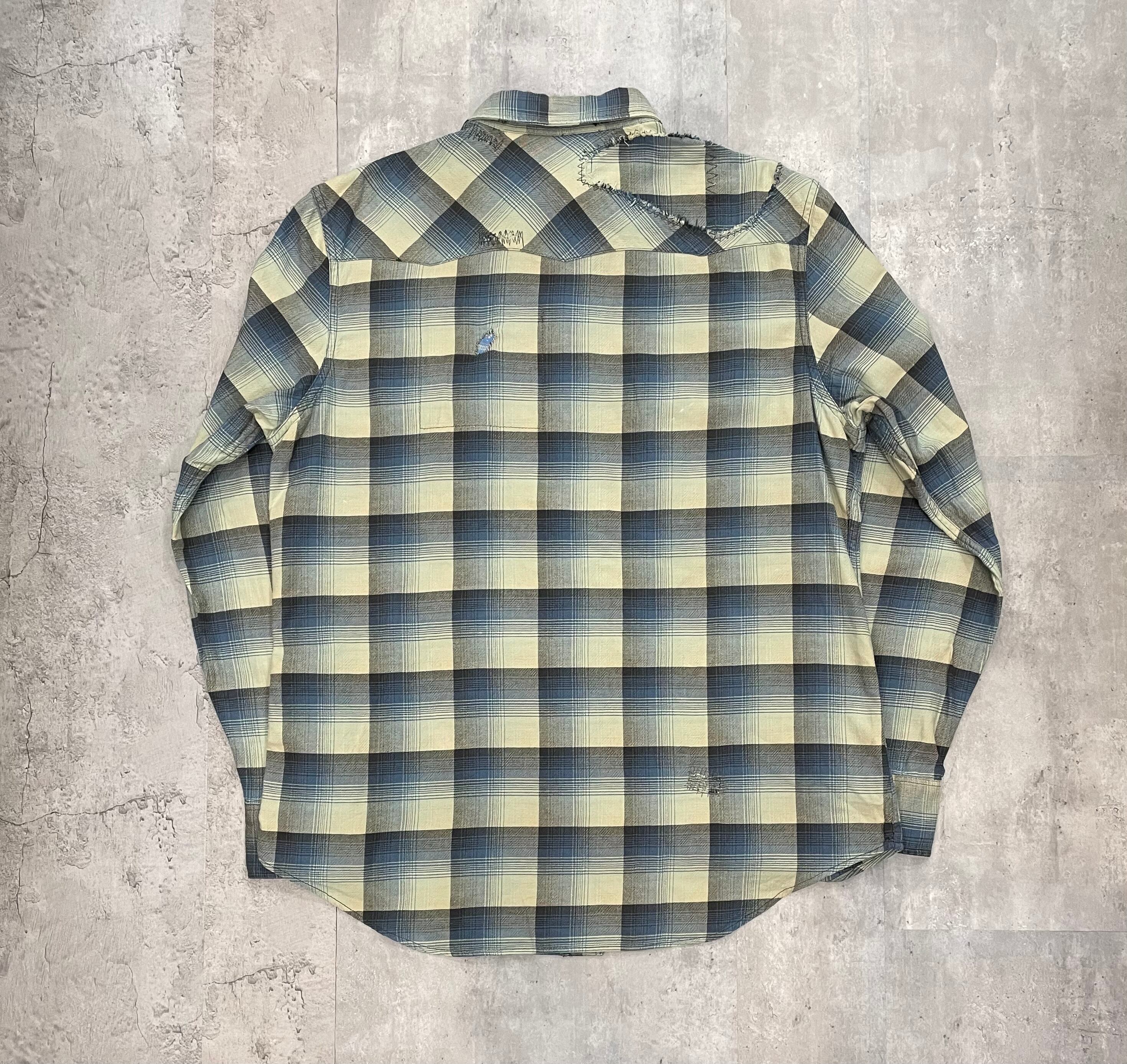 ラルフローレン最高級ライン、RRLのツギハギオンブレウエスタンシャツ。渋いコットンオンブレをウエスタンシャツに落とし込んだデザイン。さらに所々リメイクのようにされた遊び心溢れた1着になってます。一枚一枚量産されたと思うと気が遠くなるような作業ですが、それを成し遂げるのがRRLの魅力です。スペシャルな1着をぜひ。