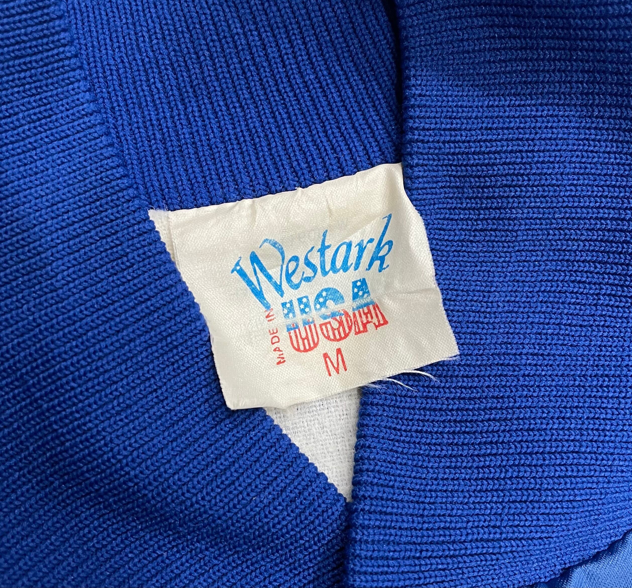 made in USAのサテンチームジャケット。鮮やかなブルーのサテン素材、ばさっとtシャツの上から羽織りたい。後身頃にはアメリカらしいグラフィックの刺繍が入ってます。細かい刺繍でクオリティが高い。個人的にはあえて綺麗めな太いスラックスと合わせてみたいブルゾンです。古着ならではの1着をぜひ。