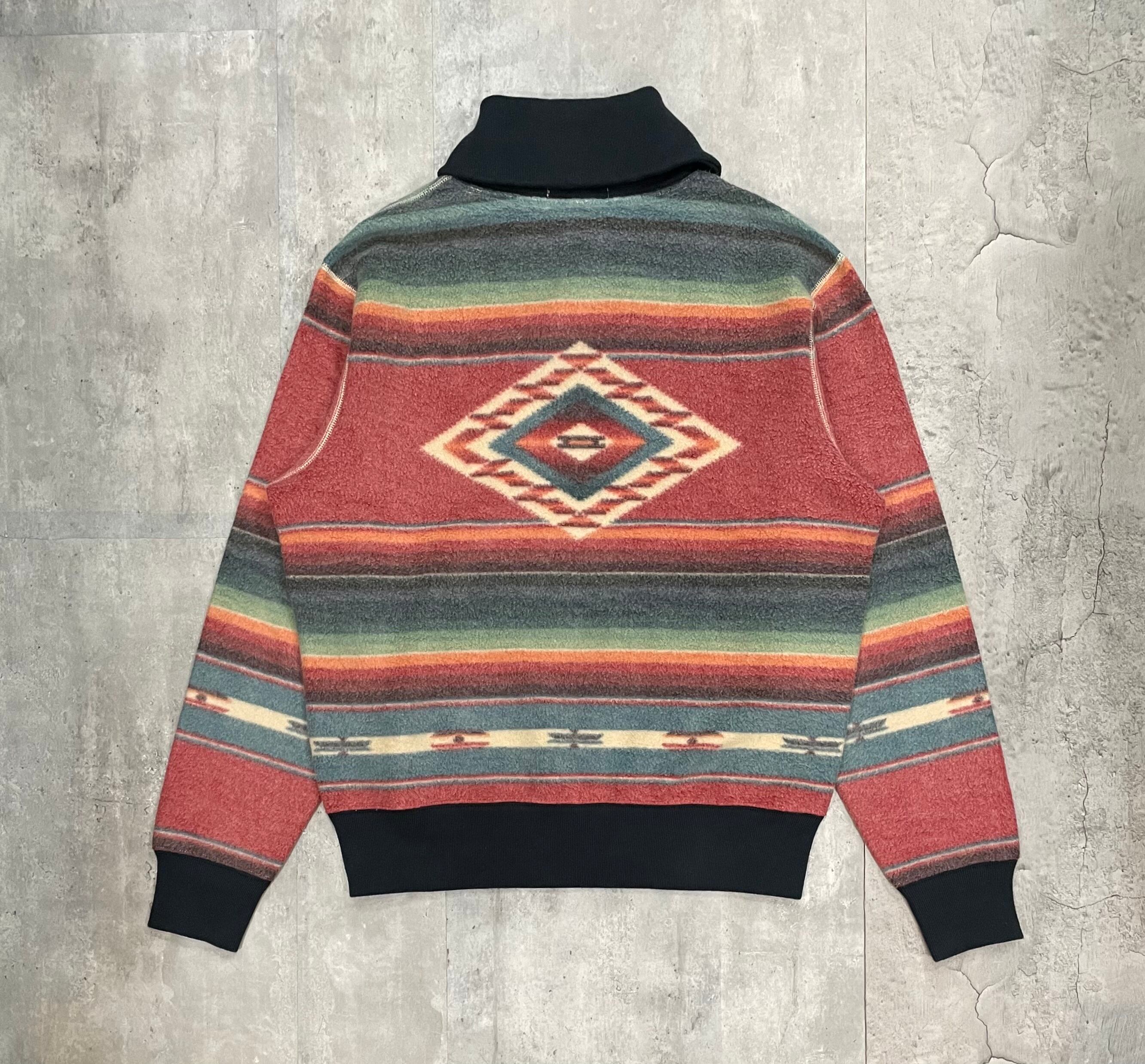 RRLのショールカラースウェット。ラルフローレンらしい品のあるネイティブ柄。生地は起毛の裏毛を裏使いにした仕様で雰囲気のある1着になってます。
