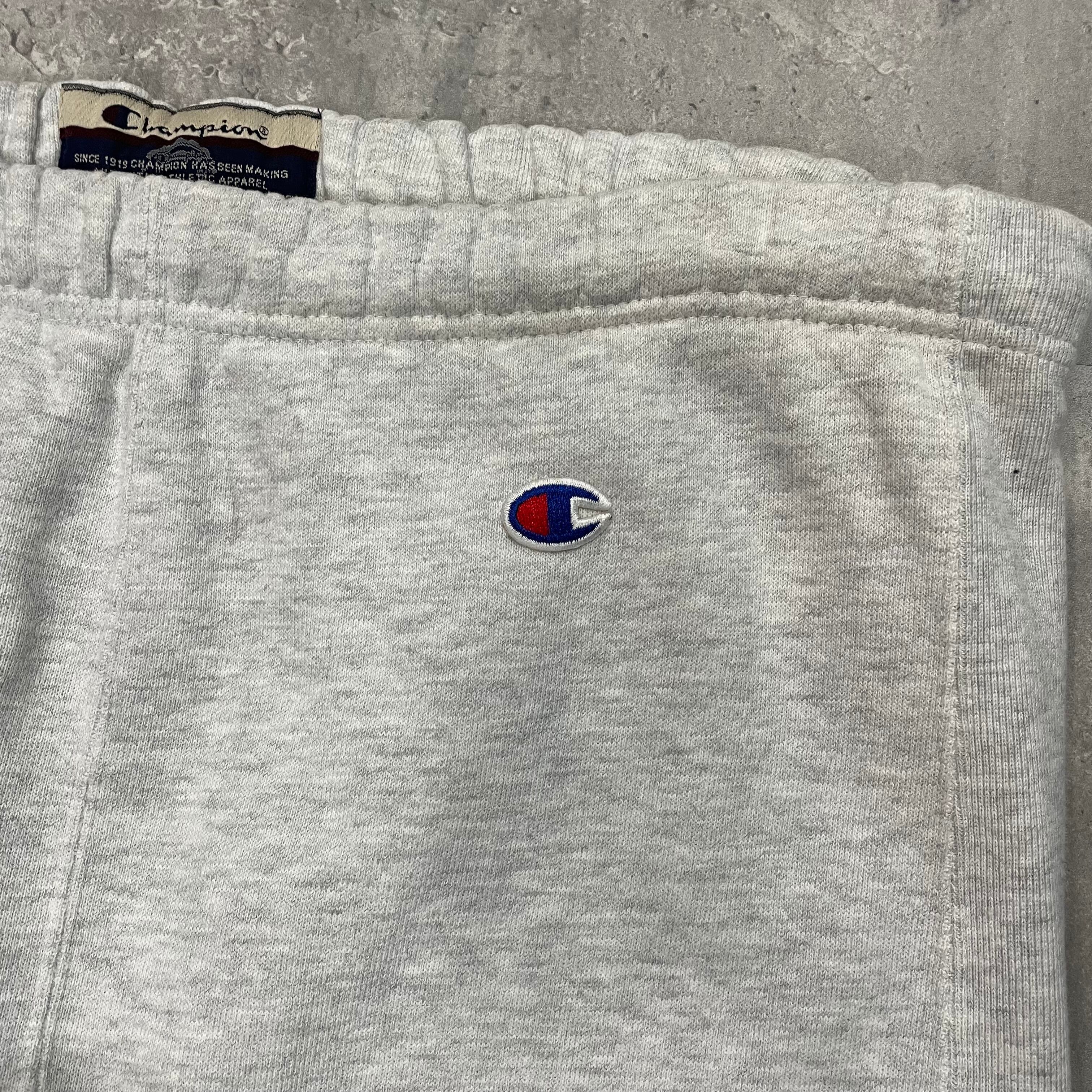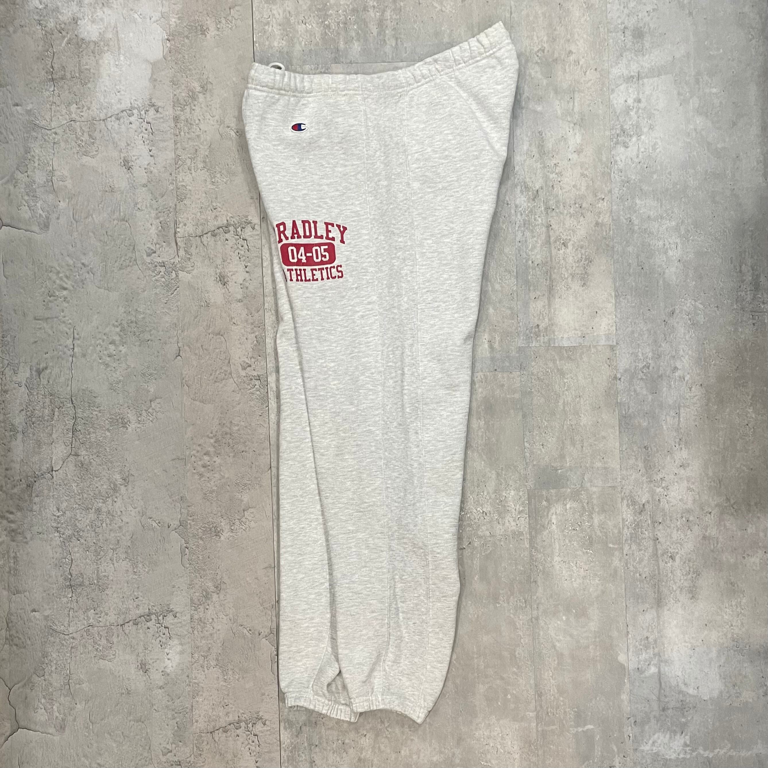 champion reverseweaveスウェットパンツ。トレーナー、フーディ同様、脇にリブ切り替えが入ったデザイン。チャンピオンの目とカレッジプリント入りです。00s〜のモノで、シルエットも太すぎにヒップ、もも周りに程よいゆとりが入っています。ハイテク、ローテクどちらにも合わせられ、楽なのにオシャレが楽しめる1本です。