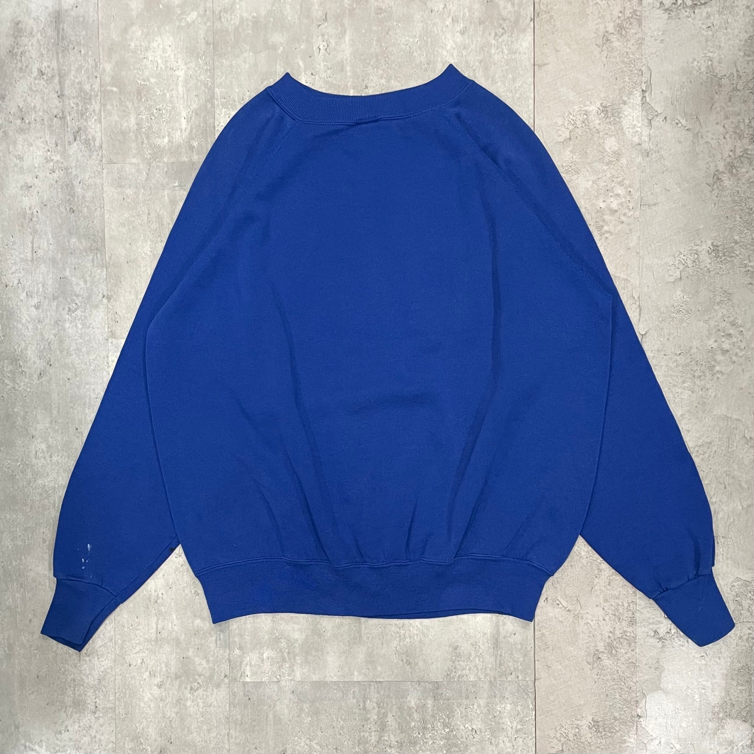 80-90sのUSA製ラグランスリーブトレーナー。個人的にヴィンテージラグランが大好きです。今回は鮮やかなブルーボディーに膨らみのある発泡プリントが施された1着。プリントはコカコーラをサンプリングしたようなフォント、enjoyがらの入った古着らしいアイテムです。サイズはXLで嬉しいゆったり感です。