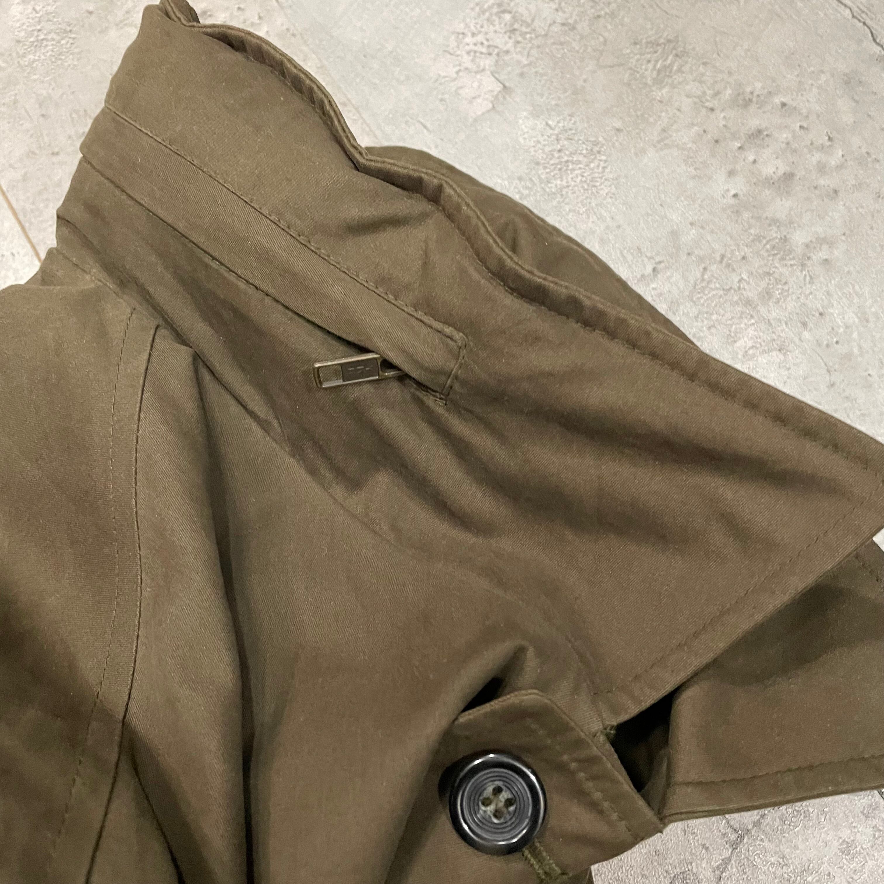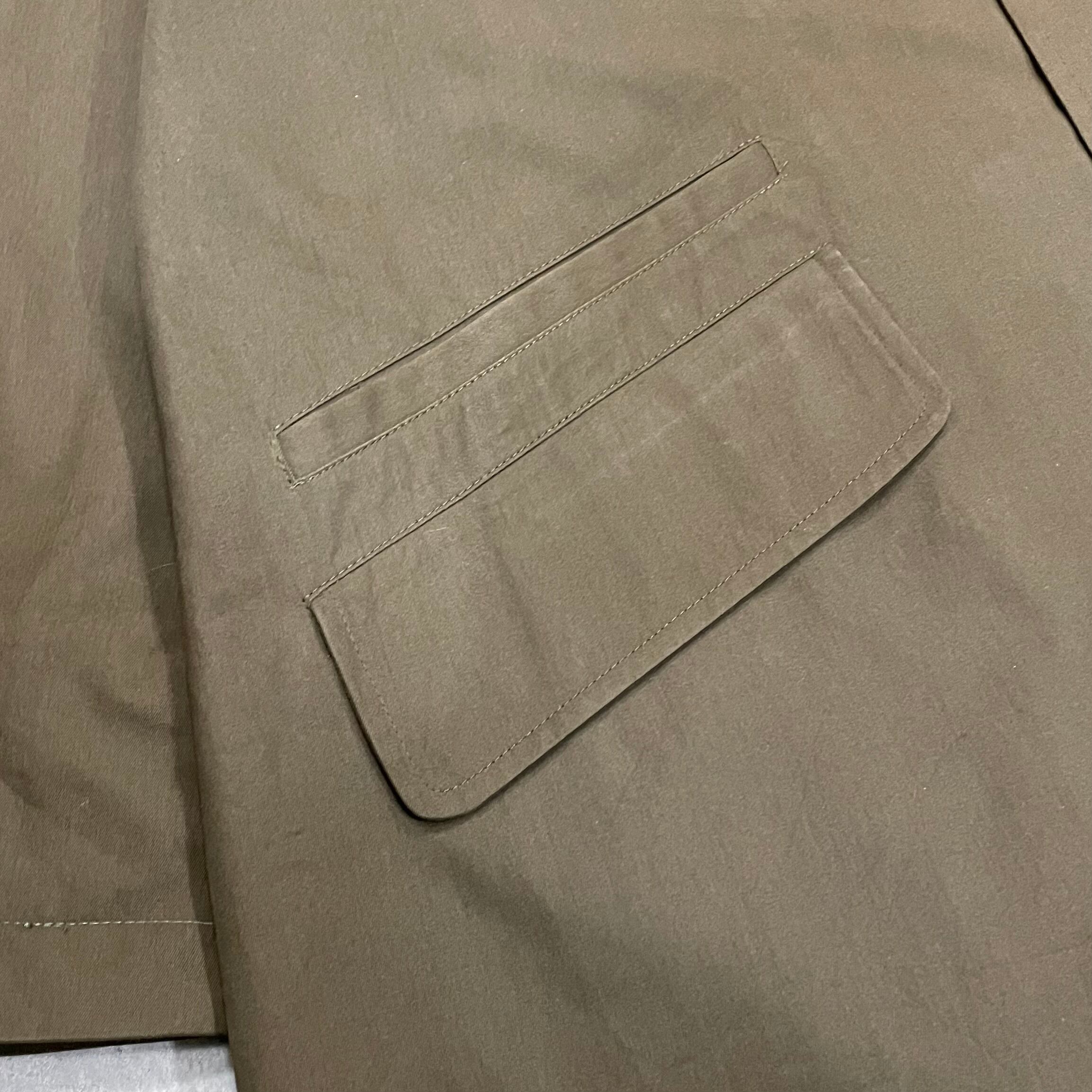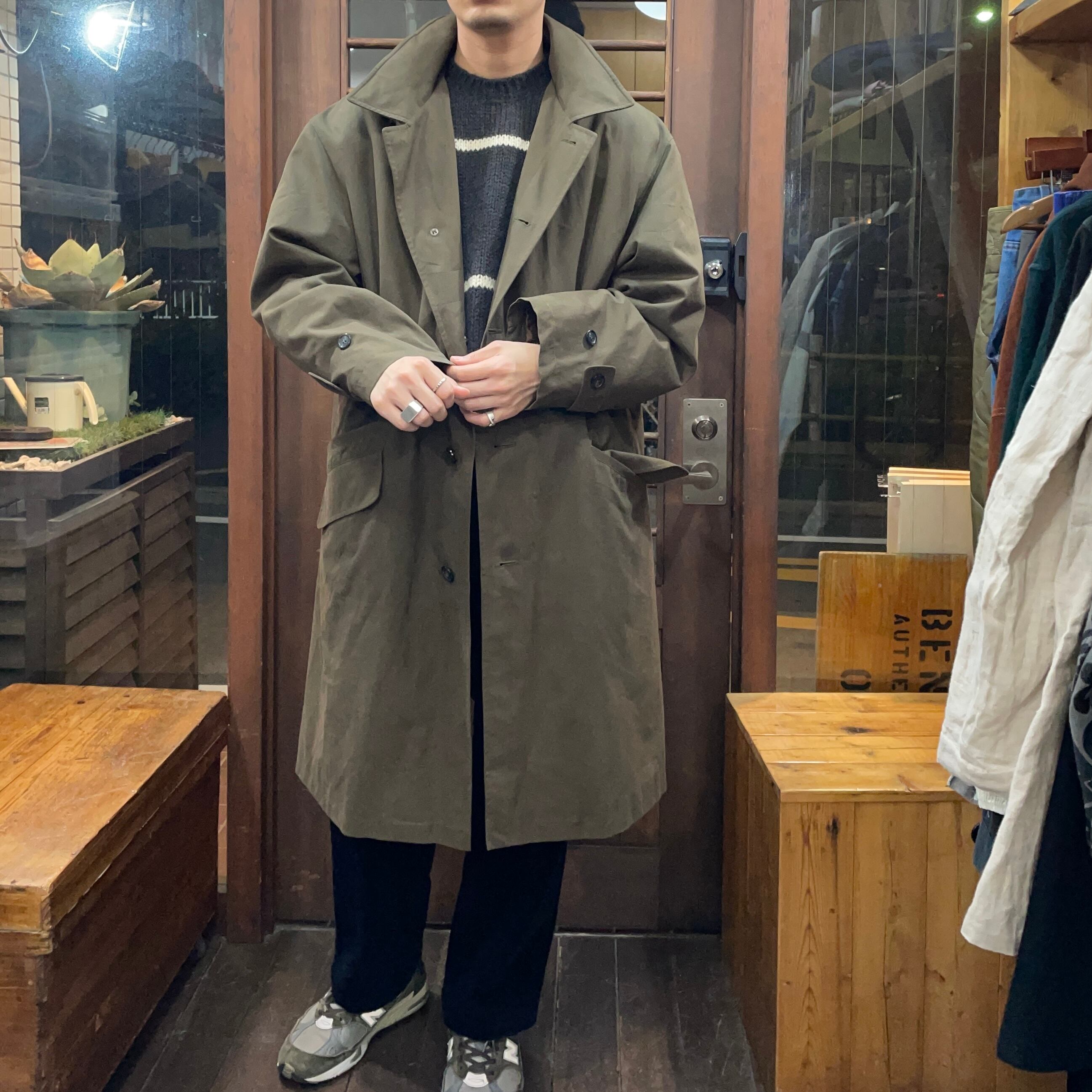 日本でバーバリー、イヴさんローラー、ピエールカルダンなど名だたるブランドと国内展開でモノづくりをしてきた三陽商会。今回は80年代からオリジナルラインとしてアメリカニューヨークで設立されたSANYO NEWYORKのコートになります。コットンの肌触りの良い微起毛素材で色味はベージュカーキ。品があり合わせやすいカラーリングです。ポケットが左右非対称、襟にはインフードでしまっている時には立ち襟になるようなデザイン。取り外しのできるキルト裏地など申し分のないディテール。なによりも丁寧な縫製、パターンで綺麗なシルエット。ミリタリーのように合わせやすく、大人に着こなせるコートになってます。