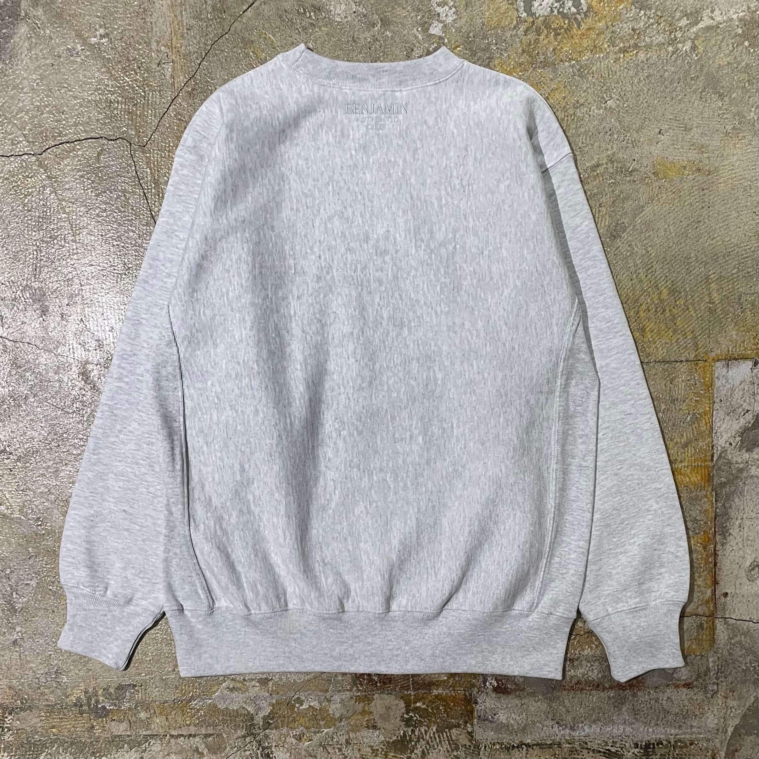 型は身頃をヨコ地で取り、脇のリブは細腹になっているリバースウィーブ型のボディ。ゆとりがありながらも綺麗に着こなせるバランスの良いシルエット。12オンスで裏起毛の肉厚な生地を使用。フロントにはカレッジアーチロゴの半ラバープリントで90年代を意識しています。後身頃には当店の定番ロゴが同色刺繍が入りさりげない大人な仕様。今回のこだわりはプリントのカラーです。黒ボディにはネイビーの微配色でヴィンテージでは表現することの少ないカラーリング。グレーには、こちらも微配色のホワイトと絶妙なバーガンディカラーの2色を用意。M.L.XL.XXLの4サイズ展開しております。