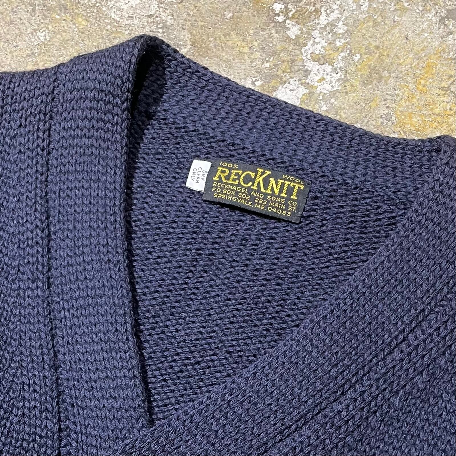 ローゲージの太いウール糸で編まれており、肉厚でこだわったヴィンテージの1着です。ネイビーとイエローの王道の組み合わせでコーディネートに役立つアイテムです。
