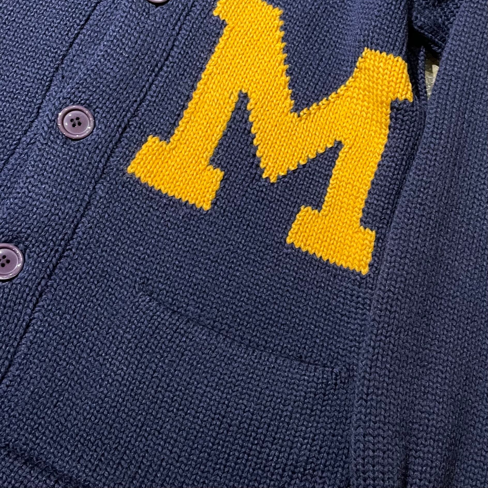 アメリカ仕入れのMマークが編み込まれた60年代のレタードカーディガン。