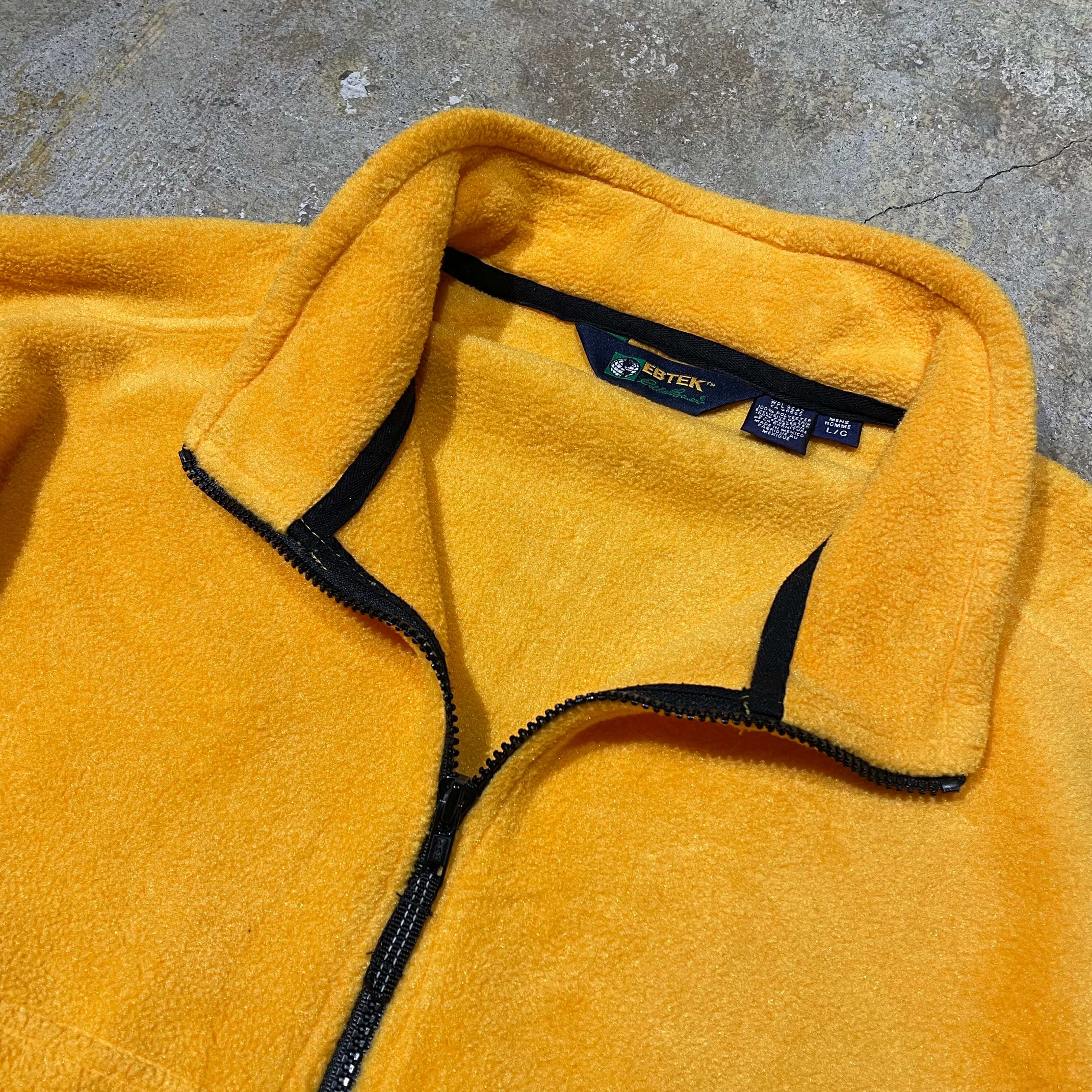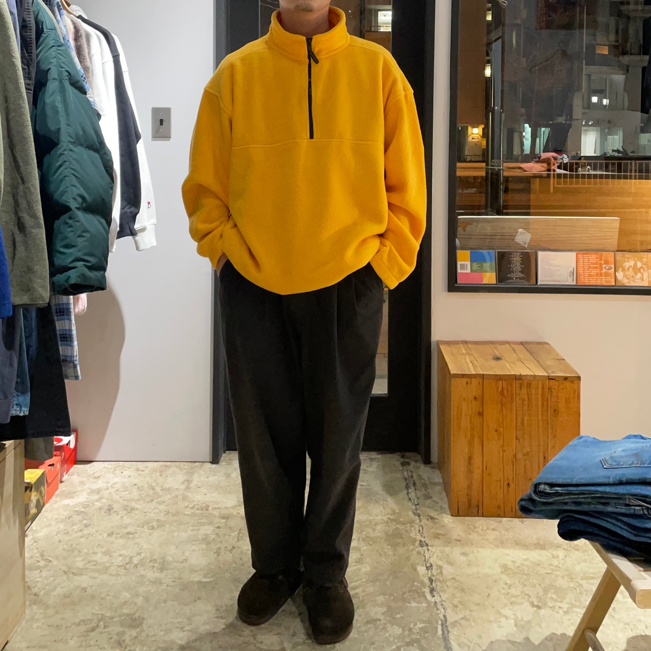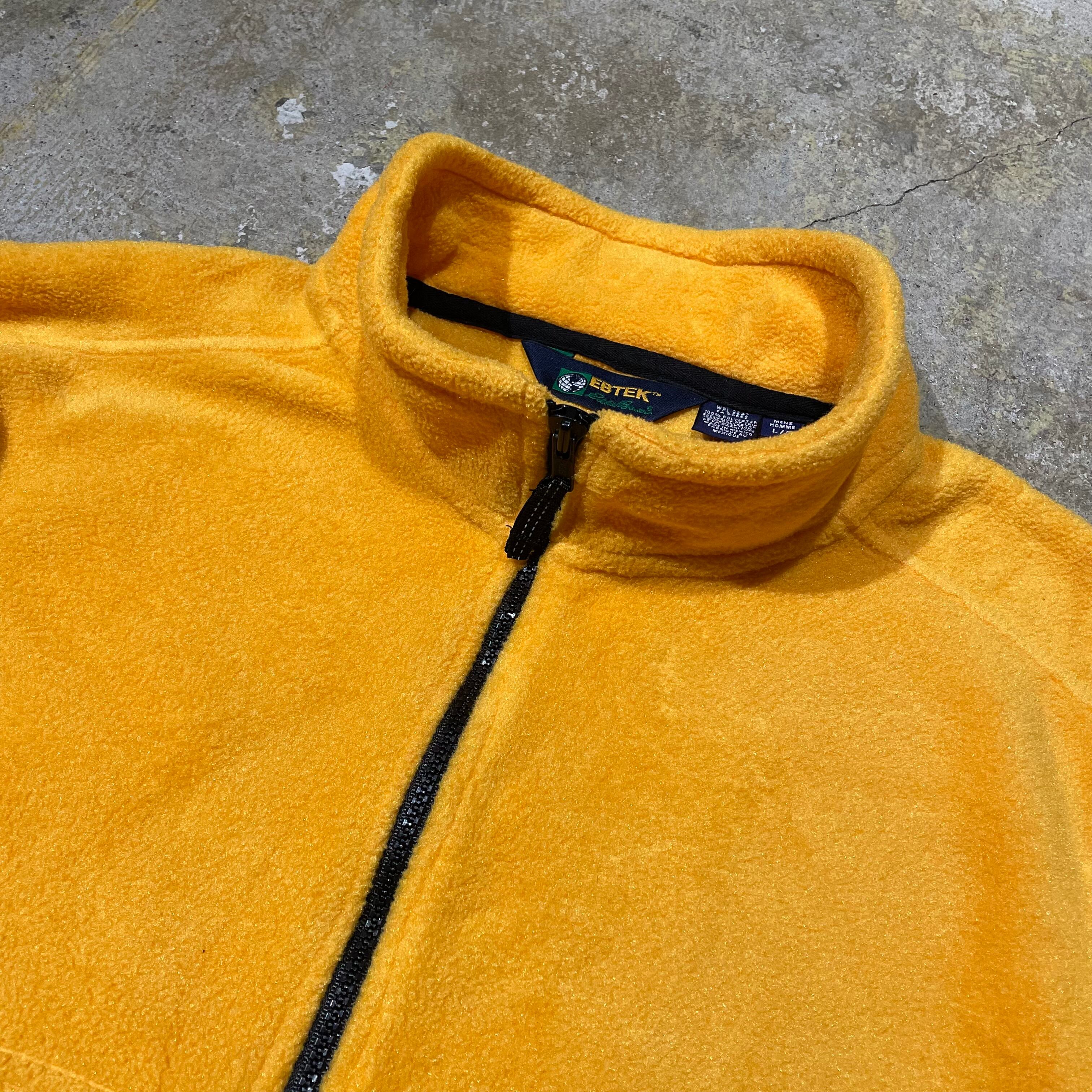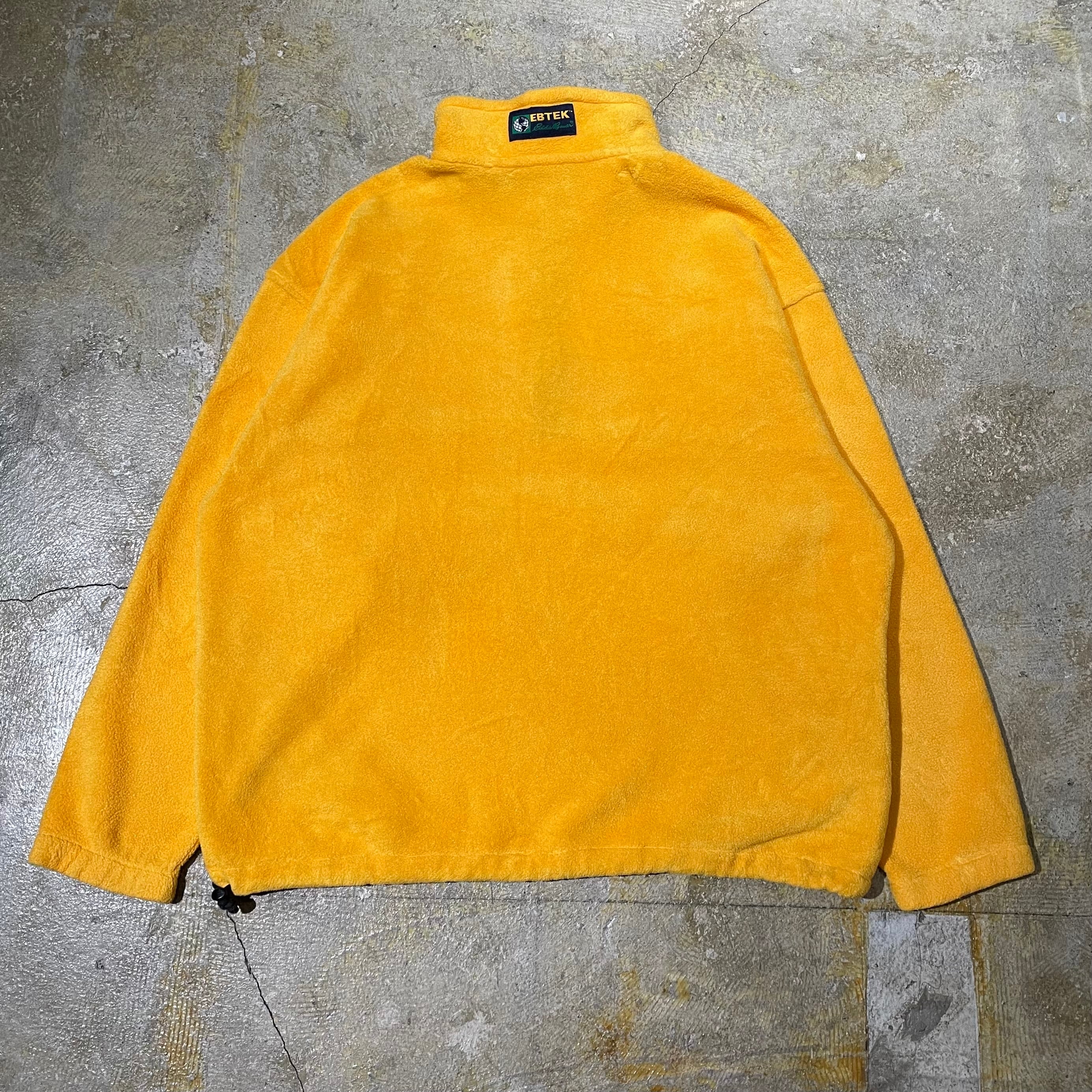 エディーバウアーが90年代に展開したハイパフォーマンスラインEBTEK。海外ではアーティストが着るなど現在人気が高騰しているアイテム。今回は定番のフリースのプルオーバー型のイエロー。デニムや黒のパンツと相性の良いカラーリングです。Lサイズでビッグシルエット。裾のスピンドルを絞って着るのがおすすめです。軽く保温性の高いフリースでありながら、ストリートを感じるロゴの雰囲気がたまらない1着になってます。