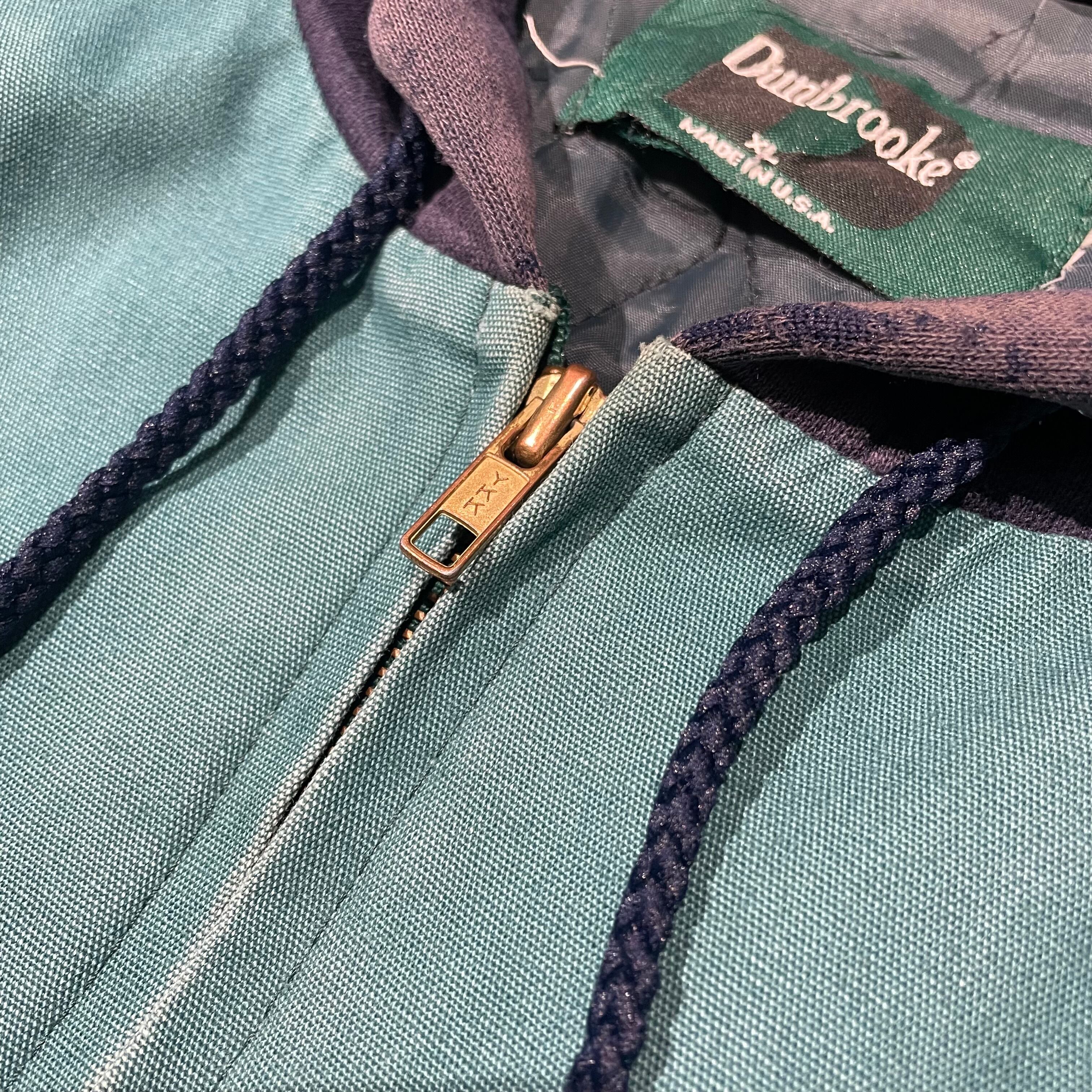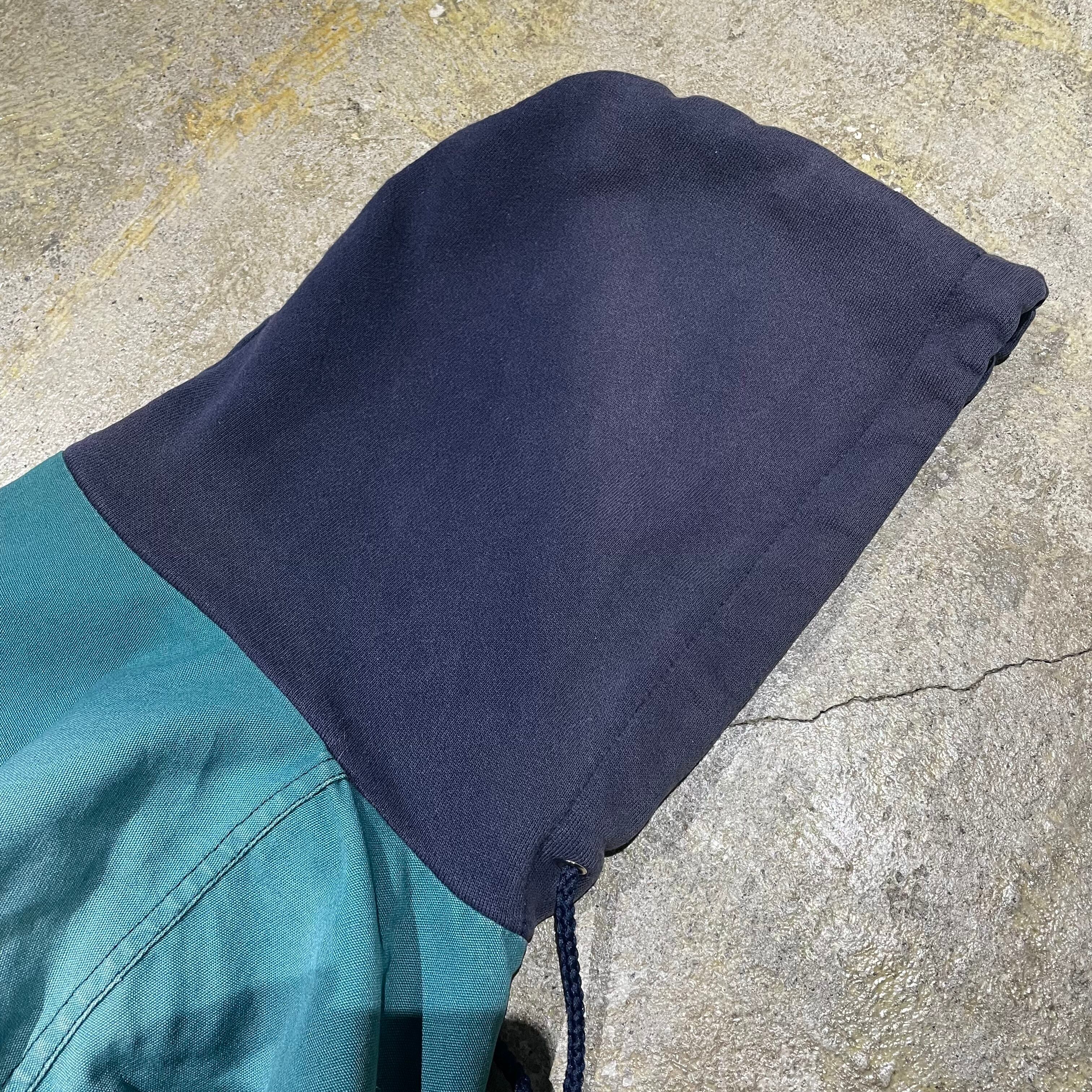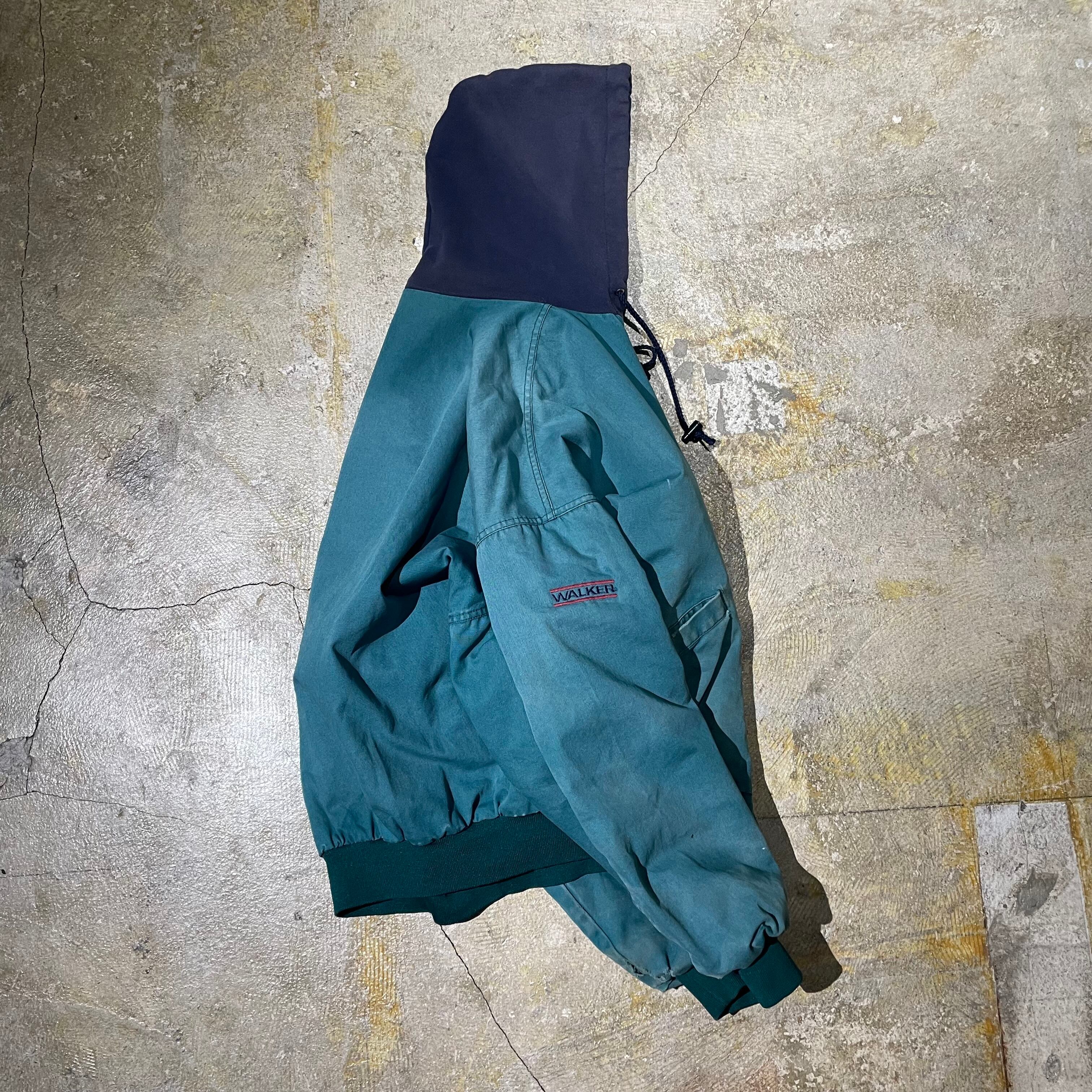 キャンバス生地の中キルトワークブルゾンにパーカーがドッキングされた1着。ショート丈ながら袖、身幅のボリューム感が90年代を彷彿とさせます。色褪せやダメージありますが、逆にモードな仕上がりになっているmade in USAのヴィンテージアイテム。真冬には少し肌寒いですが、春に羽織として活躍するアウターです。この機会にぜひ。