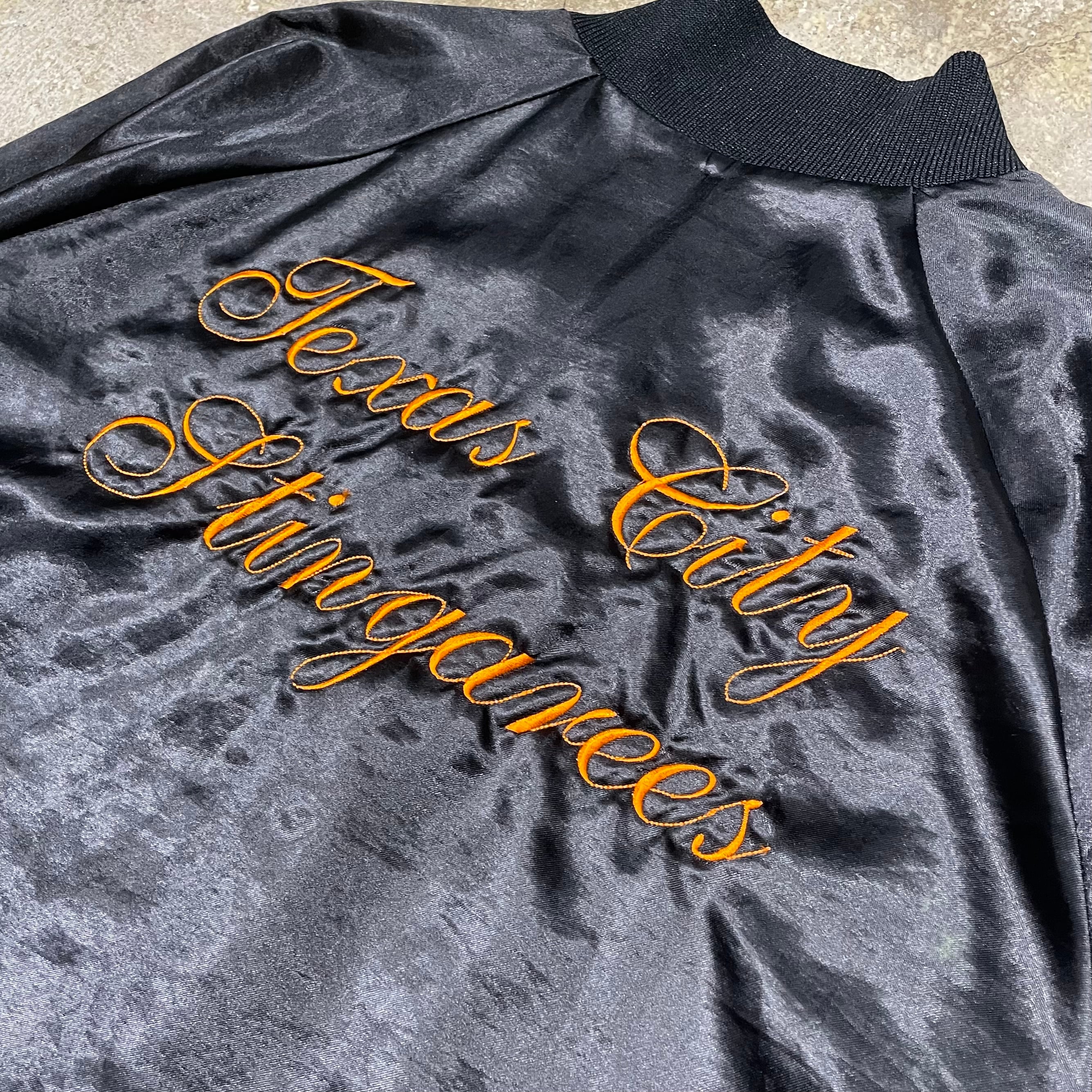 90年代スタジャン型のサテンブルゾン。ラグランスリーブで太めの身幅に、ややショートな着丈感のバランス感今ってぽい1着。長めの袖で溜まりができるシルエットも嬉しいです。後ろ身頃にはシャープな筆記体刺繍が綺麗に入っており、クオリティの高いブルゾンになっています。made in USAのライトアウターをこの春にぜひ