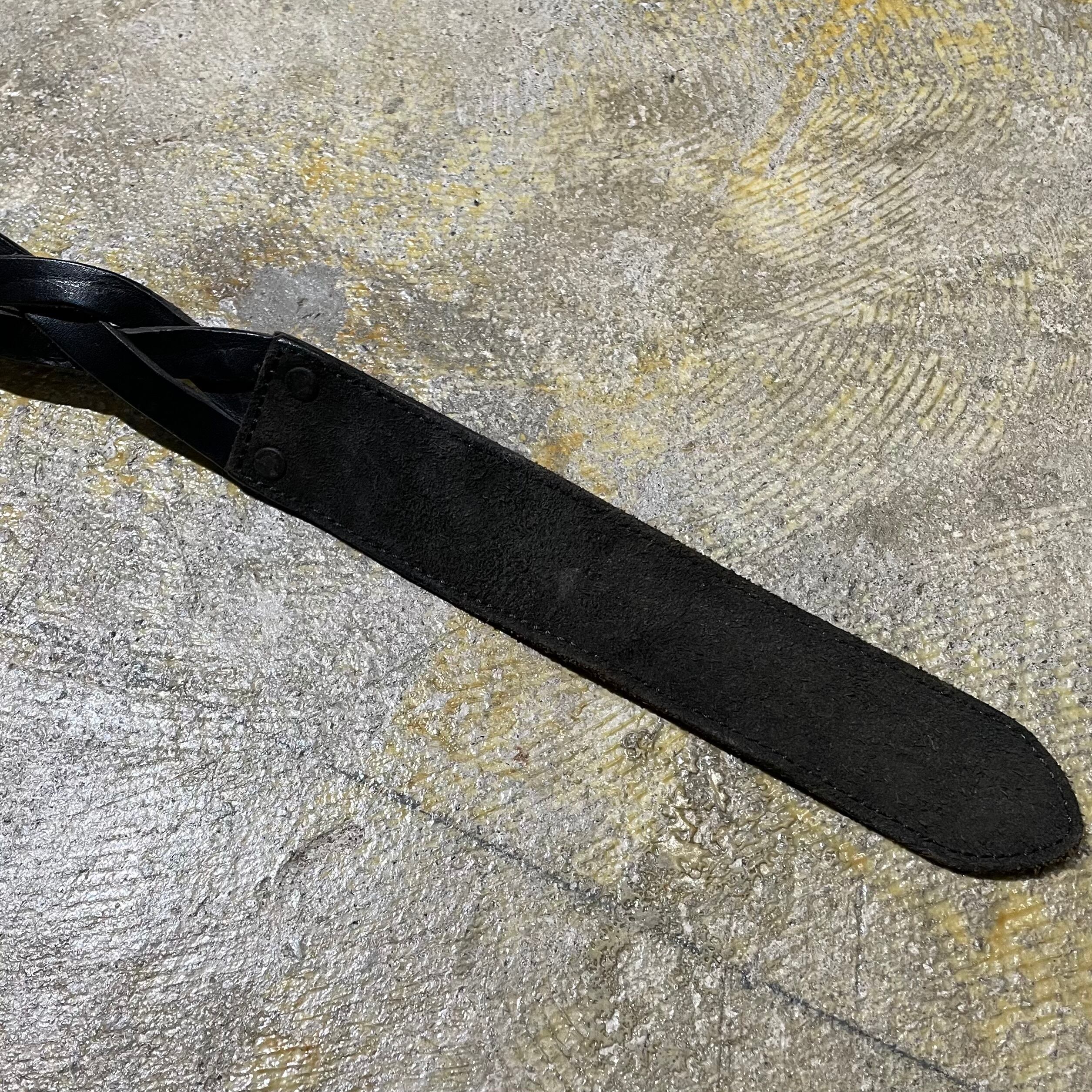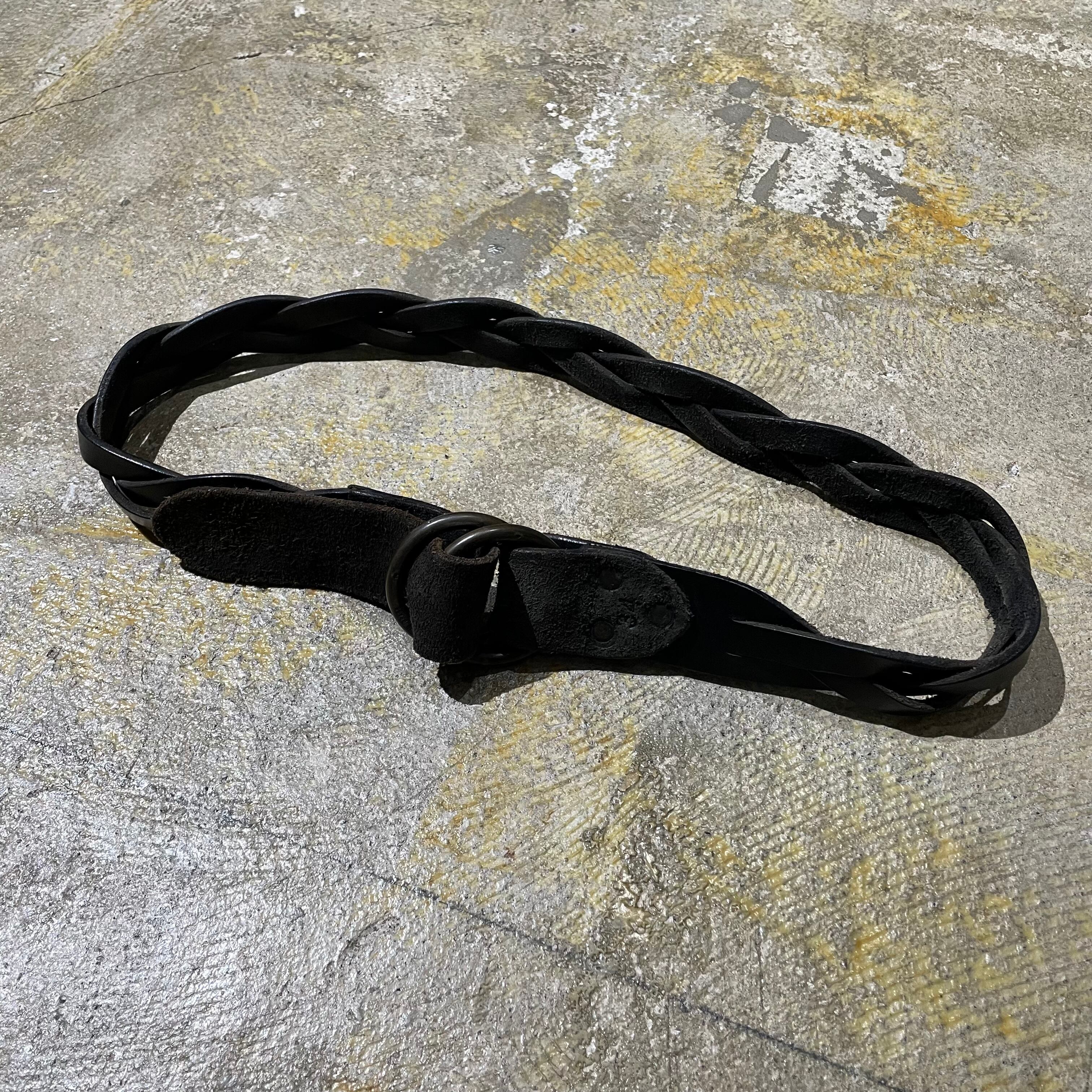 ラルフローレンの最高級ラインRRLのレザーベルト。編み込みレザーで男らしいアイテム。マルカンにはRRLの刻印が入っており高級感があります。デニムはもちろん、あえてスラックスと合わせても面白いベルトになっています。
