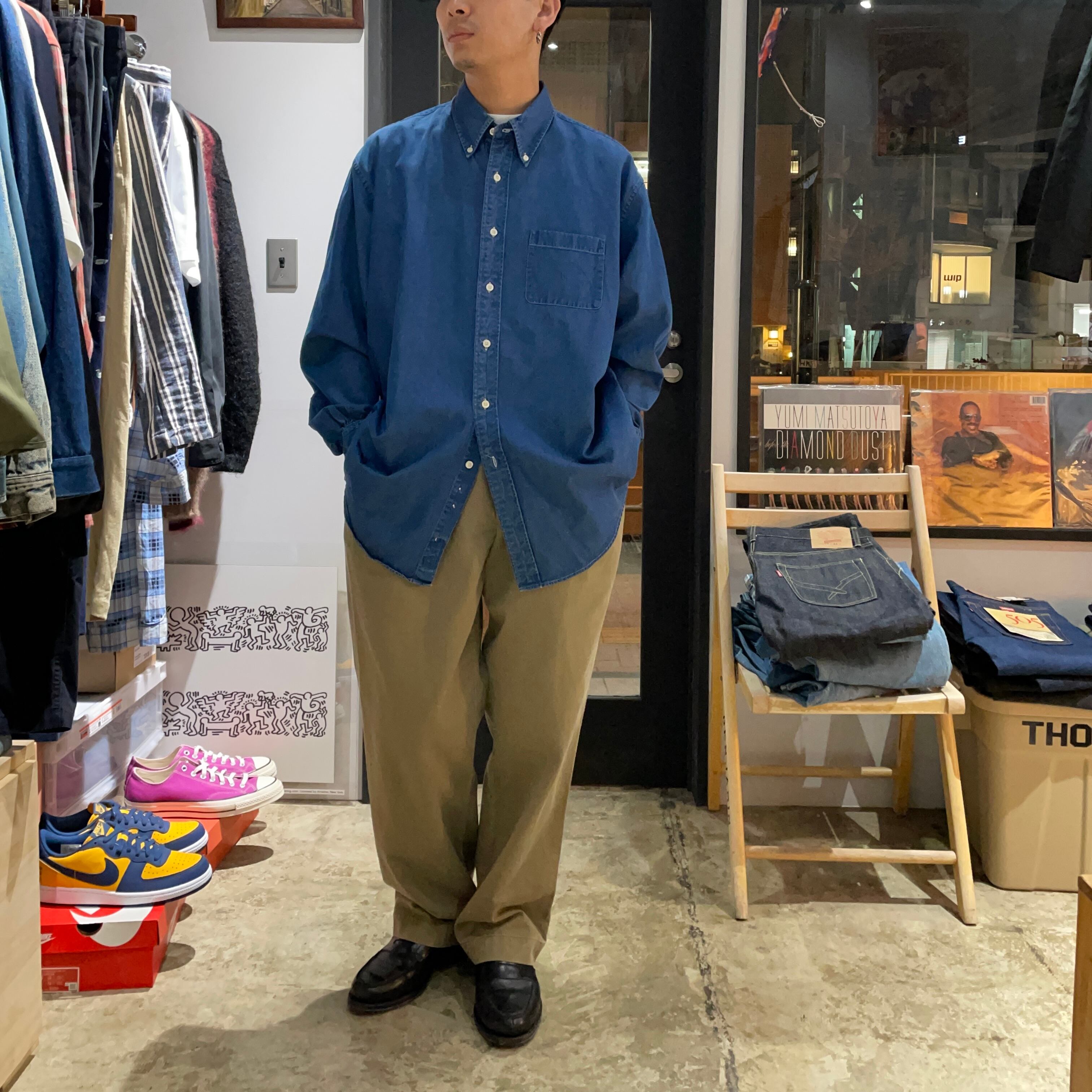アメリカの伝統的なトラッドブランド、ブルックスブラザーズのシャンブレーシャツ。張りのある面の綺麗なシャンブレー素材が品があり、大人な1着。今回はサイズXLと大きく、ぜひワイドパンツにバサっと合わせて欲しいです。腕を捲って夏に爽やかに着るのにおすすめのシャツです。