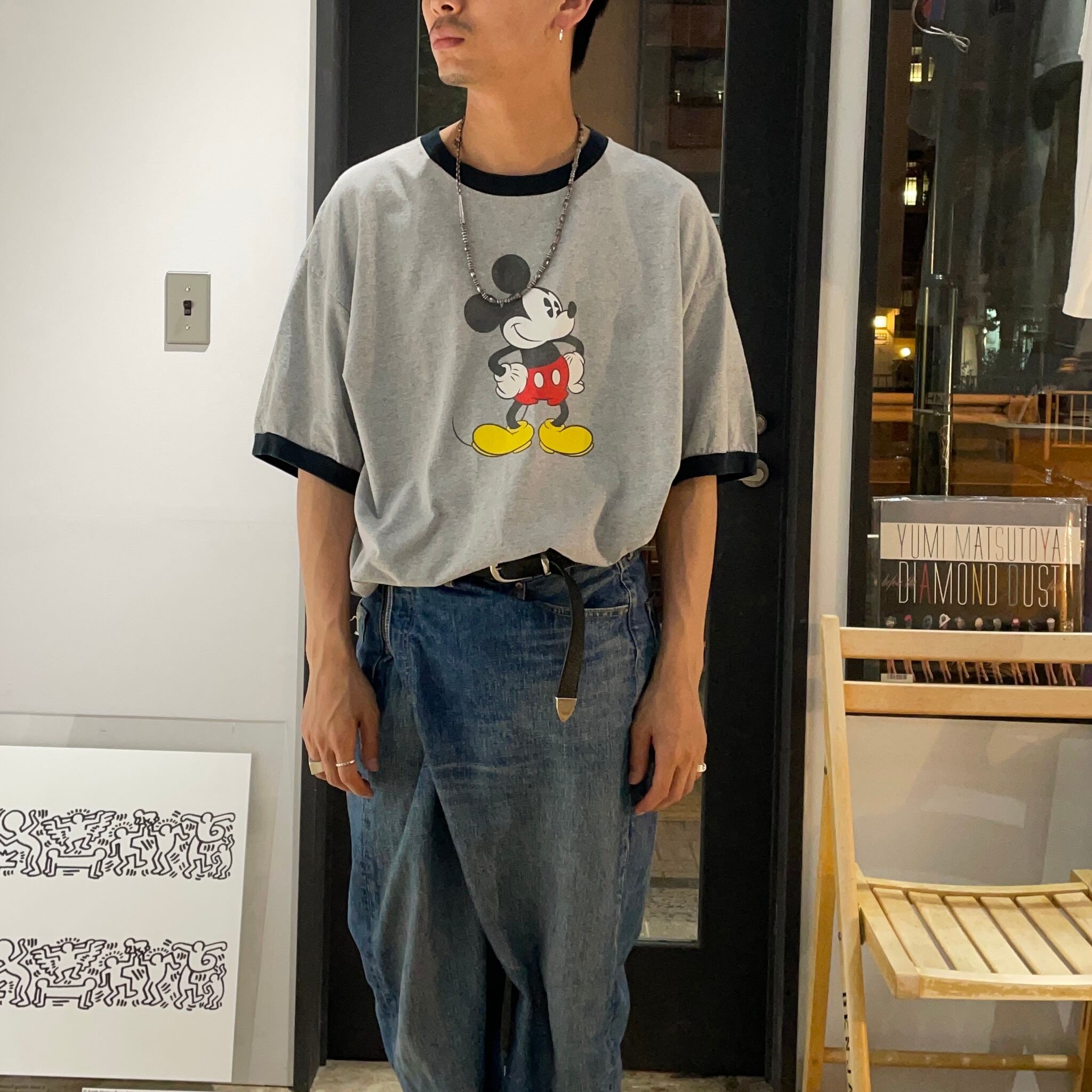 世界で最も愛されているキャラクターであるミッキーマウスがフロントにプリントされたディズニーストアオフィシャルのリンガーTシャツ。人気のあるデザインですが、今回はかなり大きいサイズ。オーバーサイズで着ることで可愛い雰囲気がありつつもモードは印象も与えてくれます。個人的には袖が5分丈くらいになるシルエットがお気に入りのアイテムです。