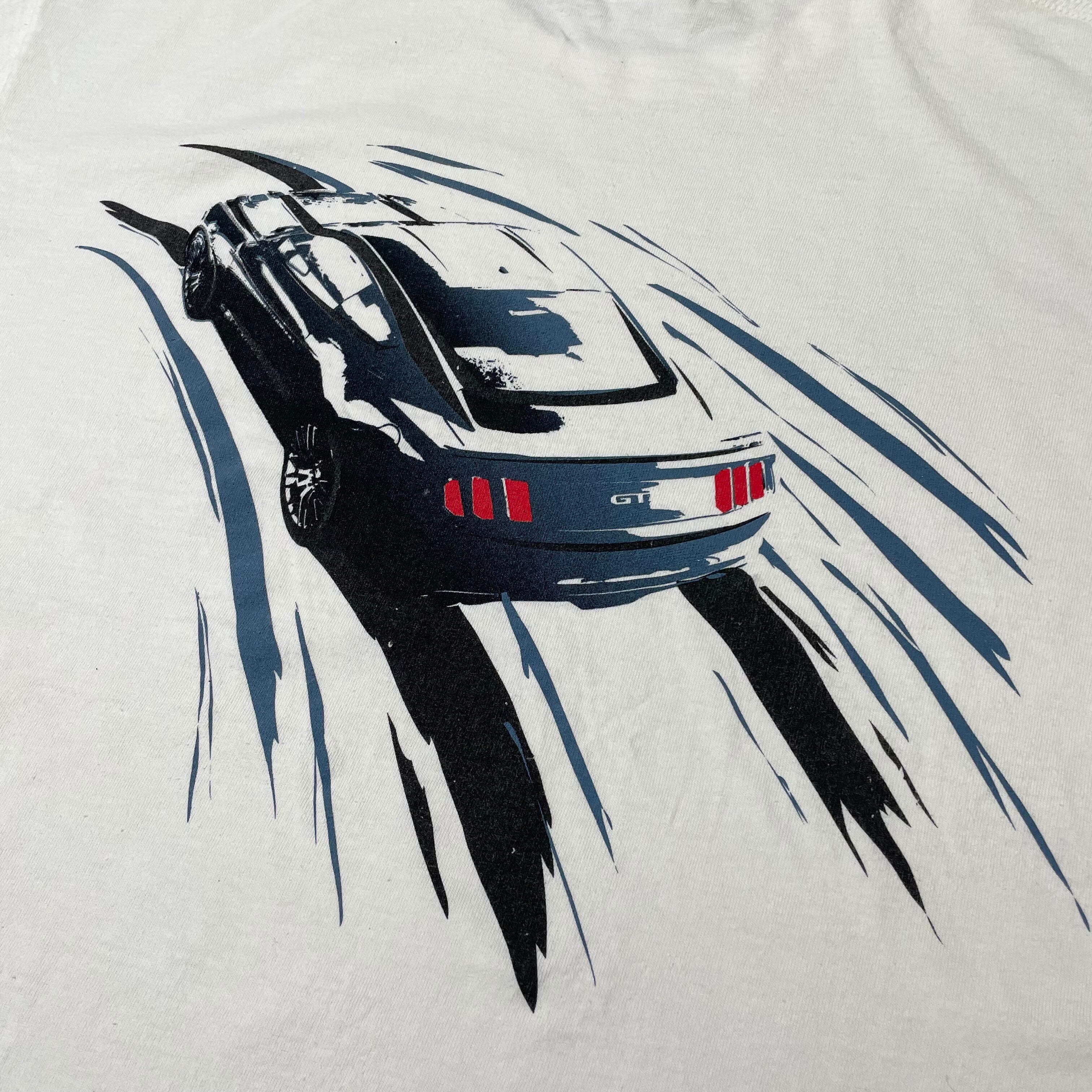 海外のストリートシーンでもジワジワと人気の出てきている車プリントTシャツ。ネクストヴィンテージに来るのではと個人的には思っております。今回はフォード社のマスタングのPR Tシャツ。前身頃の胸にはロゴ、バックにはスケッチタッチのマスタングがグラフィックがプリントされています。90〜2000前半のフルーツHEAVYボディで、シルエットバランス、生地が非常に優れた1着になっております。