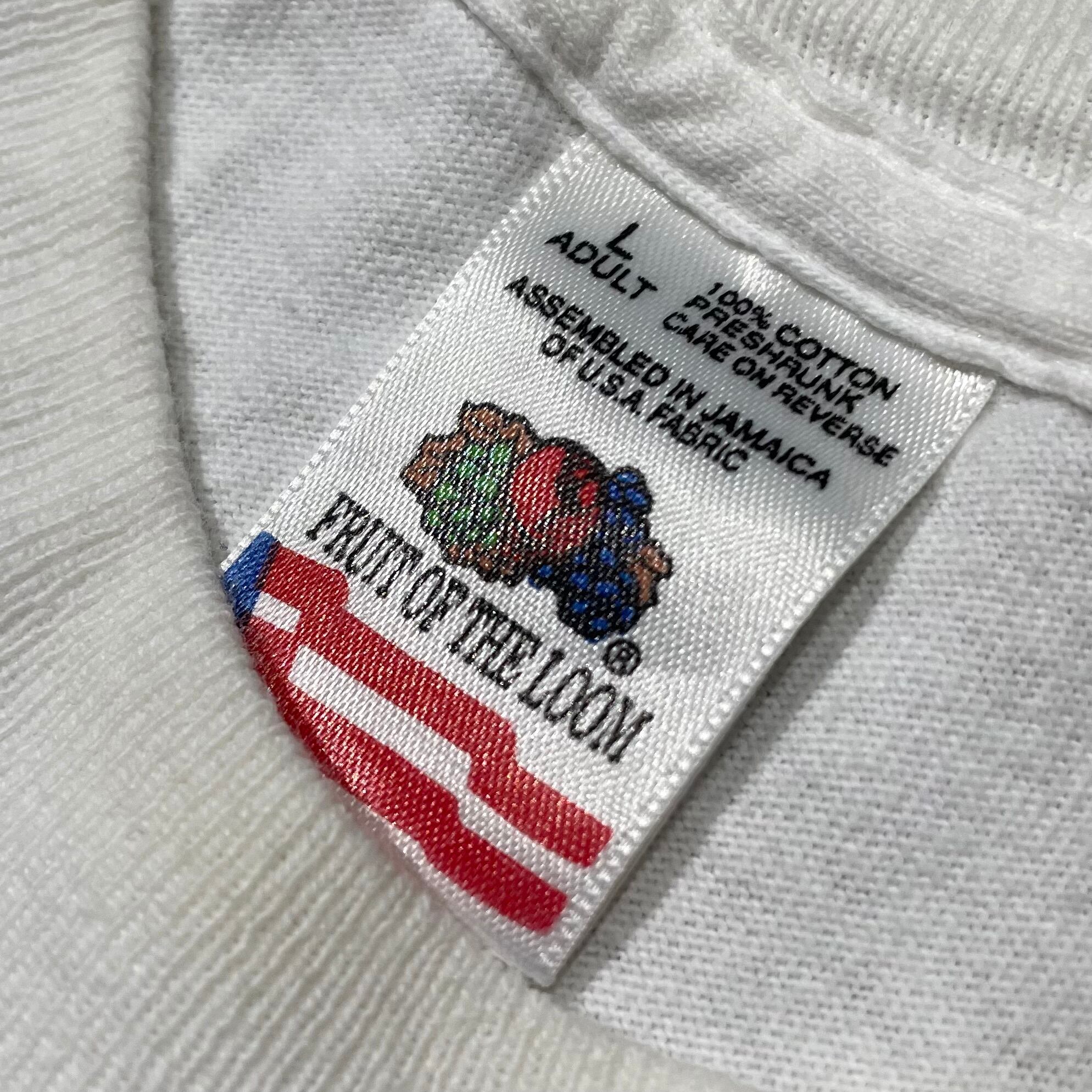 近年海外ストリートでも人気のある車プリントtシャツ。今回は1996年のコピーライト入りのポルシェフォトプリントが施された1着。胸の緑のワンポイントとノスタルジーはフォトプリントがたまらない1着。フルーツの90年代ボディで袖、裾はシングルステッチの風合い良いtシャツになっています。
