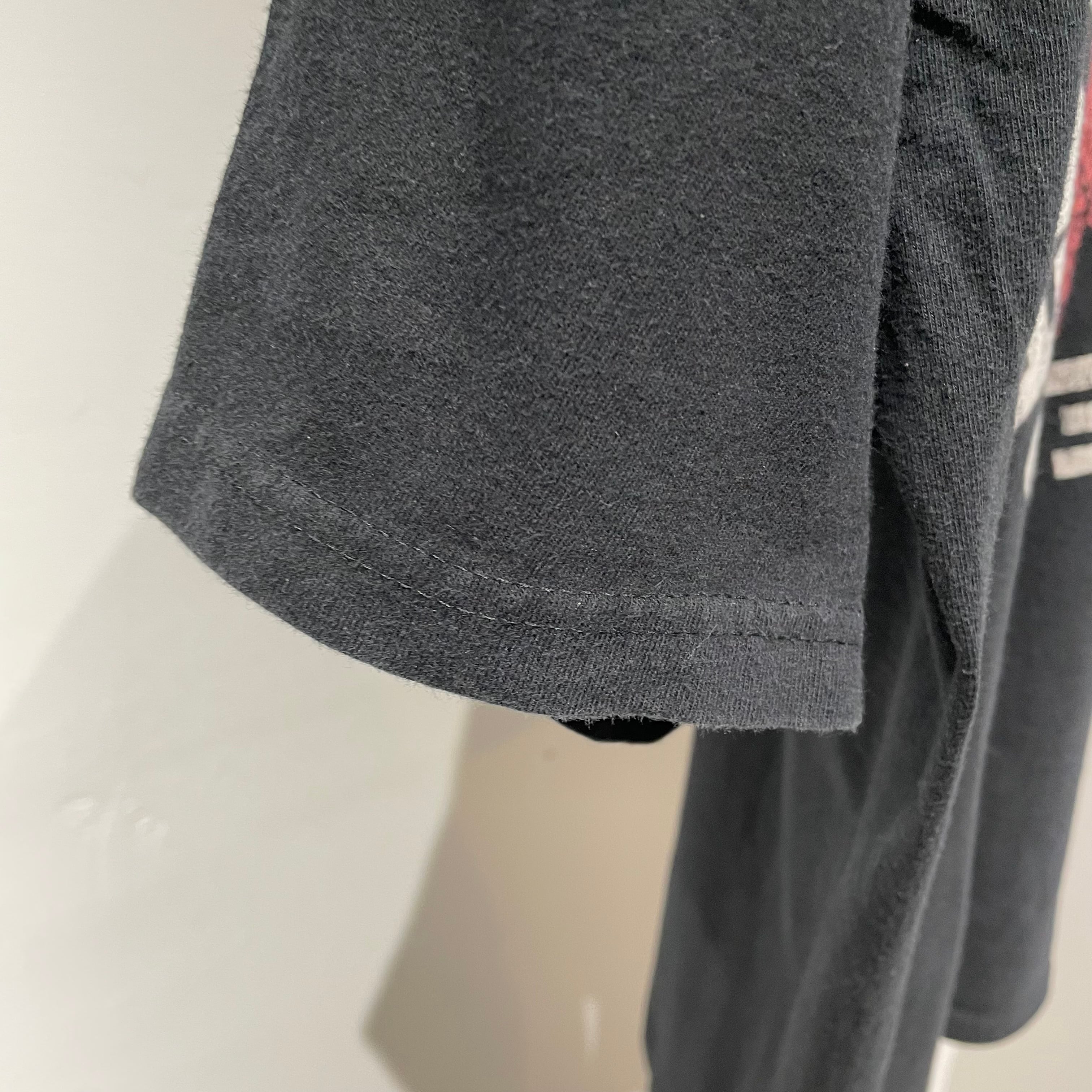今でも爆発的人気を誇るカルフォルニアのビッグバンド、レッドホットチリペッパーズのロゴtシャツ。ふわっと柔らかなボディと染み込みのプリントが雰囲気の良い1着。年代はわからないですが、それゆえに価格も安く出せています。レッチリtシャツ着たいけど高いと思っている方には大変おすすめの1着です。ジャストサイズでデニムと合わせたらおしゃれです。