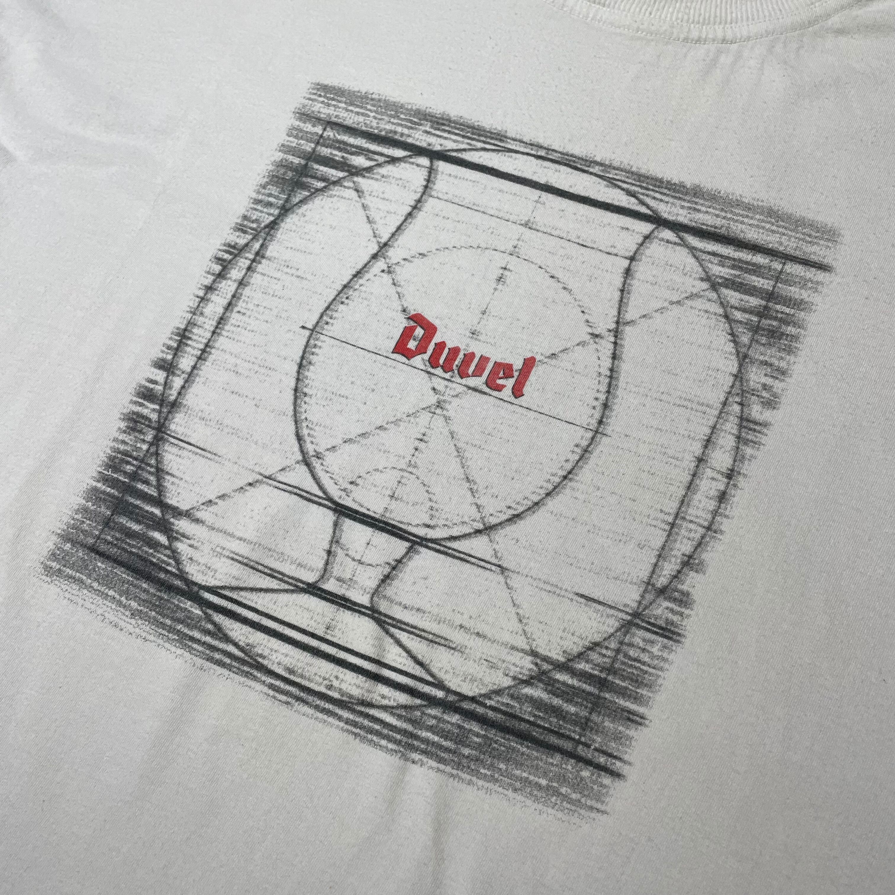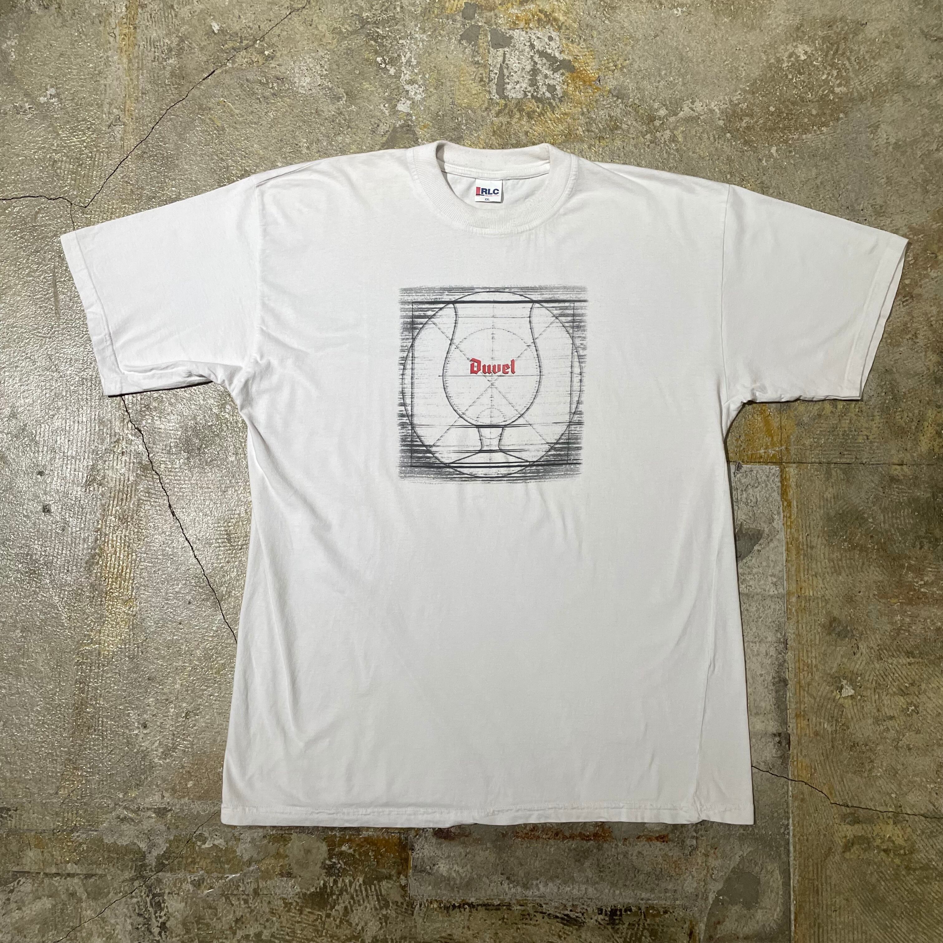 ベルギーのビールメーカーであるデュベルのプリントtシャツ。複雑な味わいと香りで、世界一魔性を秘めたビールと言われています。図形の様なグラフィックですが、よくみるとグラスが描かれています。赤いロゴもグッと来ます。アート感が強く、アメリカ古着とはまた違う雰囲気のTシャツになっています。人気の高まっている企業tシャツをこの機会にぜひ。