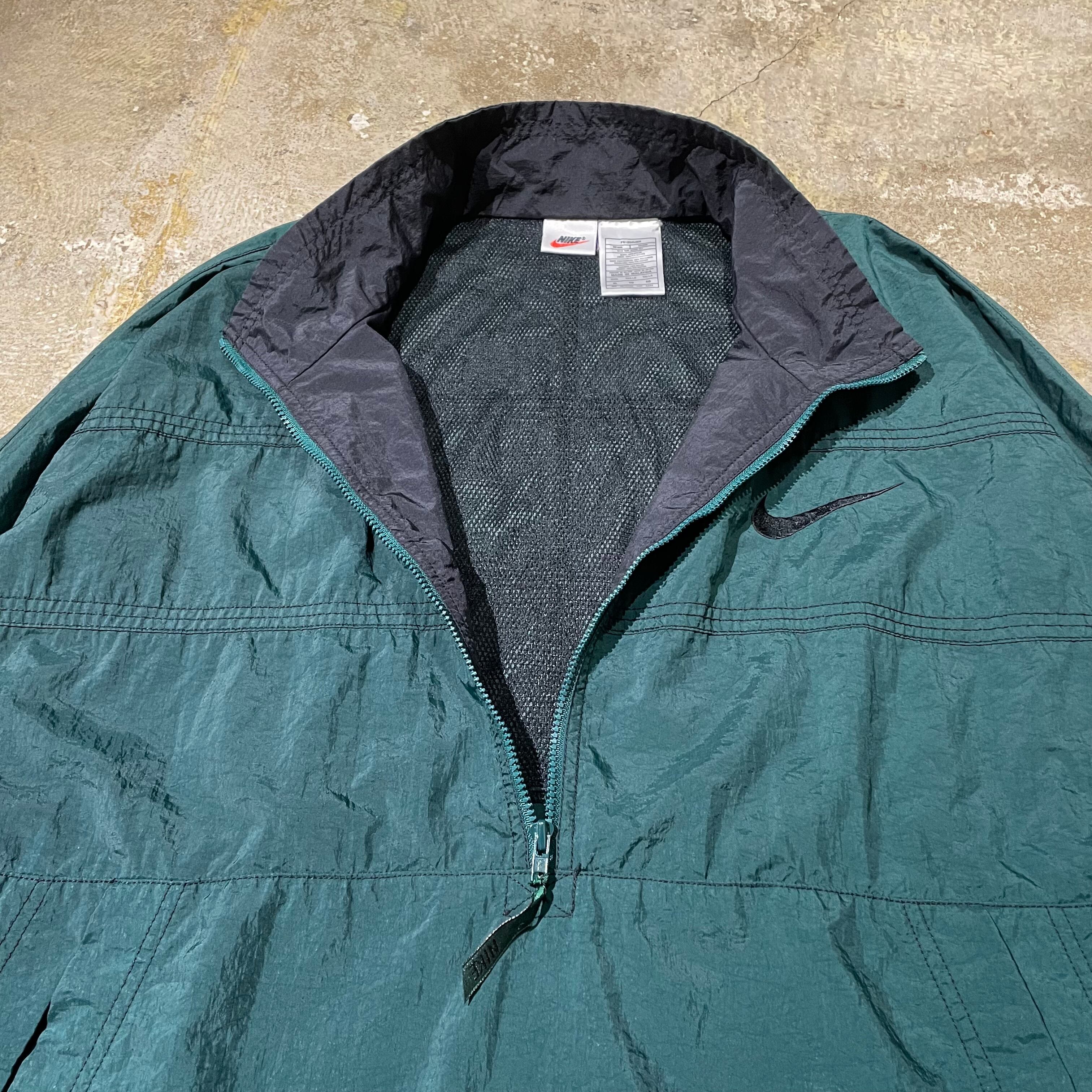 90年代NIKEのプルオーバーブルゾン。ゆったりしたサイズ感で裾をギュンと絞りながらTシャツを出すレイヤードスタイルの提案アイテム。肩幅のない変形パターンでNIKEならではの面白い切り替え。絶妙なグリーンカラーがレトロでありながらも流行カラーでテックトレンドを掴んでるアイテム。胸の大きめなスウォッシュが90年代らしく個人的にツボです。秋に重宝できるヴィンテージプルオーバーアウターをこの機会にぜひ。