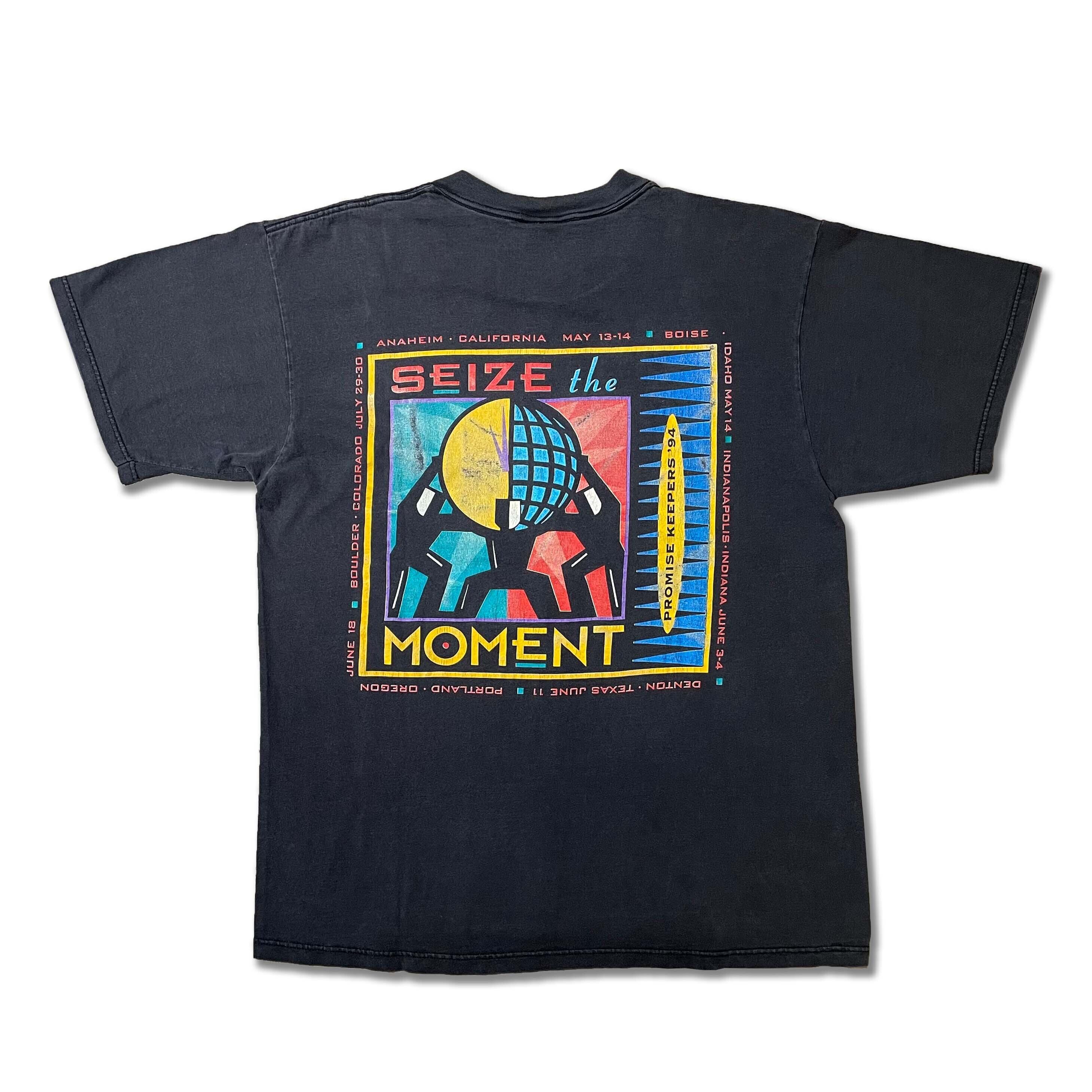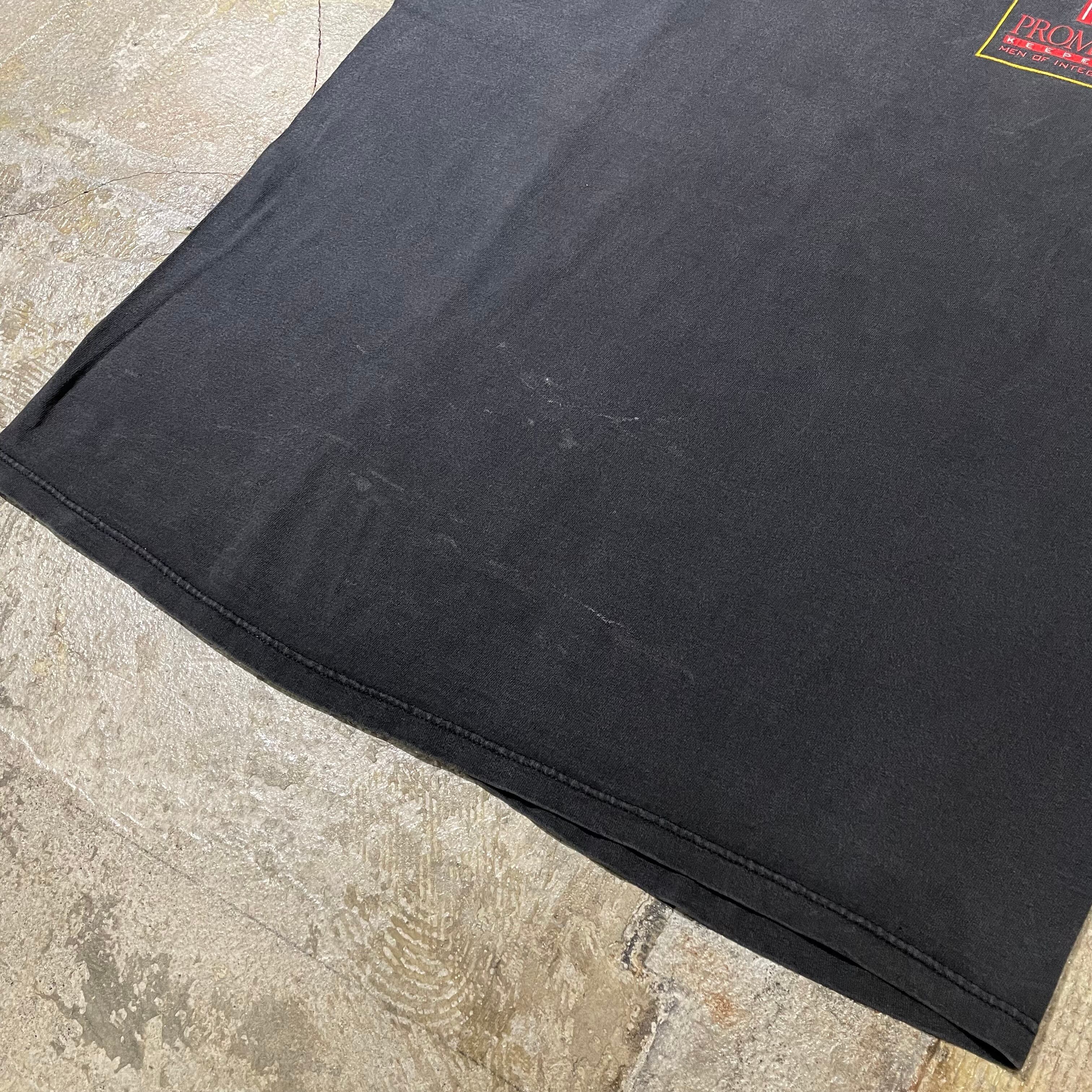 アメリカの団体であるPROMISE KEEPERS MEN OF INPEGRITYの90s Tシャツ。家族においての男性の尊厳を守る団体?のようです。どこかアメリカのカルチャーを感じさせます。胸にはロゴグラフィック、バックにはアート感のあるプリントでノスタルジーなプリントが目を引く1着。程よく色褪せたブラックボディと相まって古着ならではの面白い1着になっています。