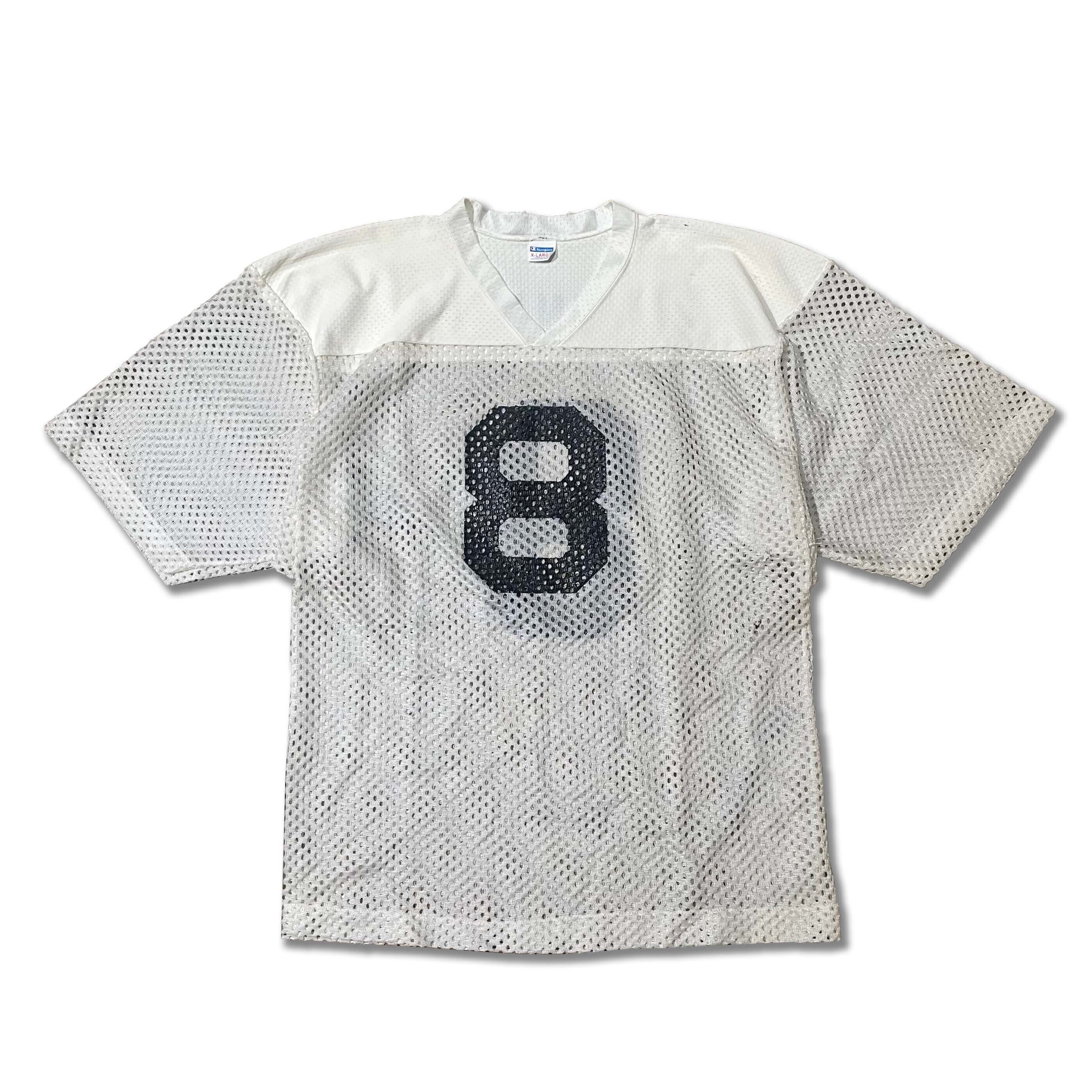 70年代のチャンピオンフットボールTシャツ。白ボディに黒プリントで着やすいデザイン。インナーにTシャツを着てレイヤードコーディネートとして楽しめる1着。70年代ビンテージ男性、女性問わずに楽しく着こなせるアイテムです。