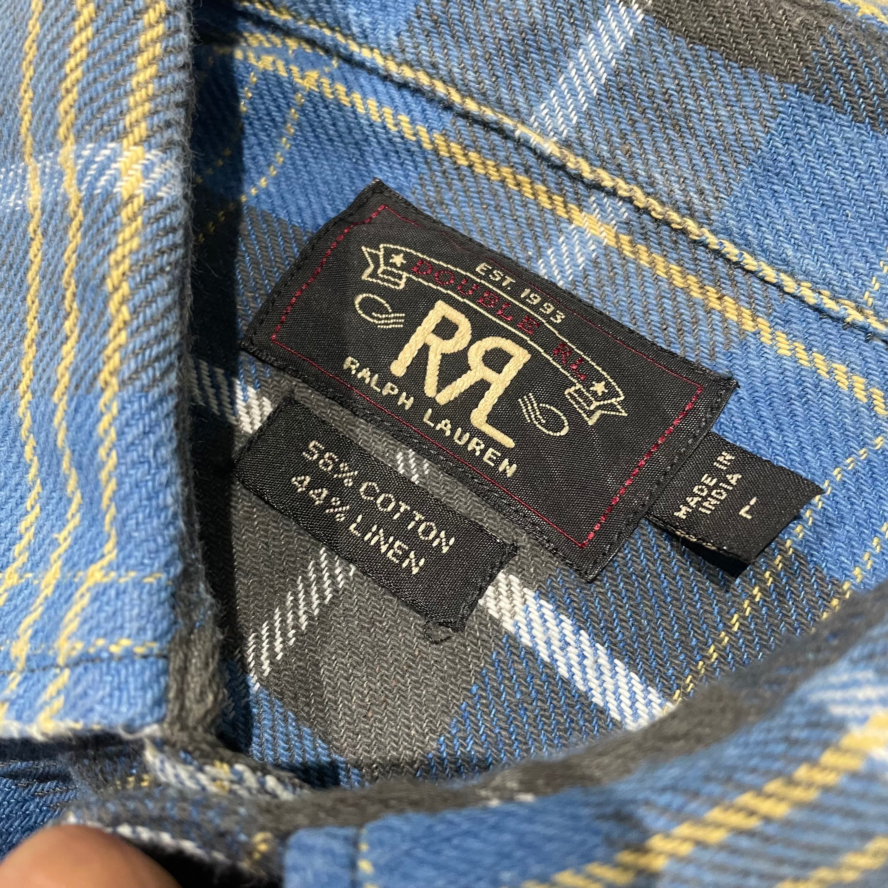 ラルフローレンの最高級ラインであるRRLのチェックネルシャツ。ネイビー、イエローチェックの王道柄。生地はコットンとリネンでざっくりと織られておりヴィンテージな様な肌触りでありながら、品のある大人なチェックシャツ。ボタンや縫製一つ一つにこだわりある1着をこの機会にいかがでしょうか