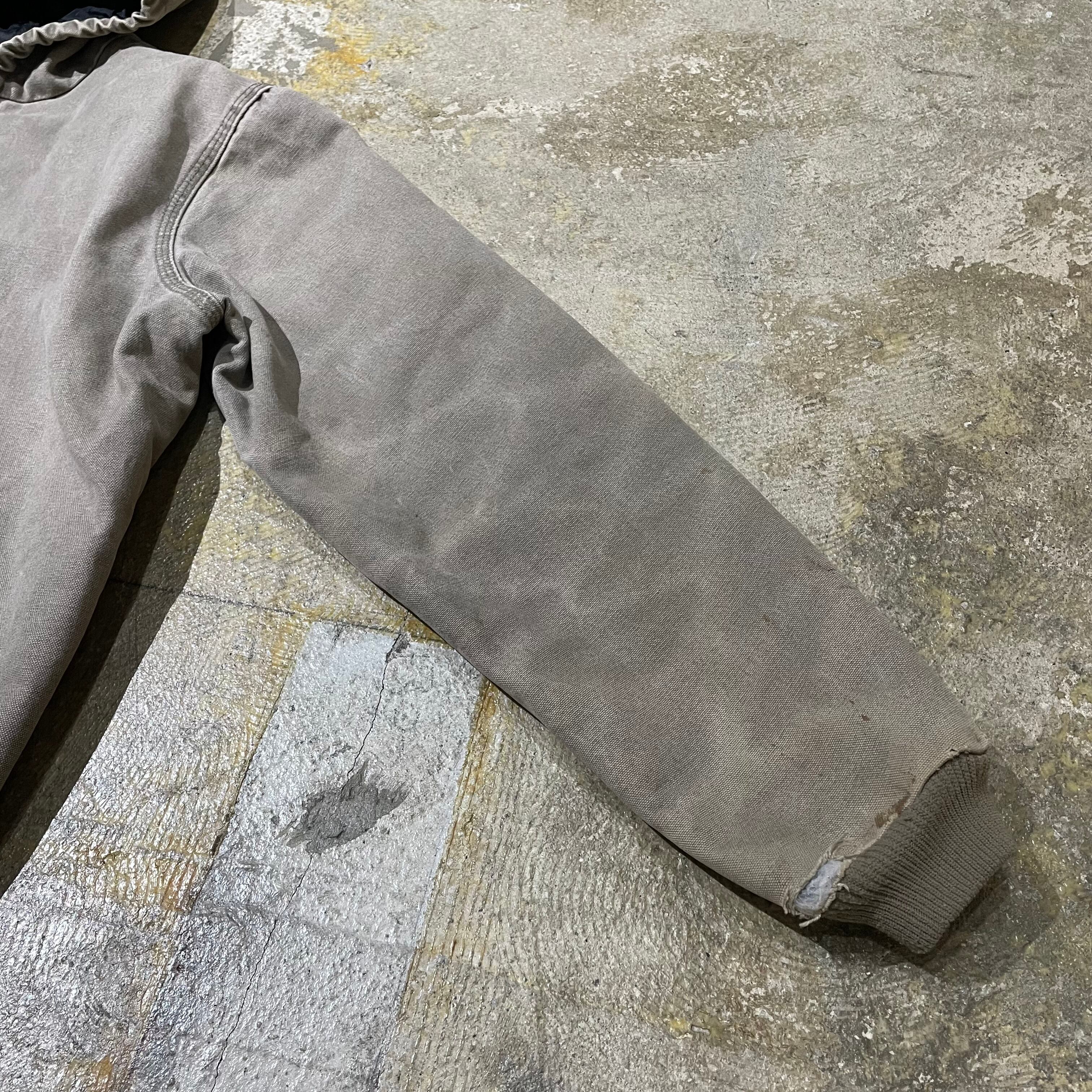 今年のトレンドで多くのハイブランドがサンプリングしているカーハート。メキシコ製のアクティブパーカー。こちらはおそらくキッズサイズのXLですが、着丈が短く今のトレンドに近いバランス。ヨコのサイズ感はしっかりと確保されています。ワイドなパンツにTシャツを少し出してレイヤードとしてスタイリングを提案したいアイテム。海外のストリートスナップなどで見るルックを作れるアイテムになっています。袖のハチノスや全体的なフェード感も良く古着だから出せる雰囲気を持った1着になっています。
