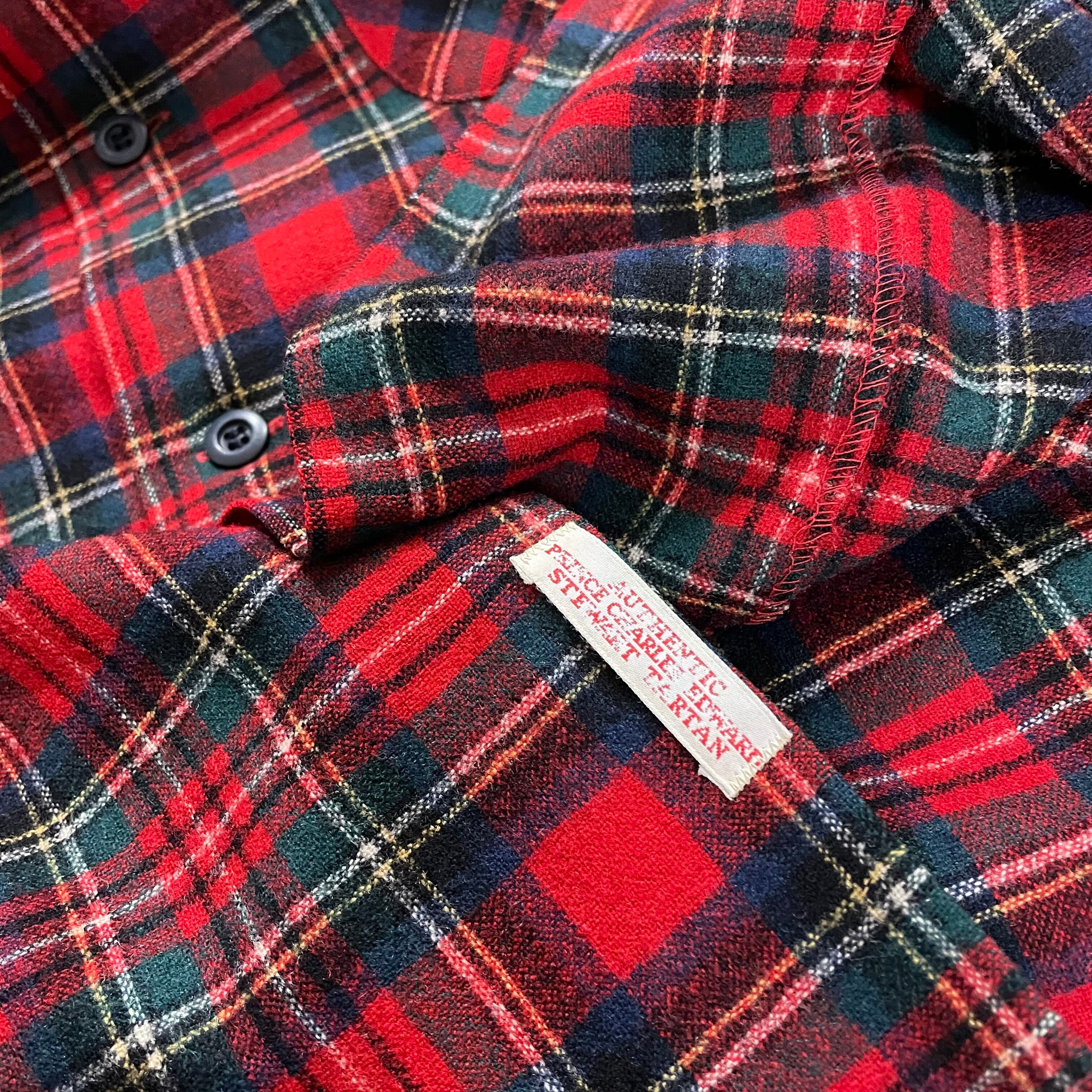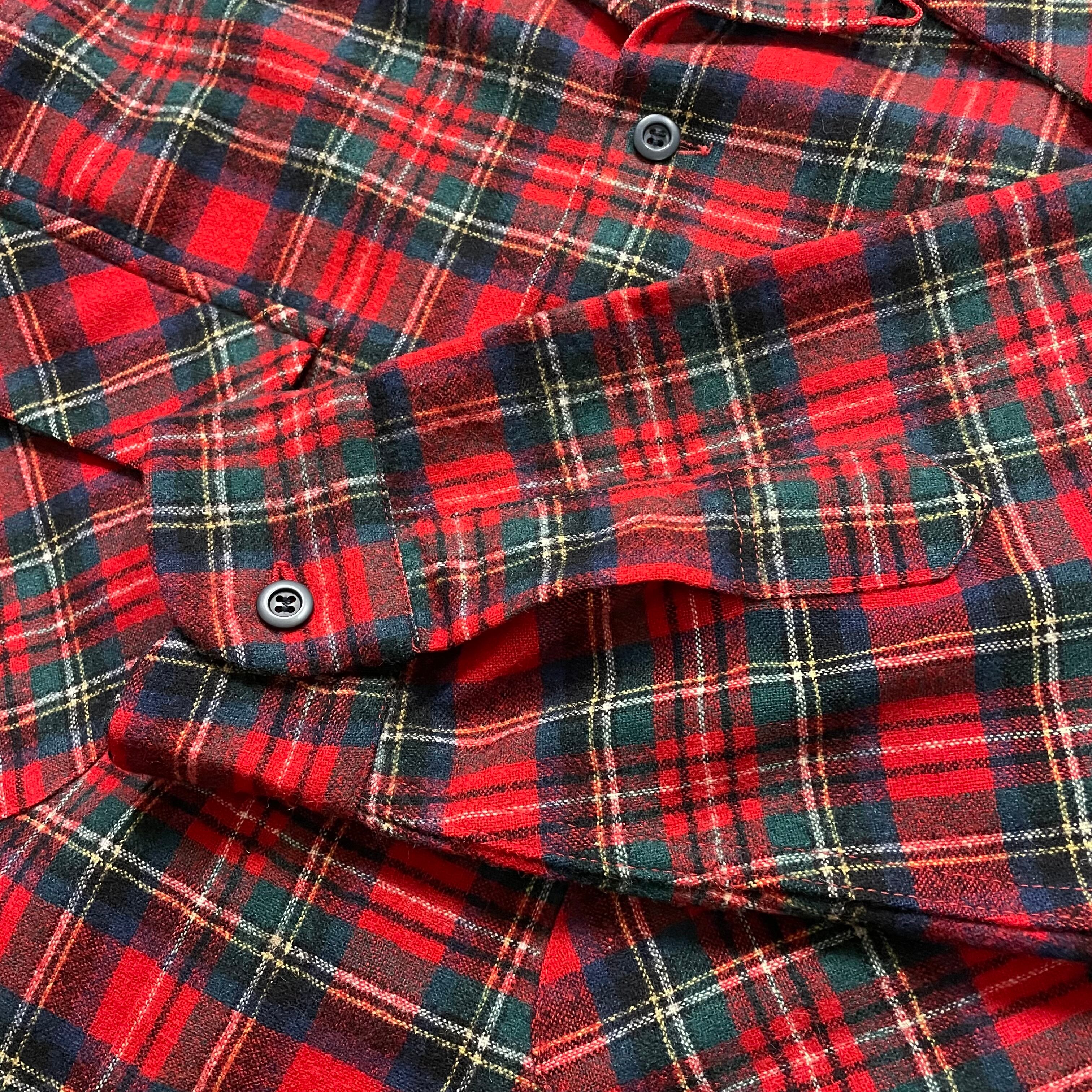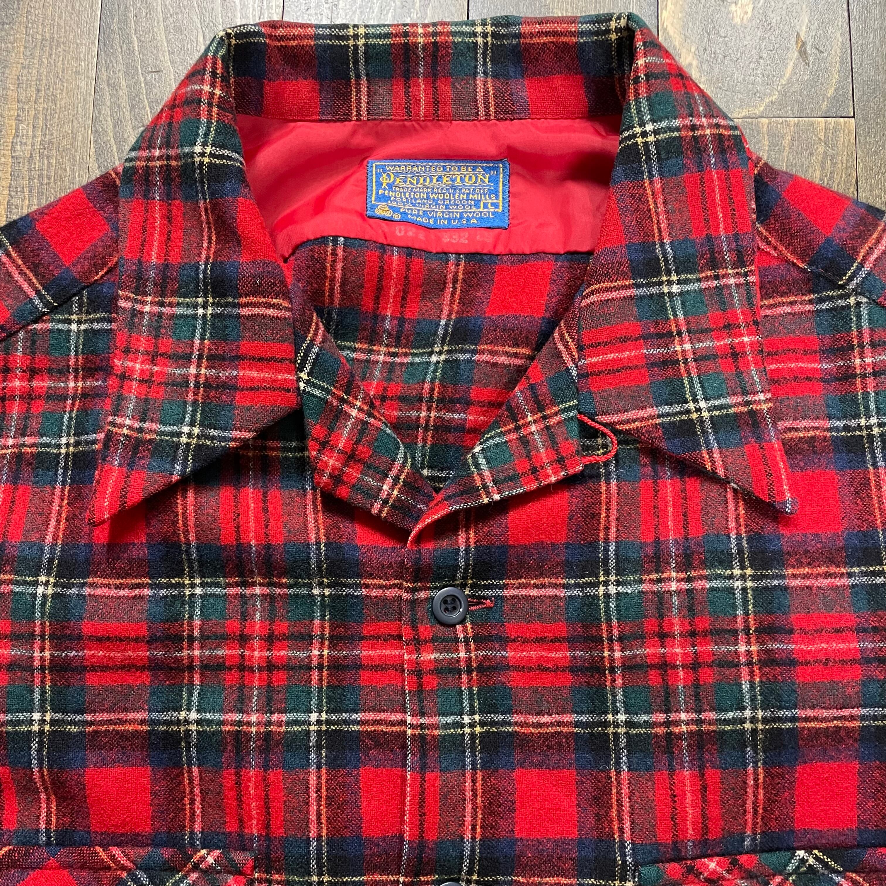 ウールのチェックシャツといえばペンドルトンではないでしょうか。1920年代から続く伝統的なブランド。近年ではモードブランドとも多くコラボしていおり唯一無二のペンドルトン。今回は80年代の定番ボートシャツ。ベーシックでありながら最も愛されているモデルです。しっかりとしたウール素材でありながら、柔らかく着やすいのが特徴的な生地。今回は赤ベースにグリーン、ブルーの差し色の入った秀逸なチェック柄。フロントに小さい穴が見られますが、全体的に状態は良く、また縮みの見られない1着。ゆったりとしたサイズ感も球数が少なくなっているアイテムです。こんな機会にぜひ。