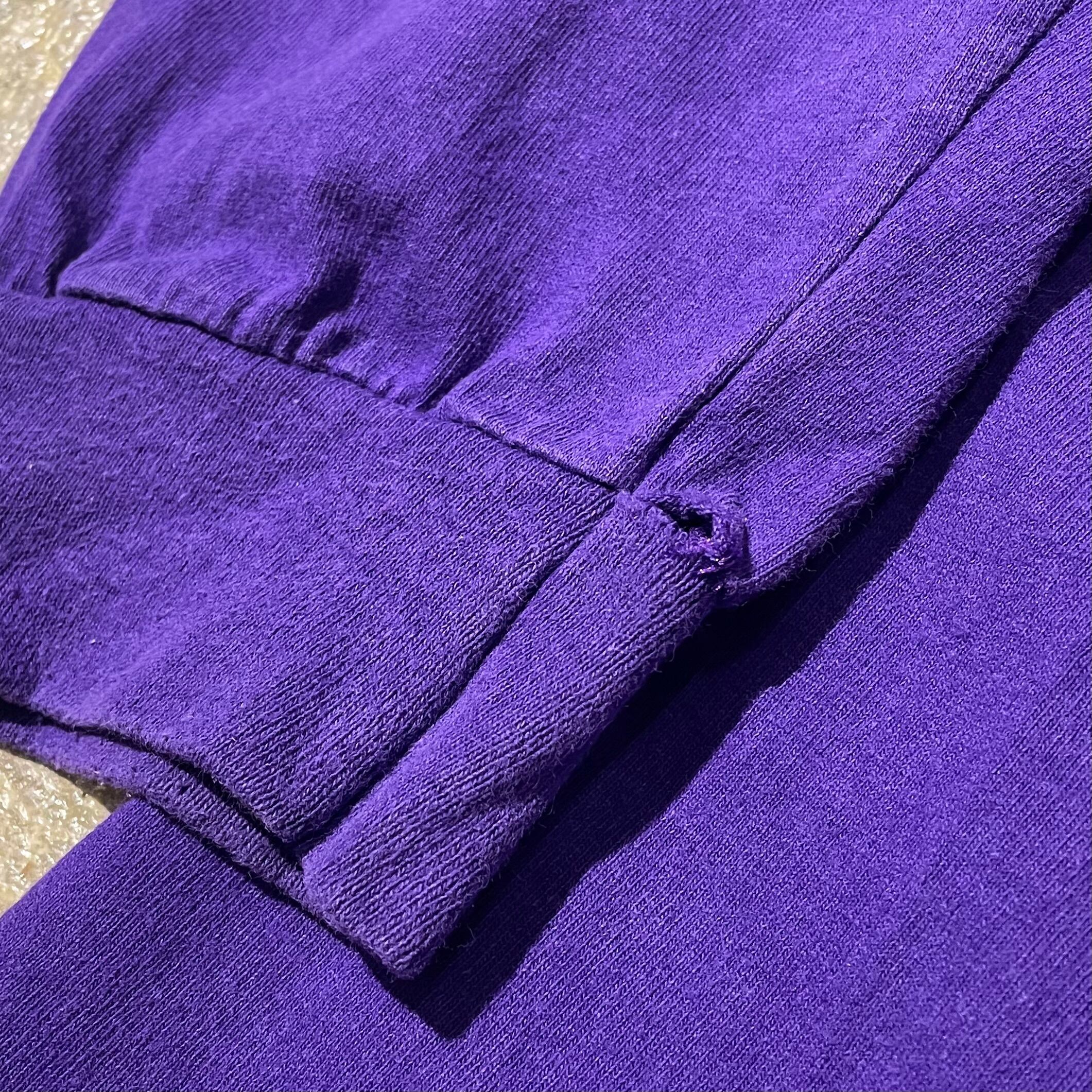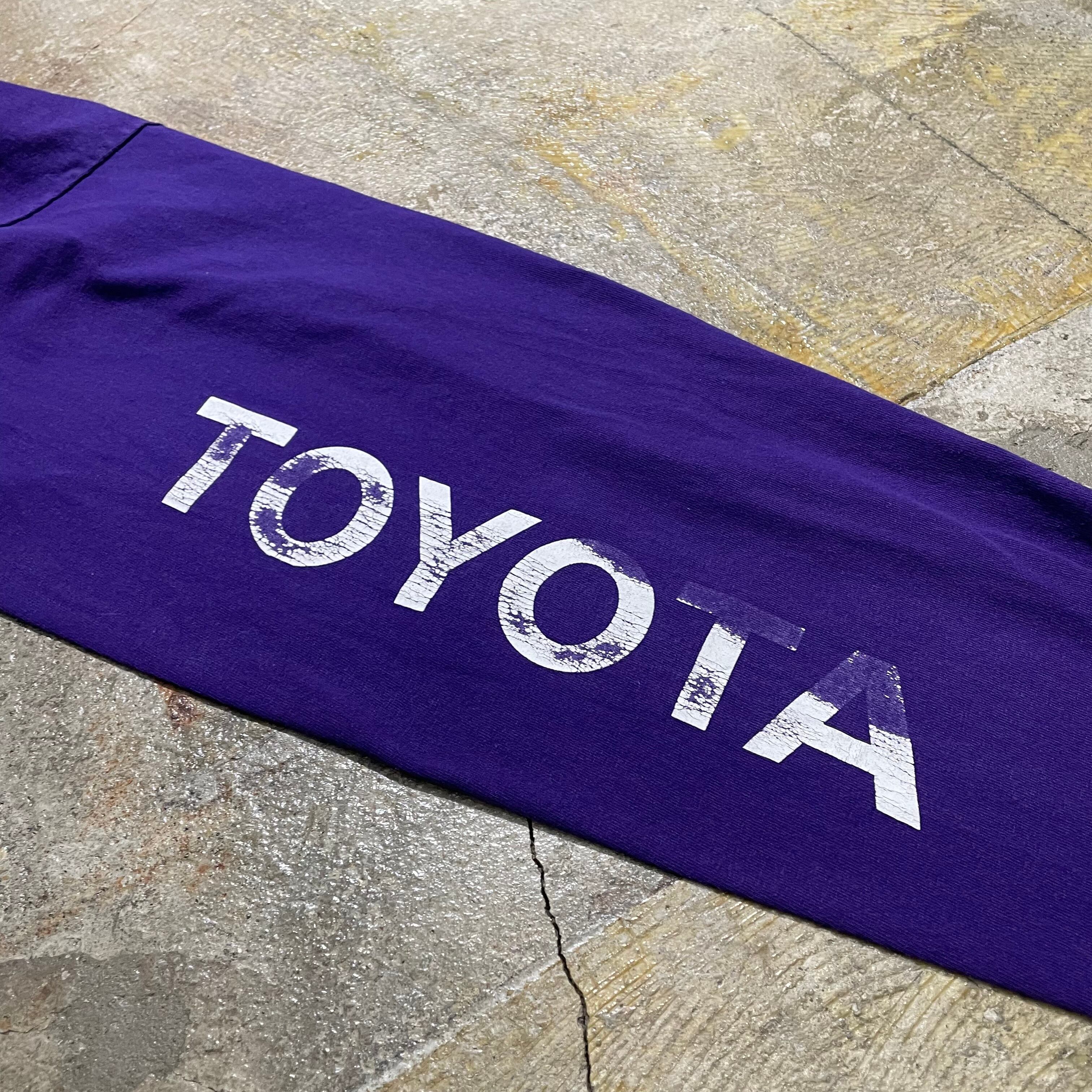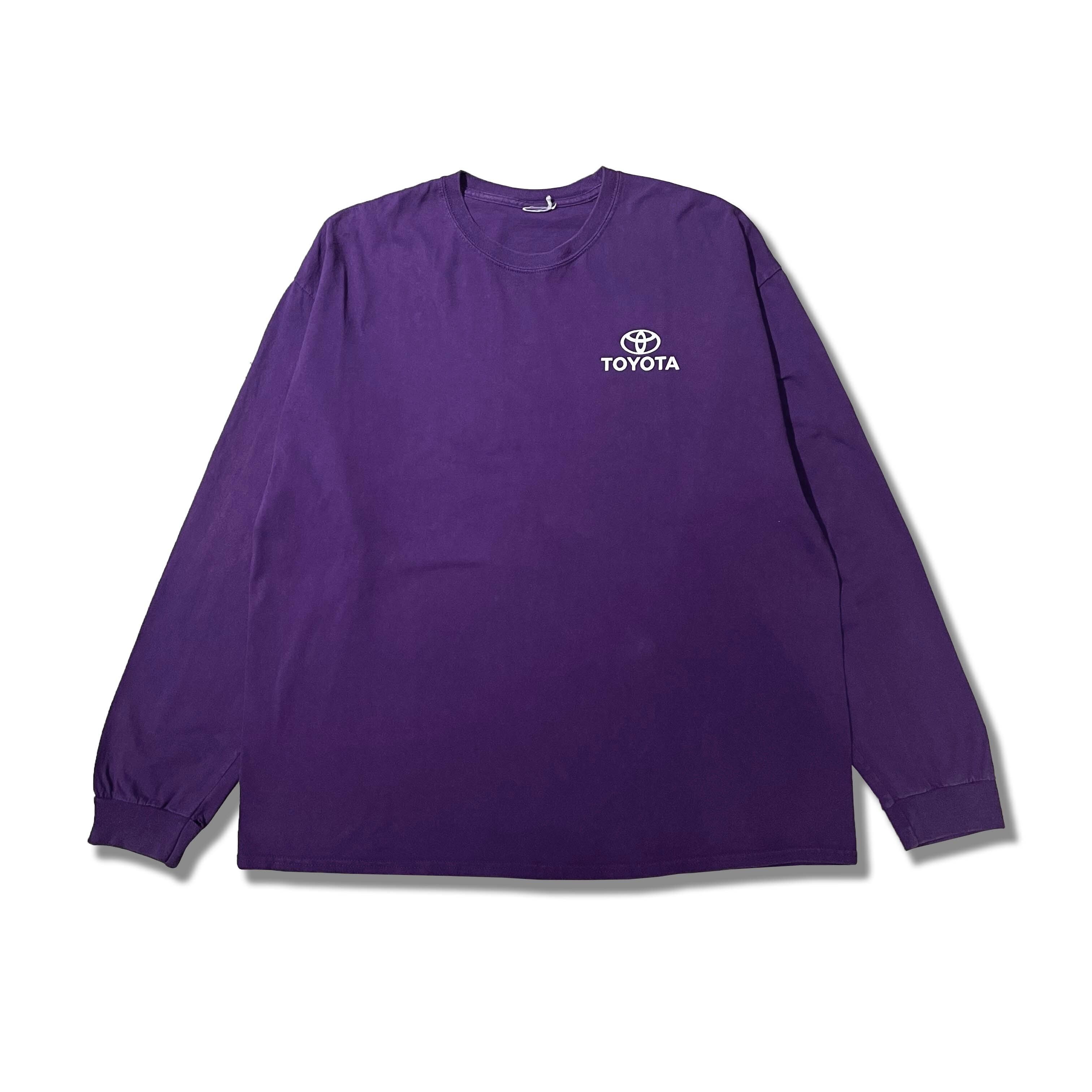 日本が世界に誇る自動車メーカーTOYOTAのロングスリーブTシャツ。胸と左袖にロゴがプリントされています。目を魅くパープルカラーのボディと掠れたプリントの相性の良い1着。おそらく00年前半のボディかと思います。肌寒くなった今頃ちょうど良いロンTです。この機会にぜひ。
