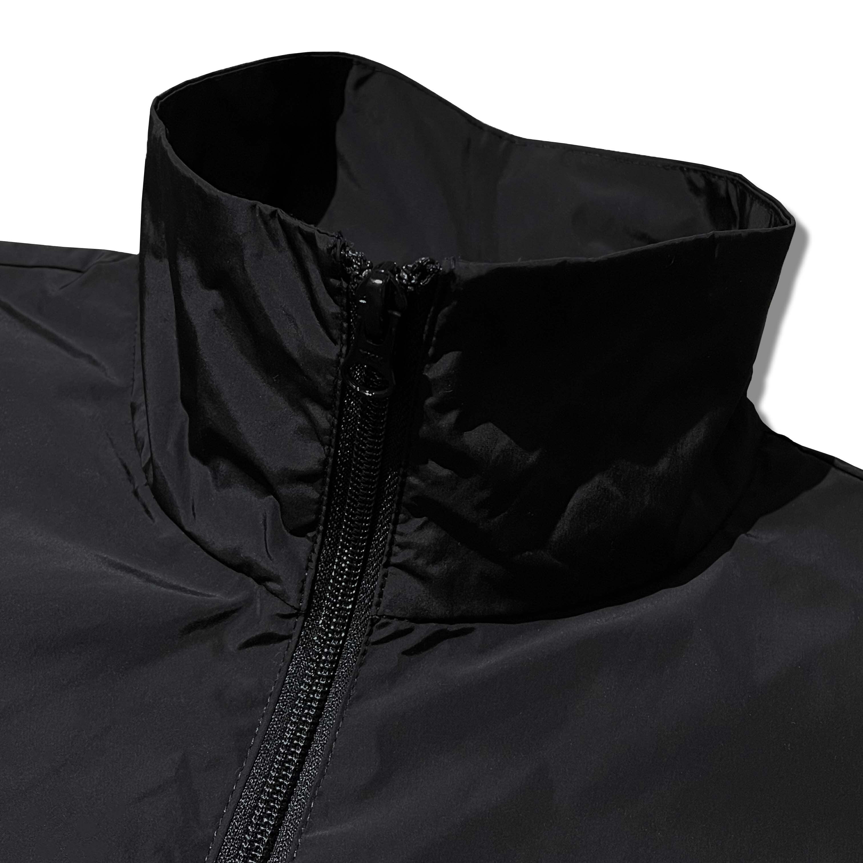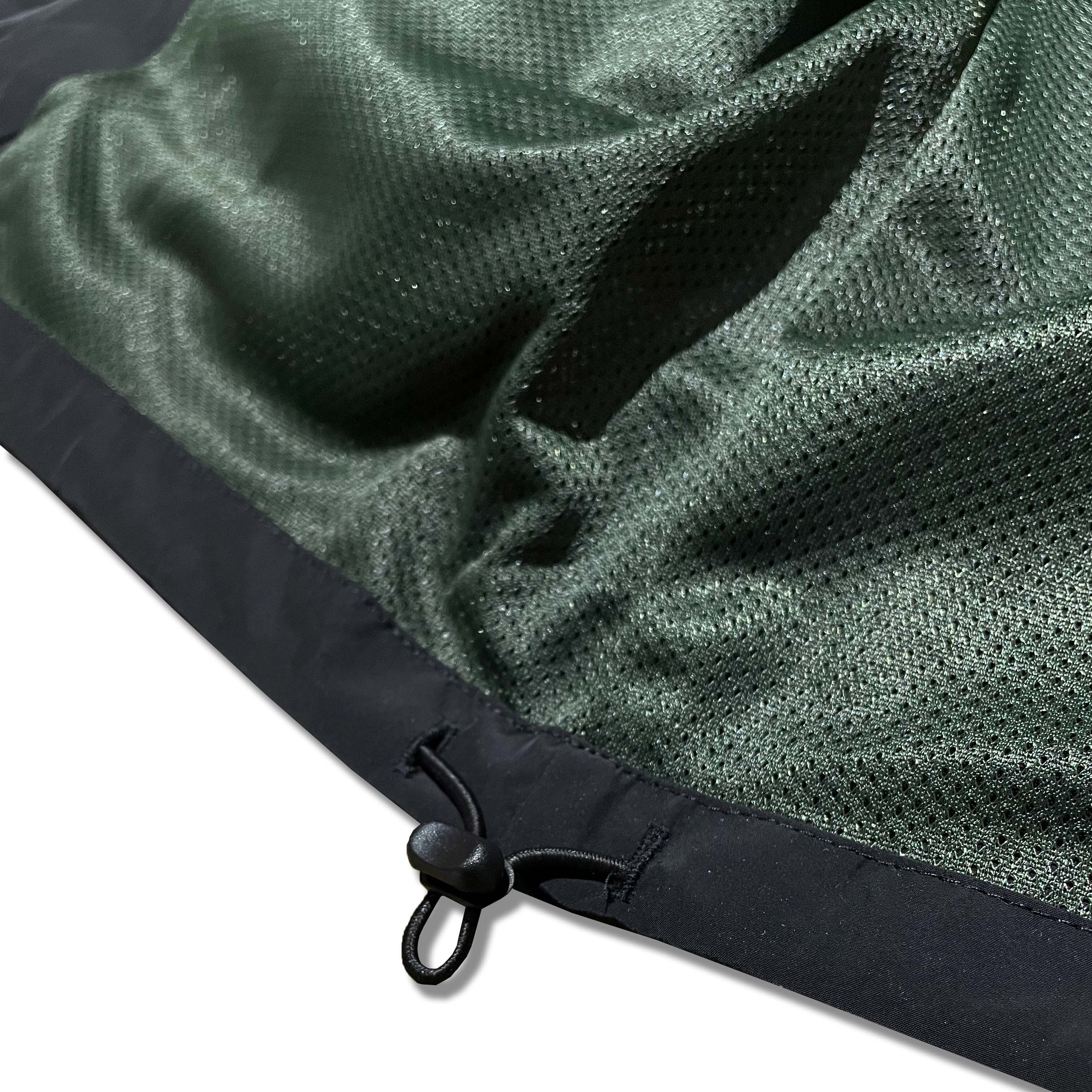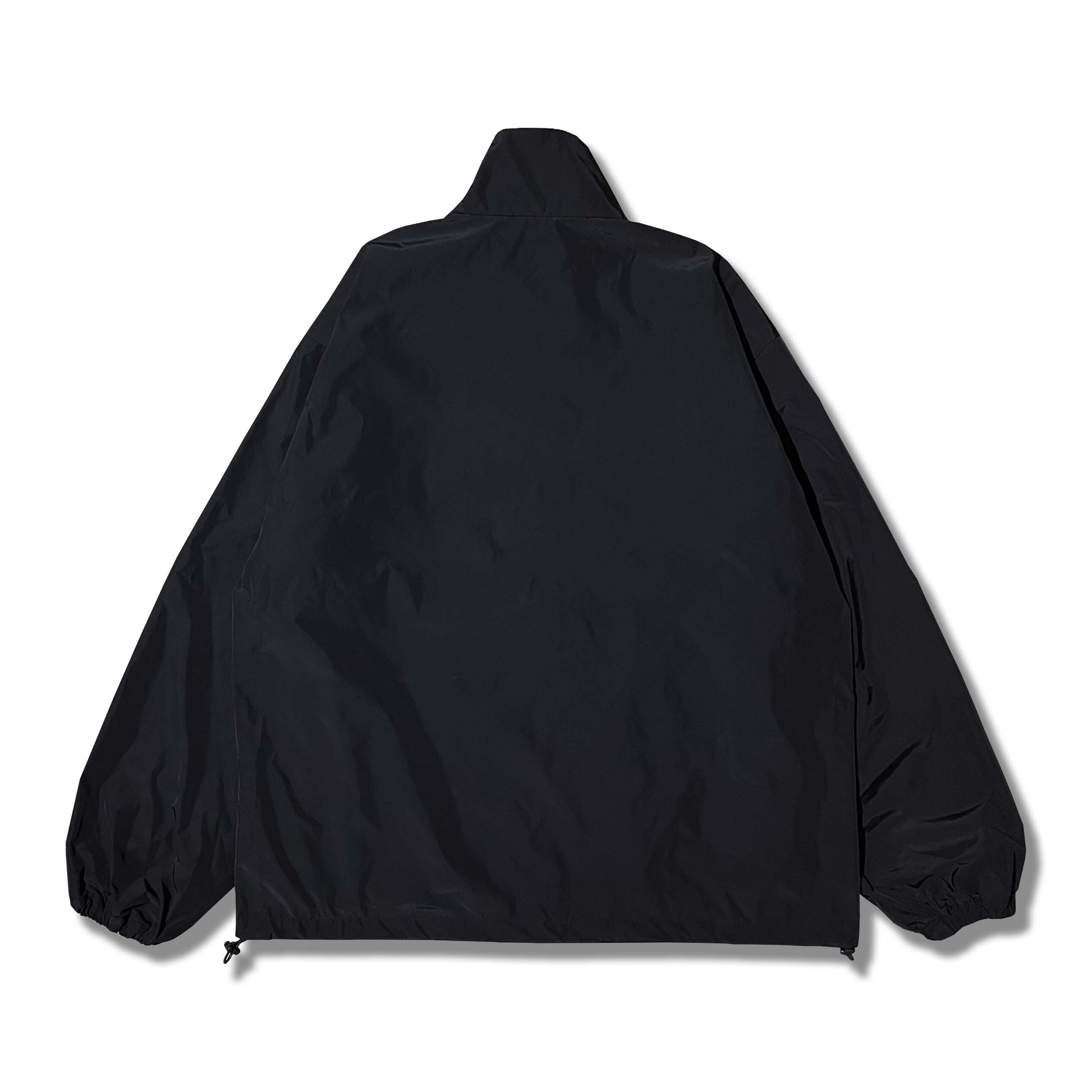 ハリがありながらもウエットな肌触りで高級感のあるナイロン生地を採用。撥水性のある機能素材で雨の日も着用しやすく汎用性の高いアイテム。程よくゆったりとしたサイズ感であえて袖に溜まりができるトレンドを意識したシルエット。裾はゴムスピンドル仕様で絞りを効かせる事で自分好みのシルエットを作れる。フロントは上下開閉可能な逆開ファスナーでよりスポーティなデザインを追加。ナイロン素材でよくある肌にまとわりつく事がないよう、メッシュの裏地を使用。カーキカラー配色でデザイン性を持たせている。左胸にブランドネームが刺繍されており大人っぽくもアイデンティティを感じる1着。セットアップではもちろん単体としても楽しめるディーテール、生地、こだわりの詰まったアイテムになっている。