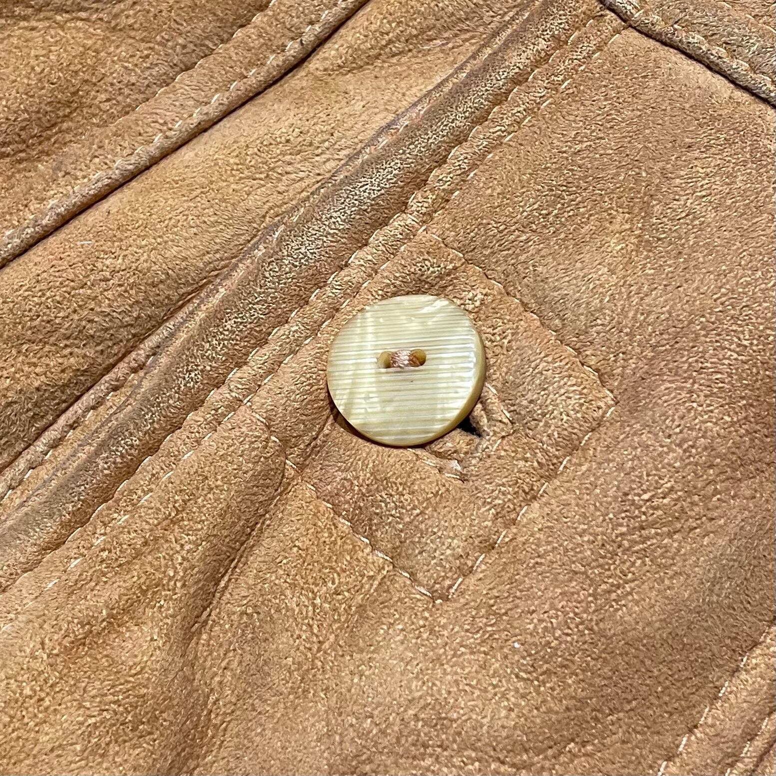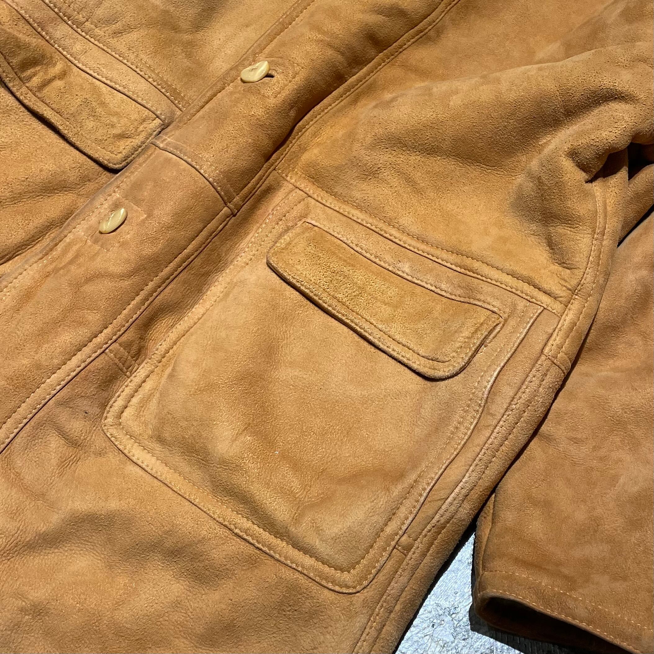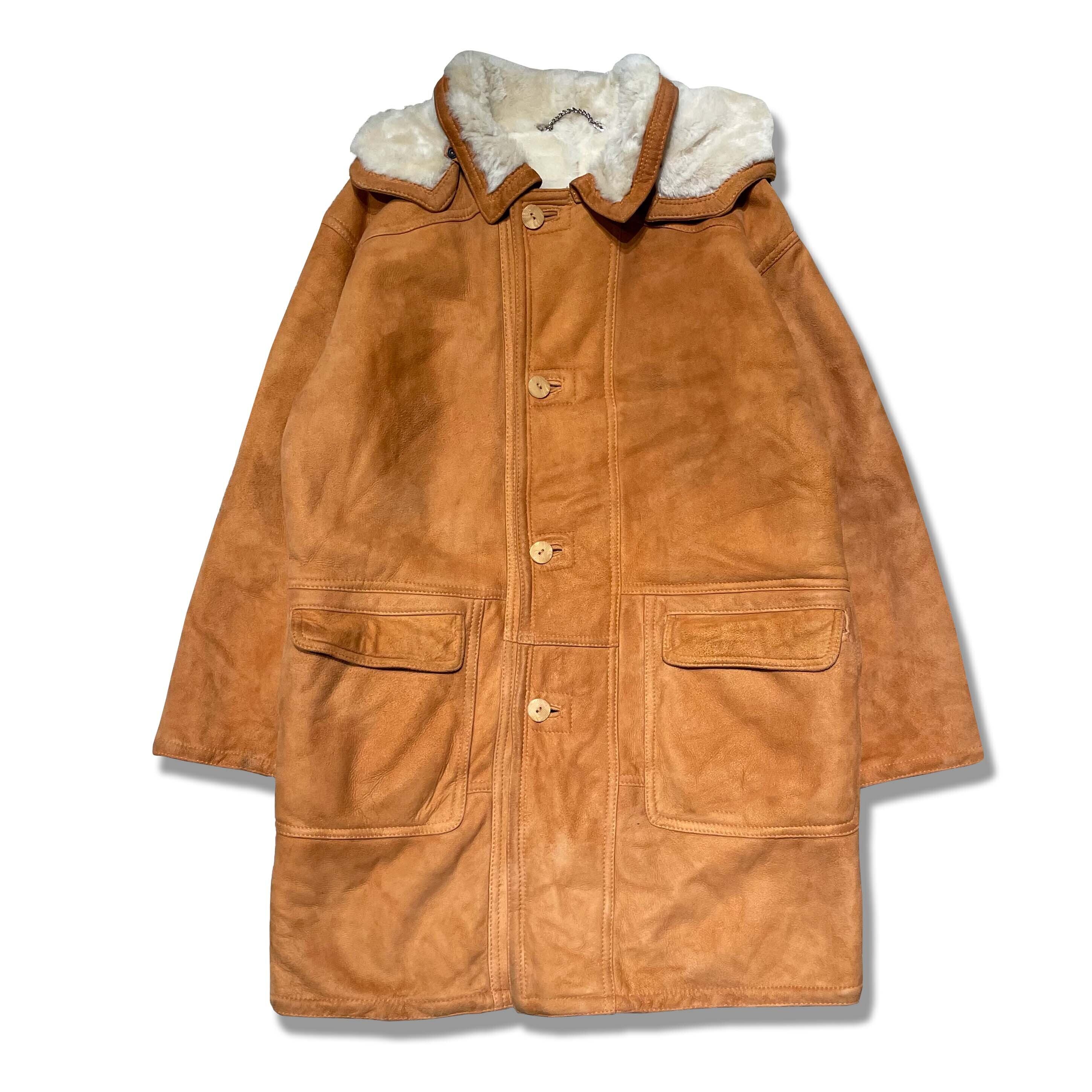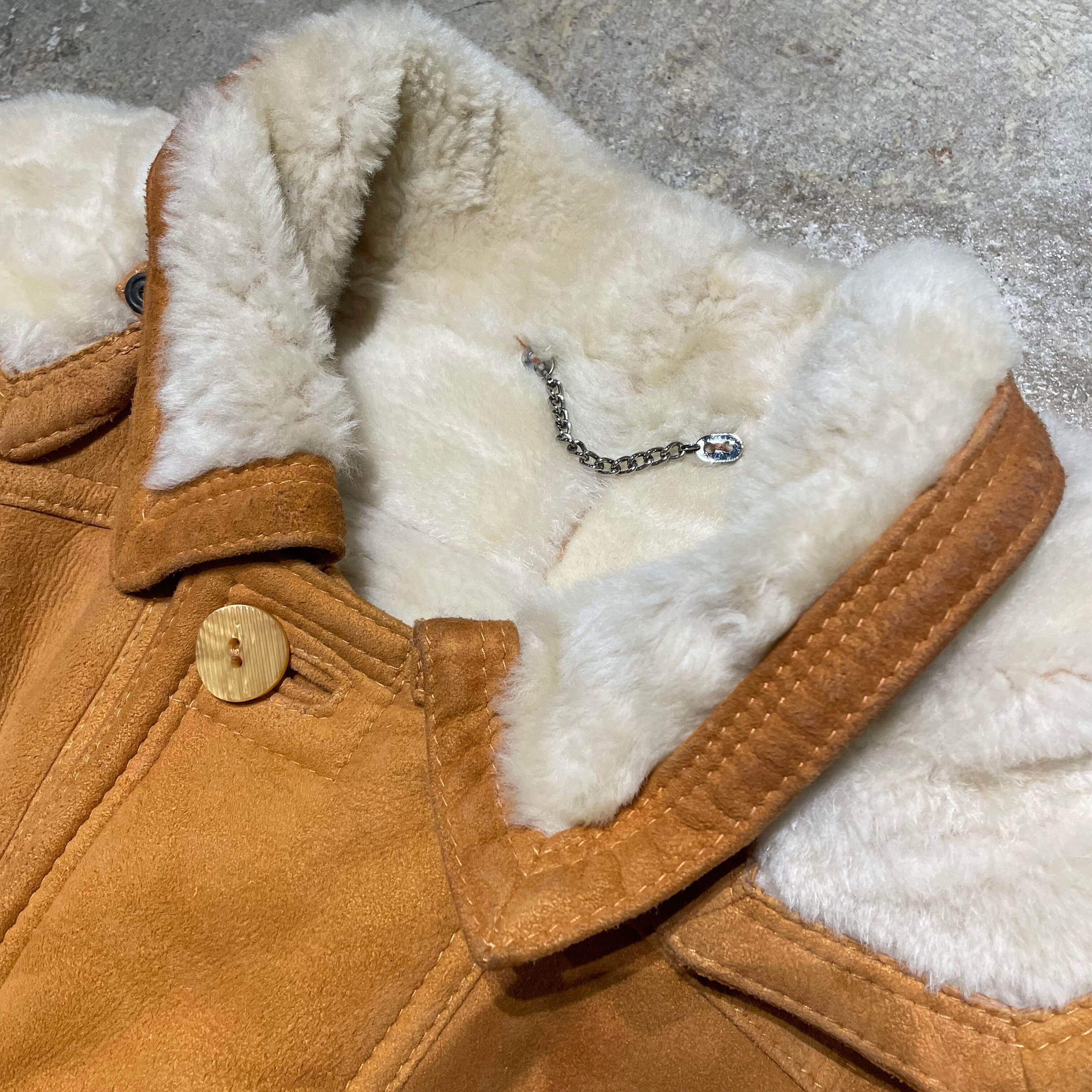イタリア製のヌバックムートンレザーを使用したコート。しなやかで柔らかく、肌触りの良い高品質の1着。ヴィンテージで70〜80sのものになりますが裏面も綺麗な状態です。鮮やかなライトブラウンで重く見られがちなムートンですが、軽い印象を与えます。合わせやすいカラーリングで着やすいムートンコートになります。