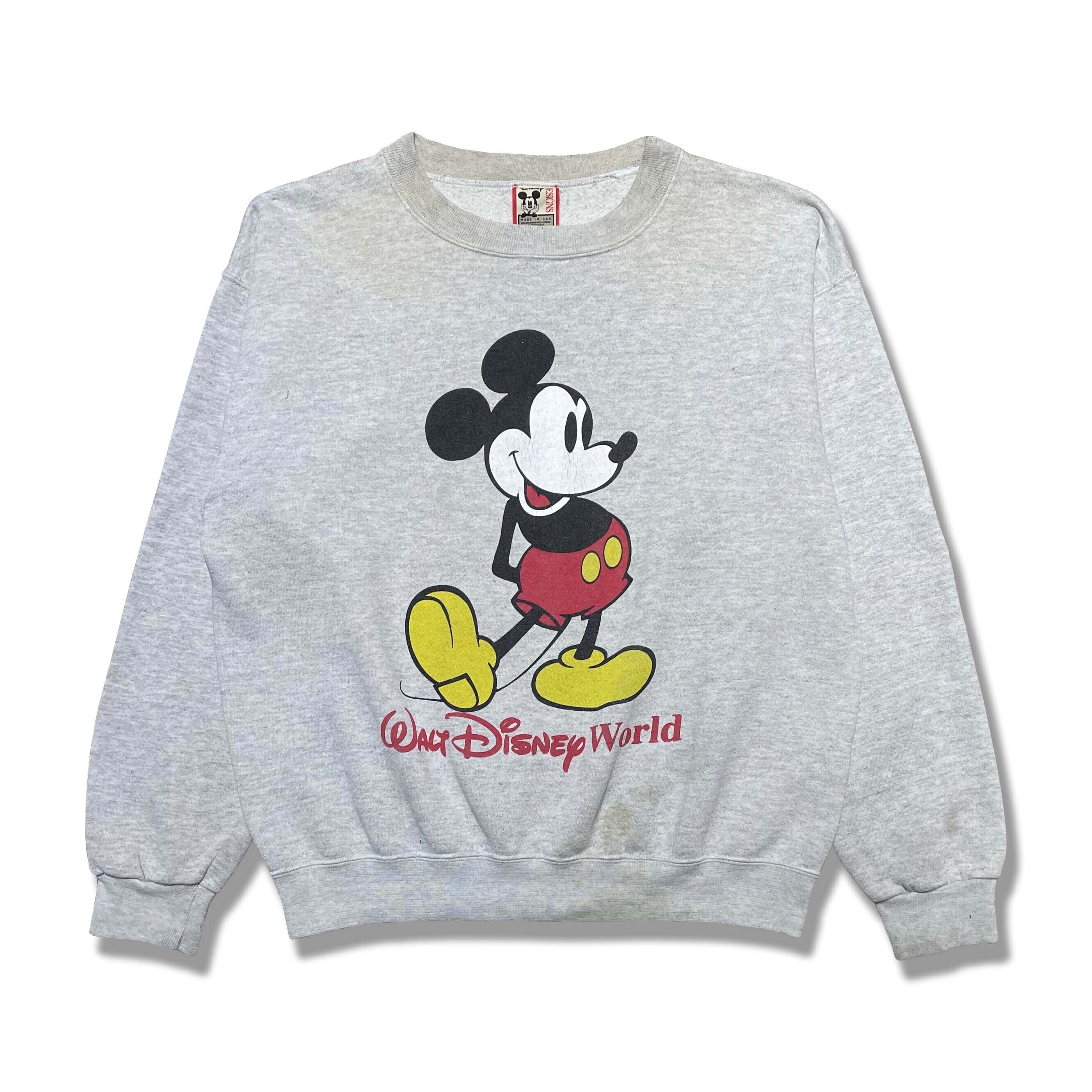 ディズニーの象徴であるキャラクターミッキーマウスがプリントされたグラフィックスウェット。80年代に作られた1着。状態は汚れ等ありますが、ヴィンテージの雰囲気抜群です。綺麗なキャラクタートレーナーより着やすいアイテムになっています。身幅が広く、着丈が短めでトレンドなシルエットになっています。ボロミッキートレーナーおすすめです。