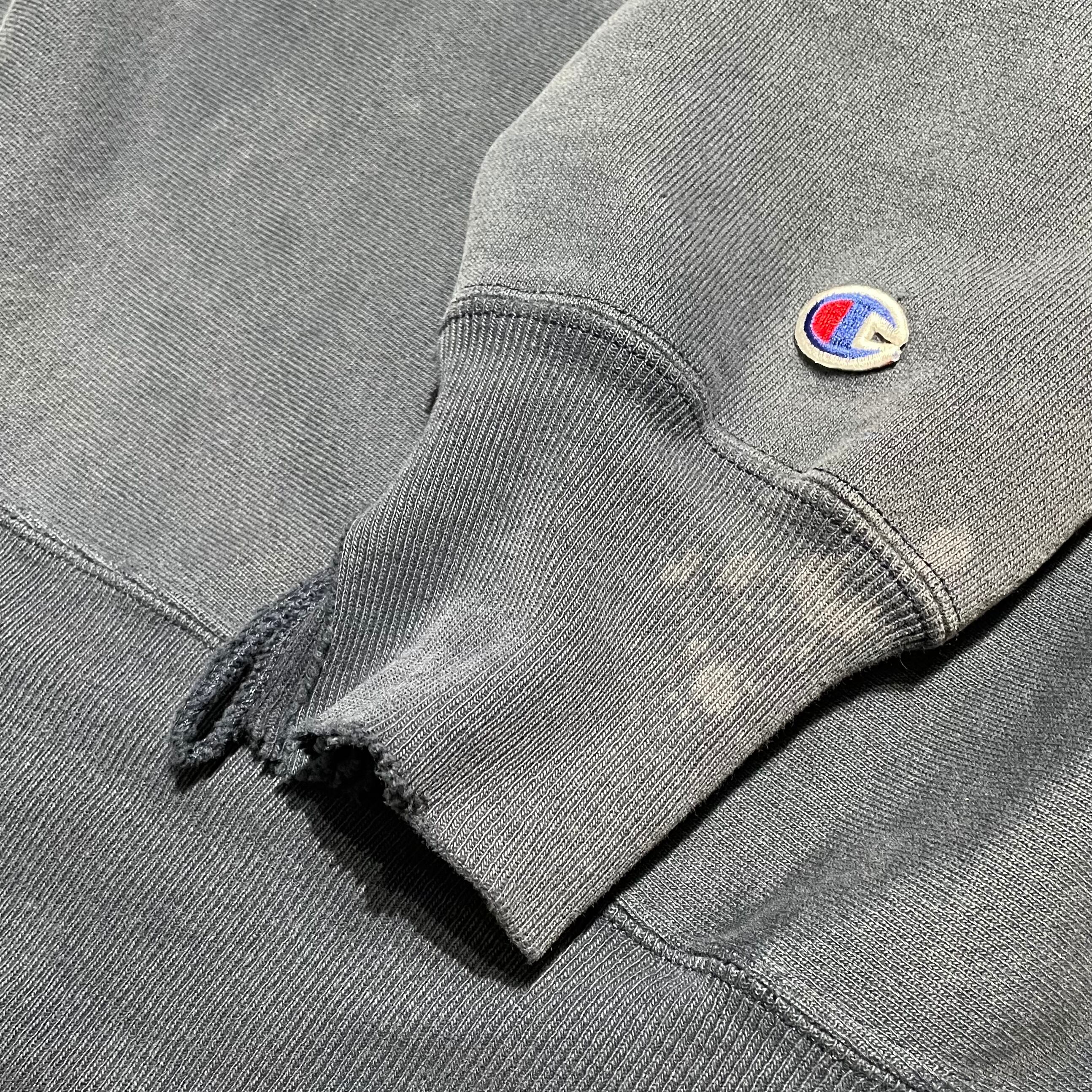 古着の王道アイテムであるチャンピオンリバースウィーブの90年代メキシコ製のスウェット。ヴィンテージといえどなかなか雰囲気が出るのが難しいですが、今回はネイビーが程よく色褪せ、ダメージがナチュラルな雰囲気抜群なアイテムです。くたっとした生地もよく中々出会えないヴィンテージの1着です。