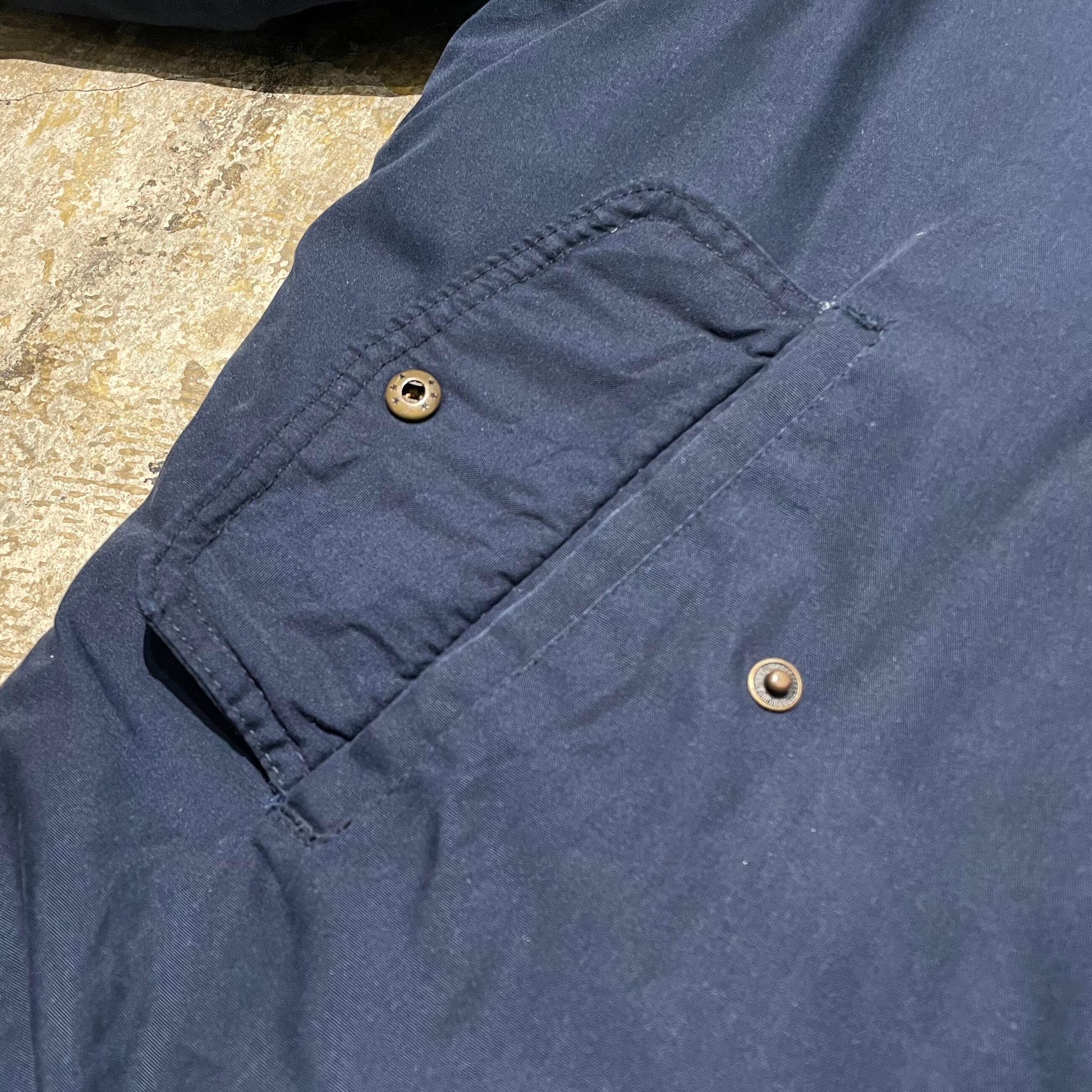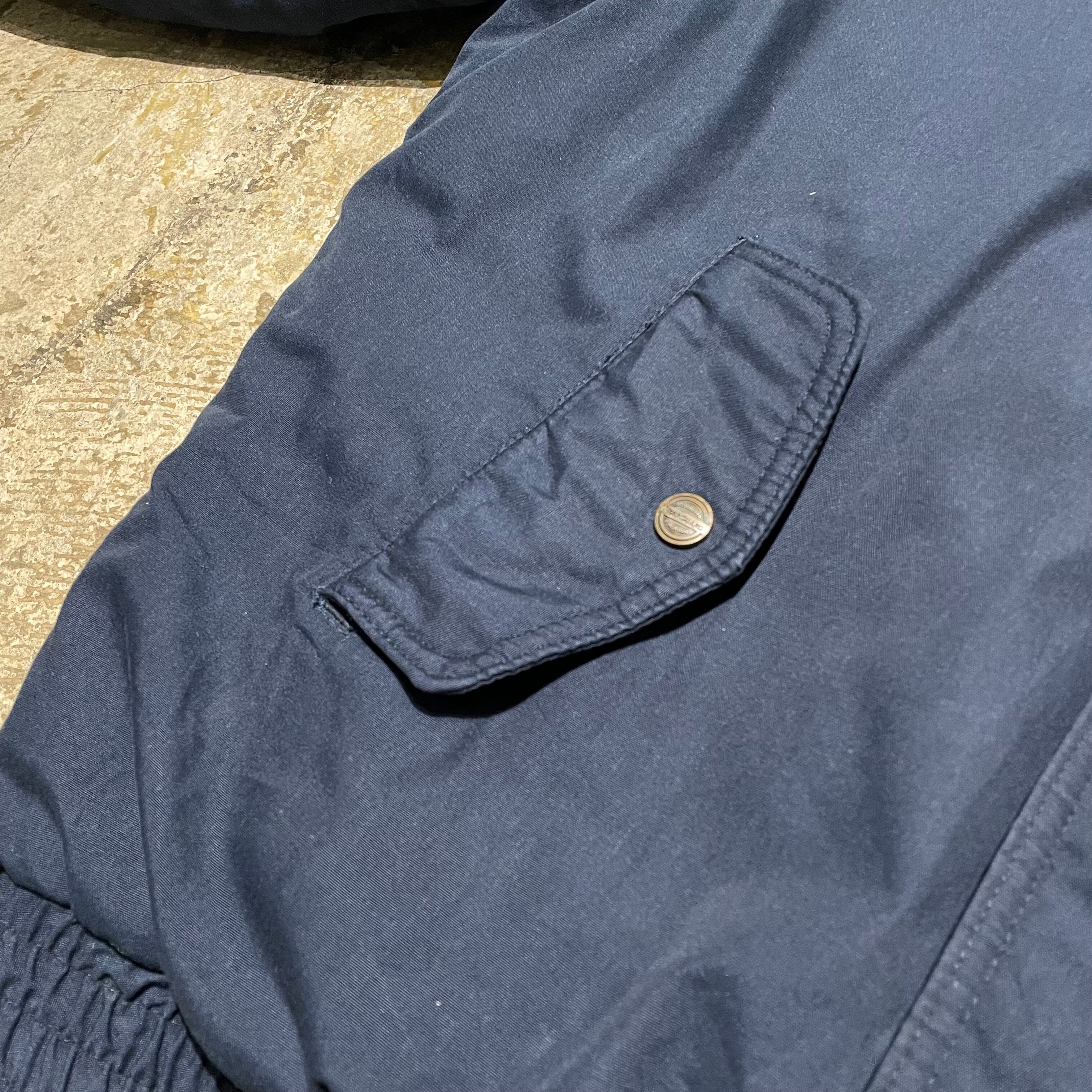 無名ブランドの中綿ブルゾンですが、仕様、パターン、付属がよくレギュラー古着の良さが詰まったアイテム。ショート丈で身幅の広い作りで現代のトレンドにフィットしたカッティング。ファスナー、ボタンにはブランドオリジナルの付属が使用されこだわりが詰まっています。着やすいネイビーカラーリングでコーディネートしやすいパデッドアウター。これからの季節におすすめなアイテムになっています。