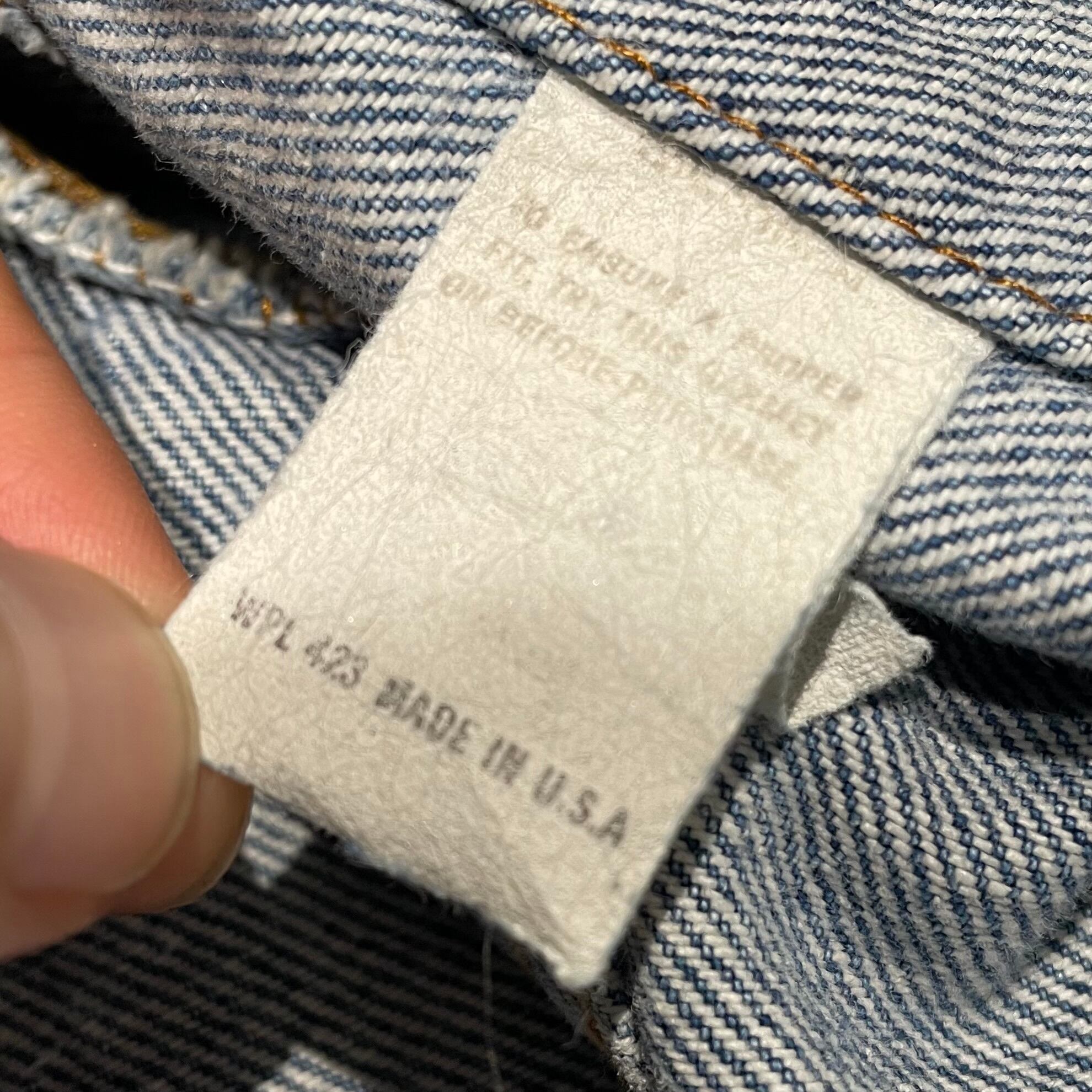 4thタイプデニムトラッカージャケットにハンドウォーマーがついたモデルlevis 70506。着丈、身幅、袖丈のバランスが良く、モディファイされ続けたリーバイストラッカージャケットの完成形。80年代USA製でサイズ42とゴールデンサイズになっています。程よく色褪せたインディゴカラーで着やすい色合い。インナーとしてもコーディネートできファッションの幅を広げてくれる1着。