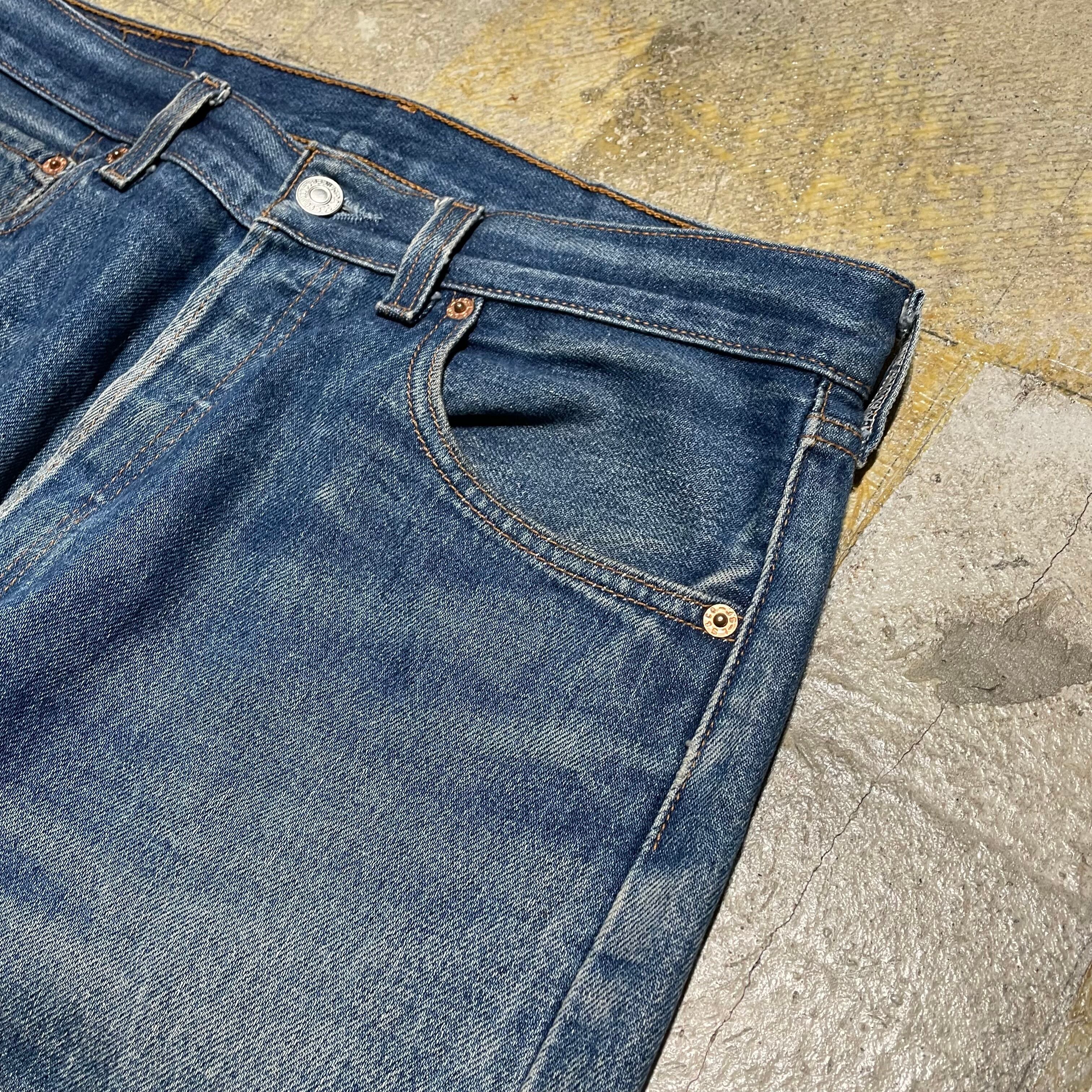 メキシコ製の90年代501xx。まだベースのカラーが残り綺麗にヒゲが入ったコントラストがしっかりと出ている1本日に焼けた雰囲気もよくヴィンテージならでは色落ちを楽しめるデニムになっています。ウエストサイズは34インチのゴールデンサイズ。90sデニム探されている方におすすめのアイテムです。