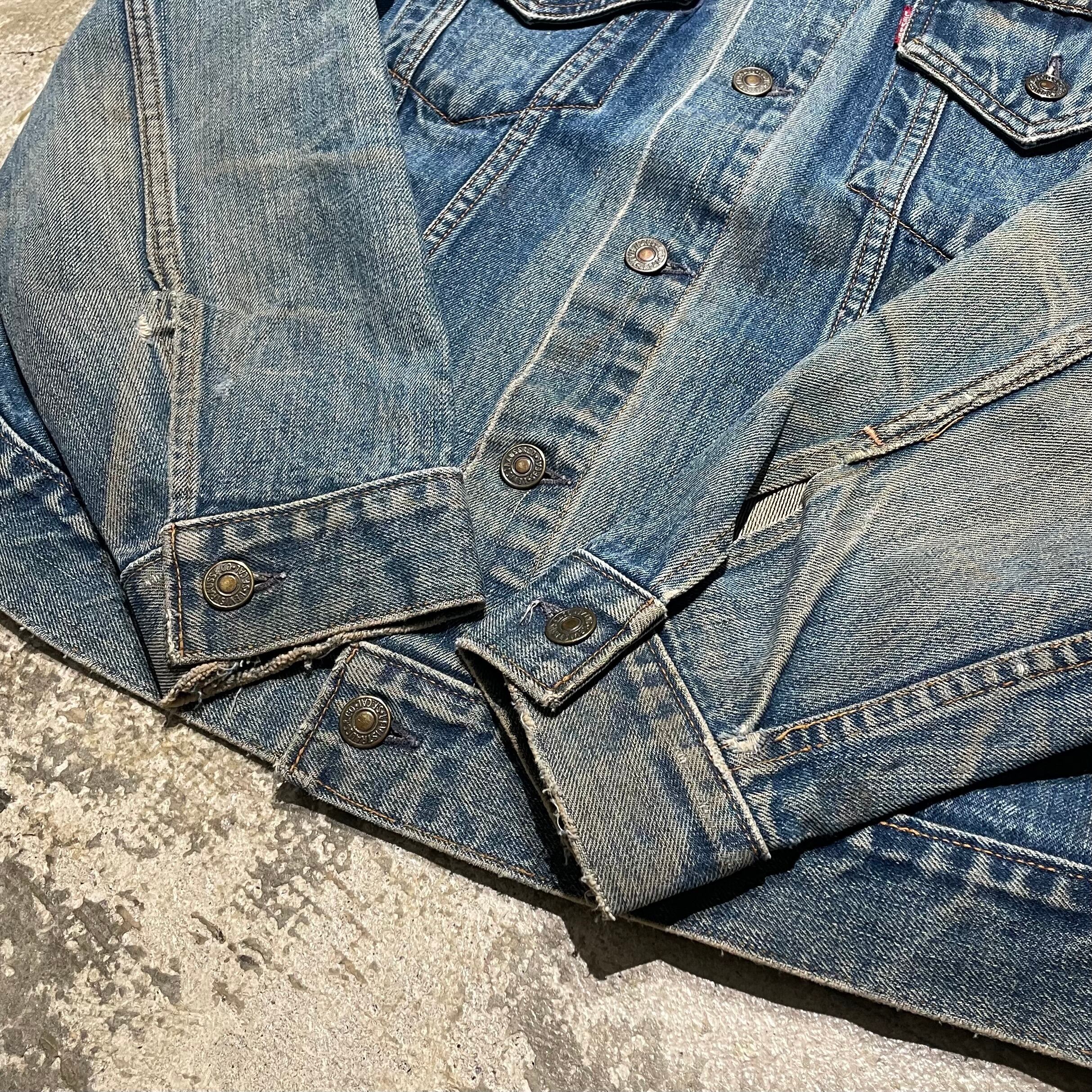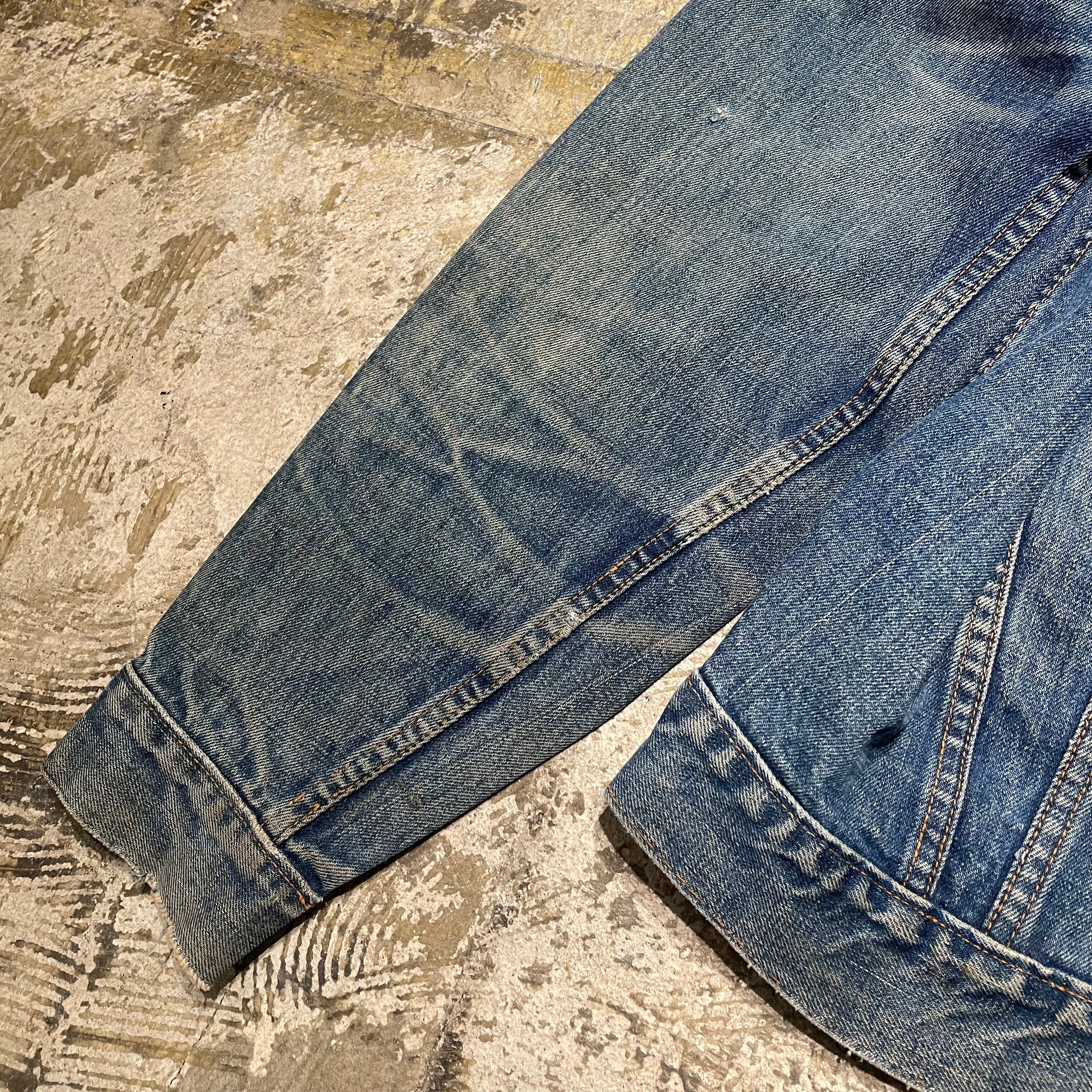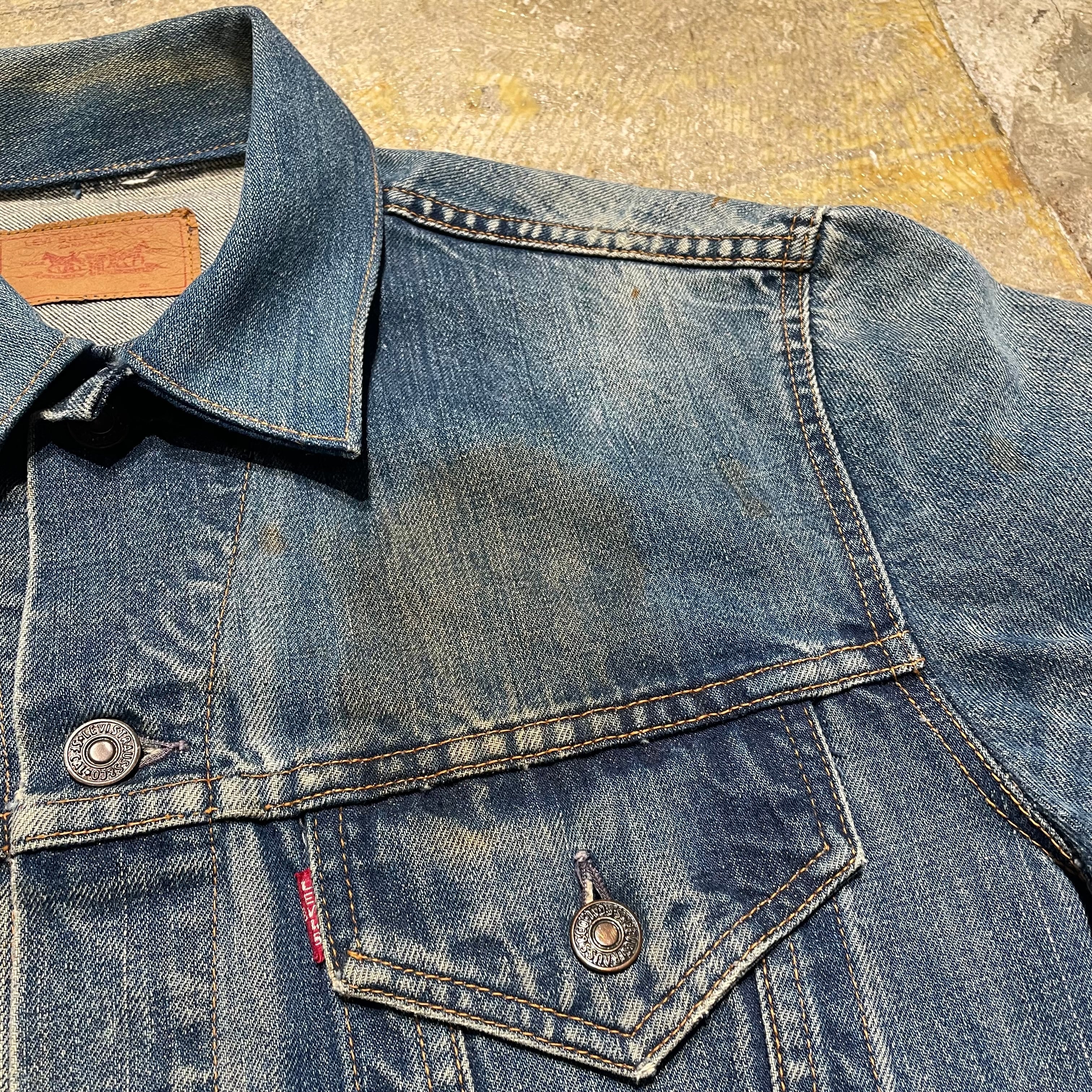 60-70年代に製造された赤タブのEが大文字の通称Big Eモデルの4th型トラッカージャケット70505。今回はマカオで製造された極東モデルの1着。ほどいいダメージと汚れ、綺麗に落ちたヴィンテージ独特の縦落がヴィンテージならではのアイテム。アウターにもインナーにもなるリーバイスの完成モデル70505。大変おすすめの1着です。