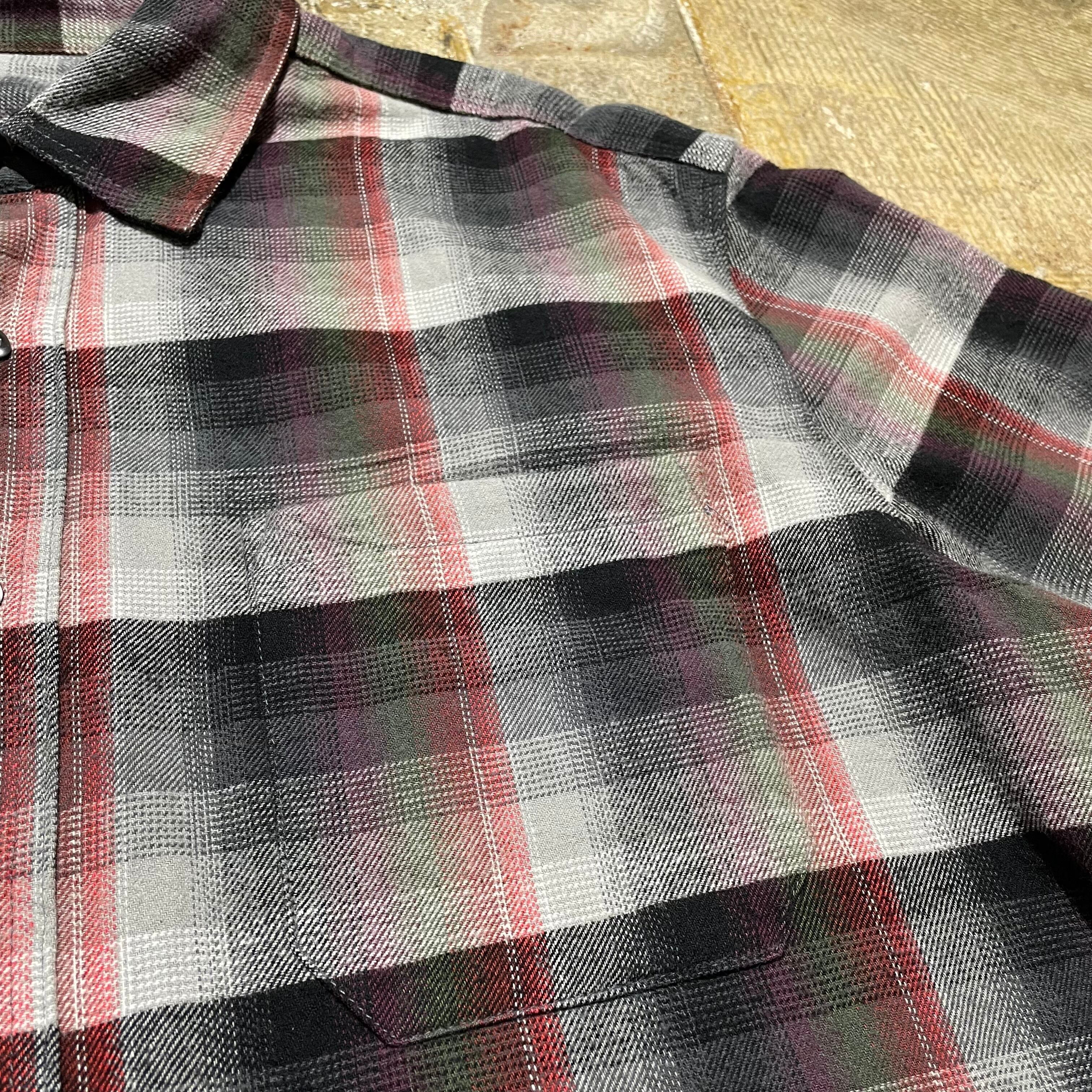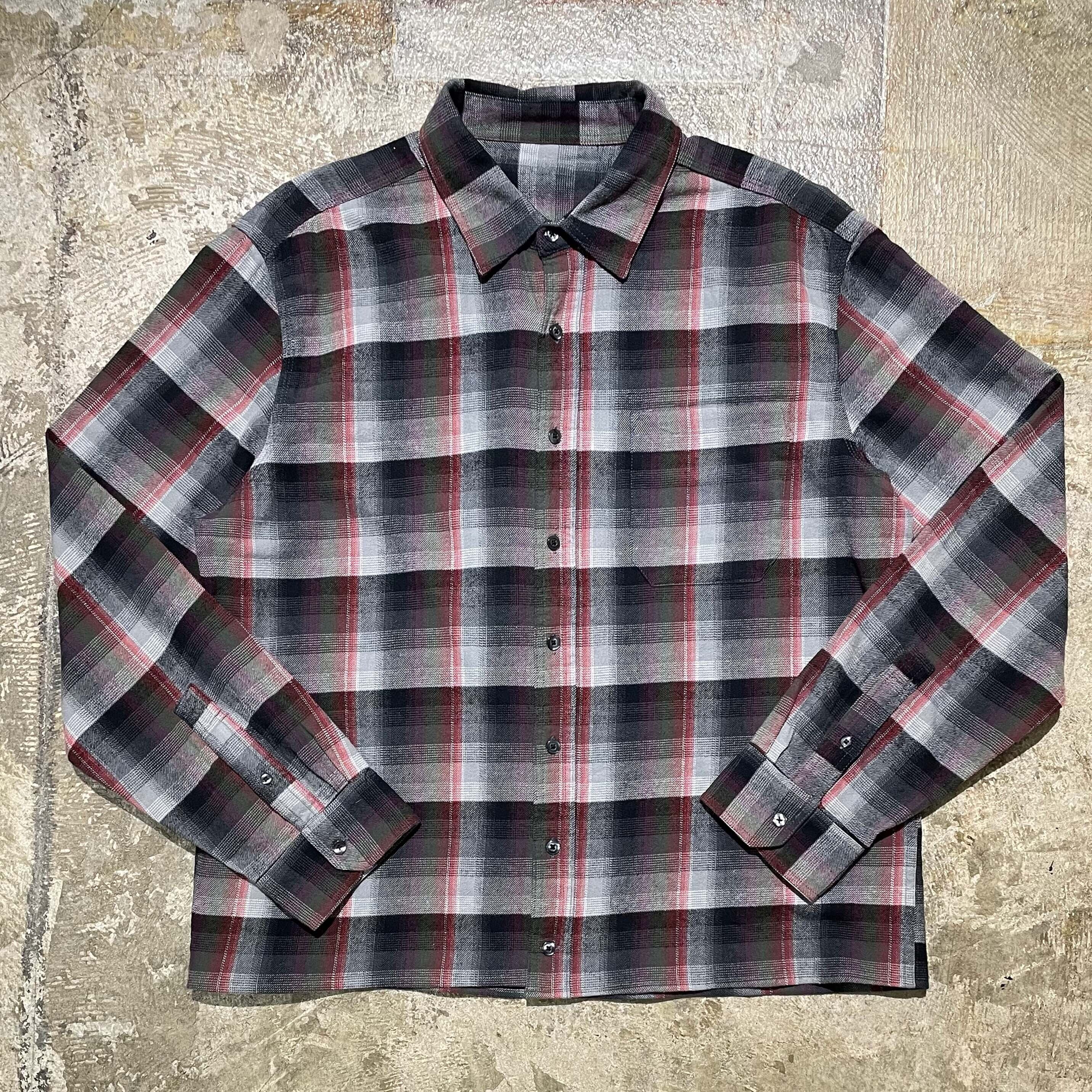 グレーベースに多色が差し込まれたコットンオンブレチェックシャツ。